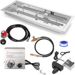 - 36'' x 12'' Stainless Steel Drop-in Gas Fire Pit H-Shaped Burner Pan, Hose, Spark and Ignition Insert Kit