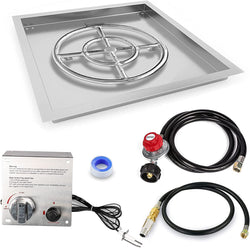 - 18" x 18" Stainless Steel Round Drop-in Fire Pit Burner Pan, 12" Burner Ring and Spark Ignition Hose Kit for LP NG Gas Fire Pit and Fireplace
