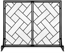 - 44 x 33 in 2-Panel Handcrafted Wrought Iron Decorative Mesh Geometric Fireplace Screen, Fire Spark Guard w/Magnetic Doors, Black