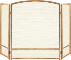 - 3-Panel Antique Gold Simple Steel Mesh Fireplace Screen Fire Spark Guard Grate for Wood Burning Fireplace Living Room Home Decor
