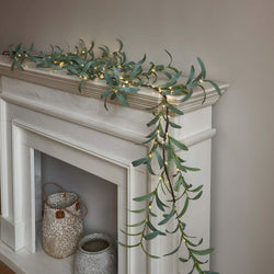- 6FT Lighted Olive Garland Battery Operated Artificial Greenery Twig Vine Lights for Christmas Spring Fireplace Mantel Decoration Indoor Outdoor