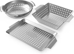- 3 Pack Grill Basket, Grill Wok, Grill Pans, Grill Topper Set, BBQ Grills Smoker Accessories