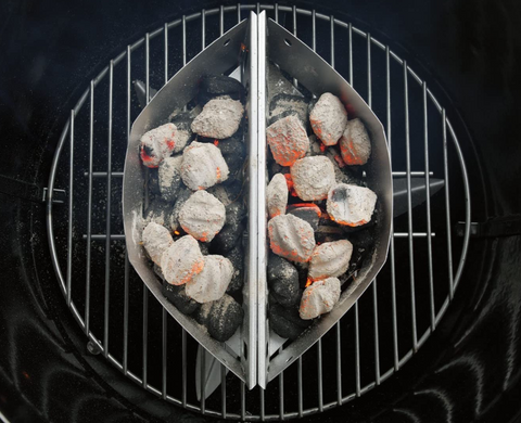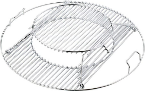 Upgrading your grill grates can make a significant difference in the quality of your grilled food. Top grate with hinges so you can lift up and add wood or rearrange charcoal without removing the grates off the grill.