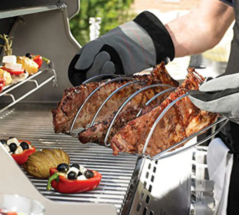 100% 304 stainless steel for food safety and hygiene. It held the ribs upright without a lot of bending, keeps racks of ribs separated from each other perfectly so smoke could penetrate all sides evenly, cooked evenly, everyone was obsessed with how it turned out