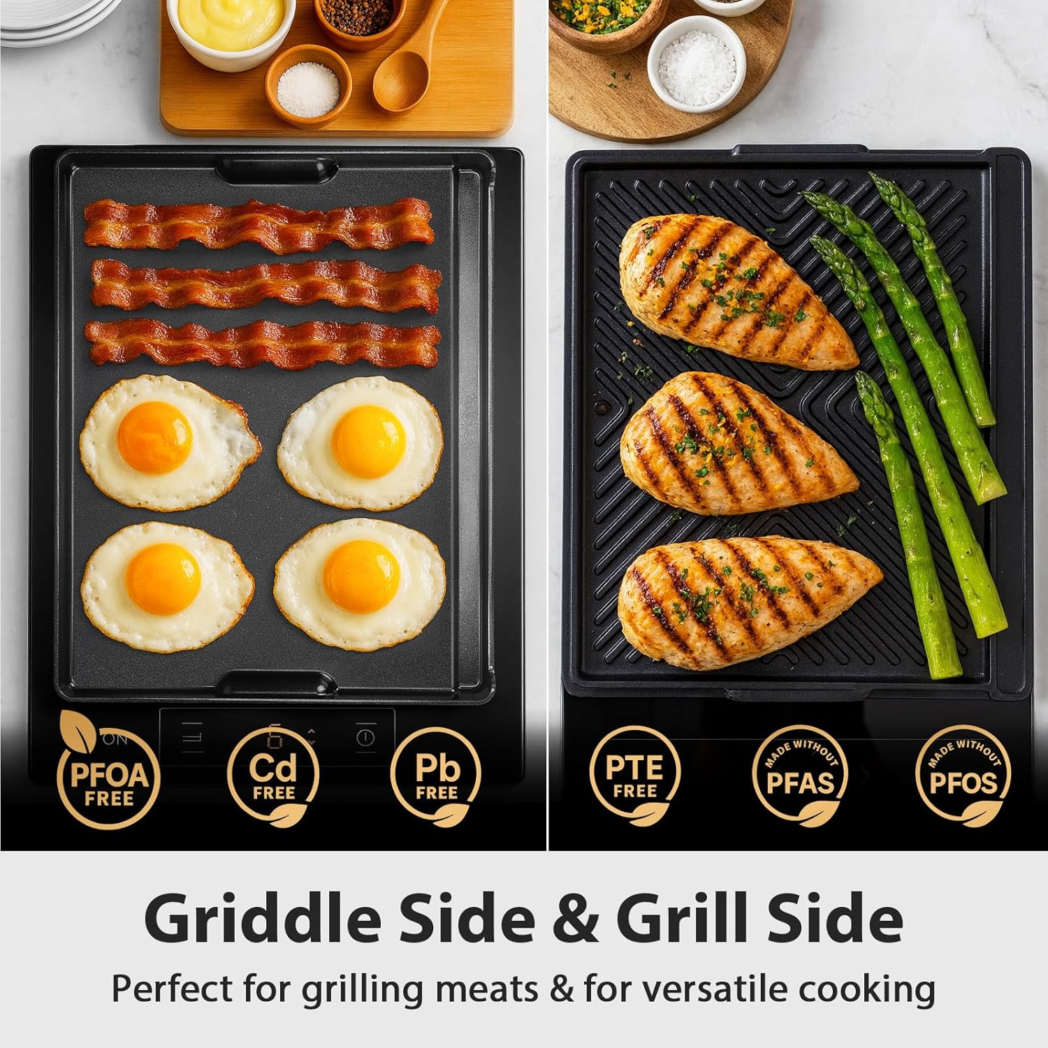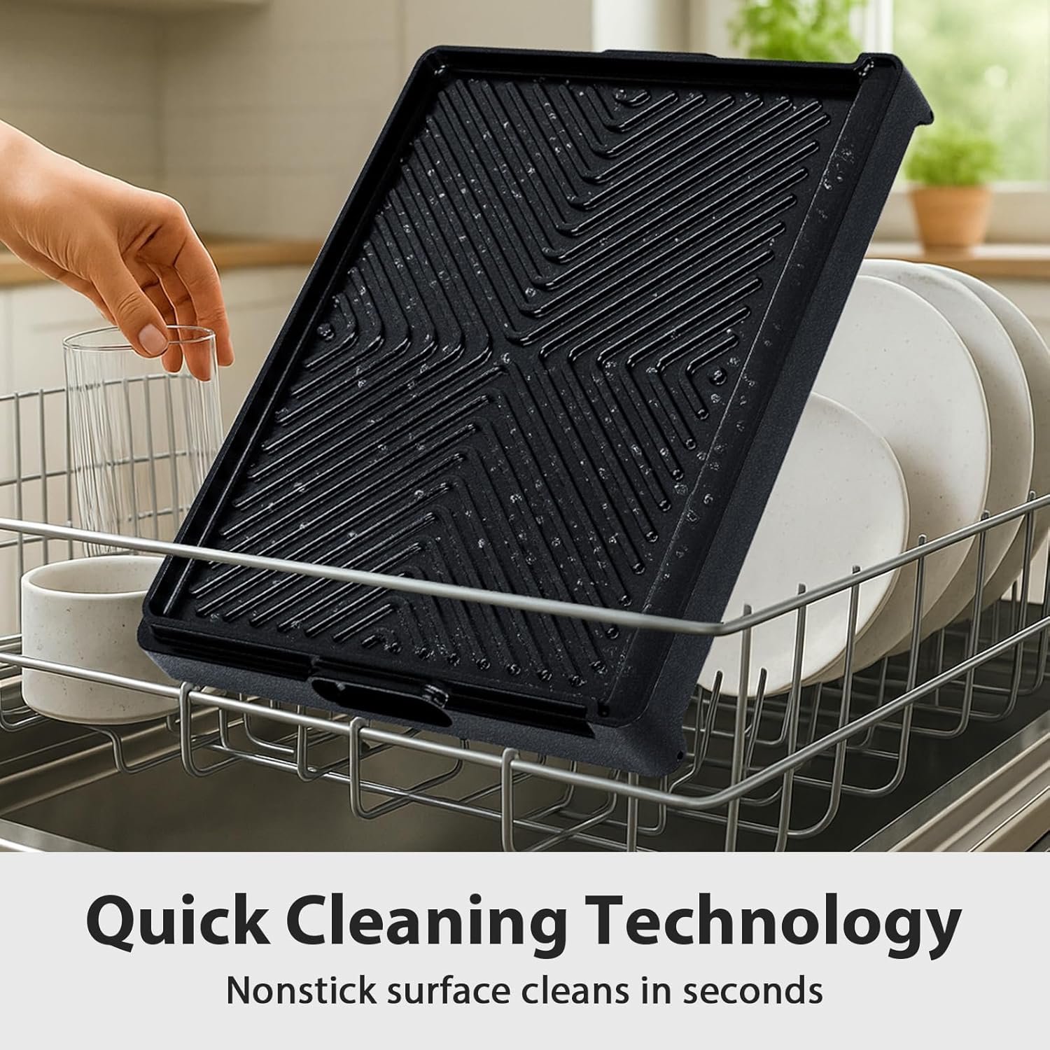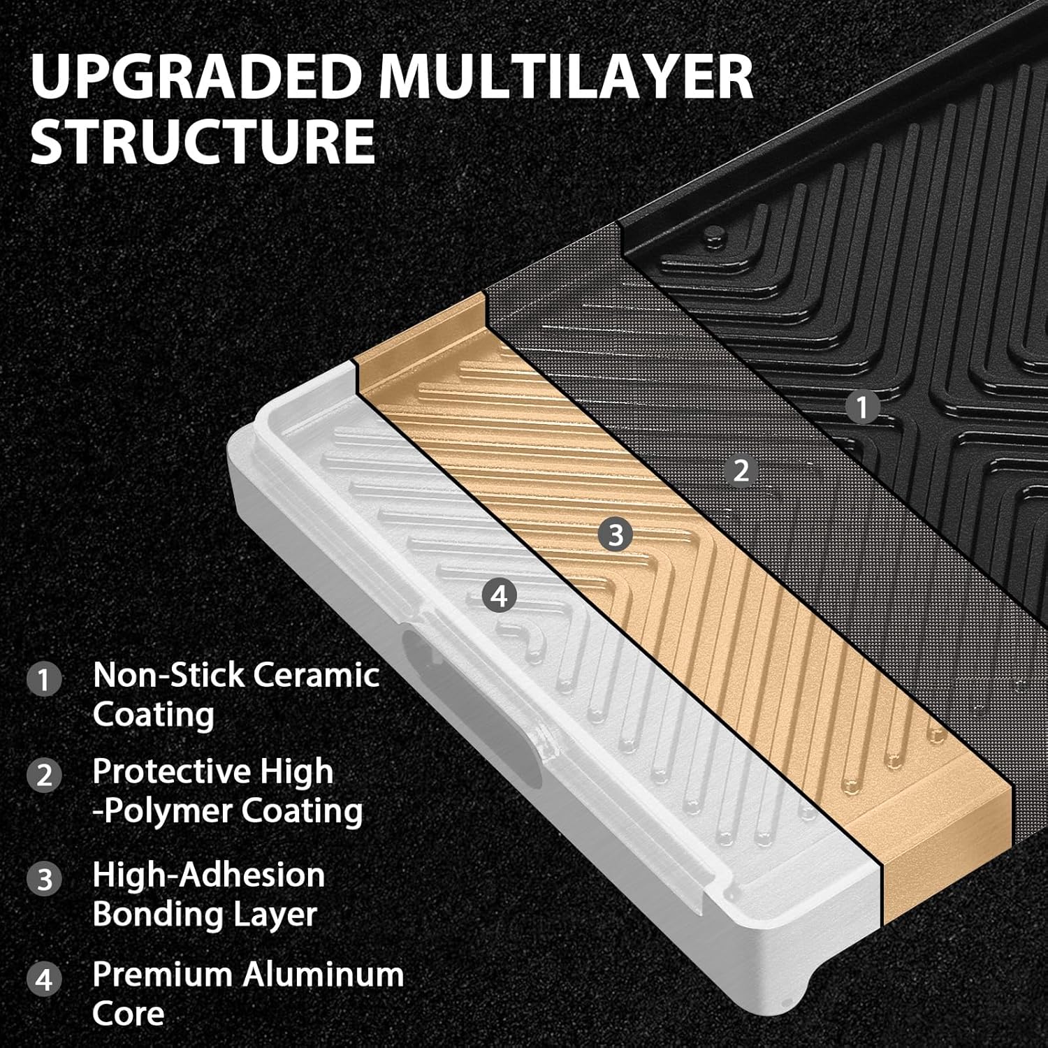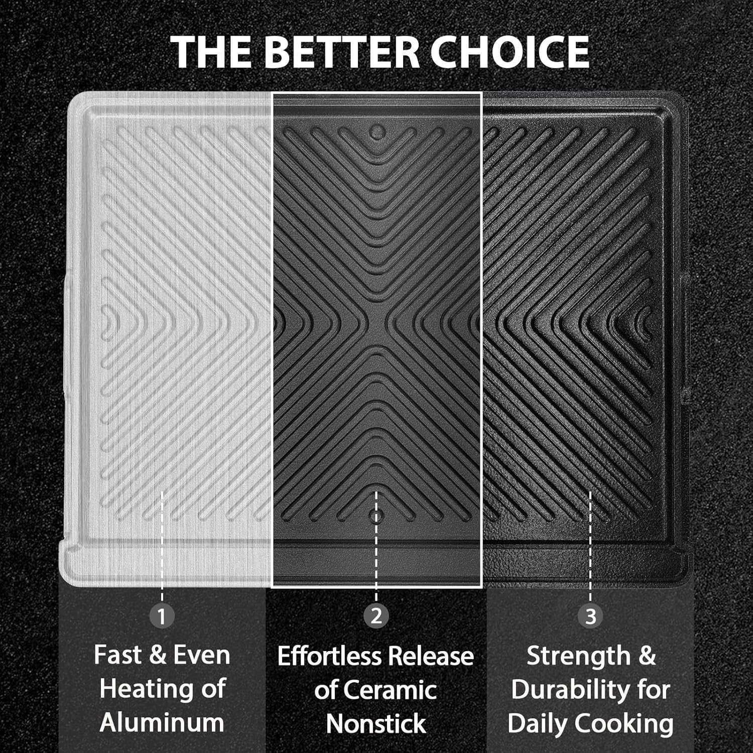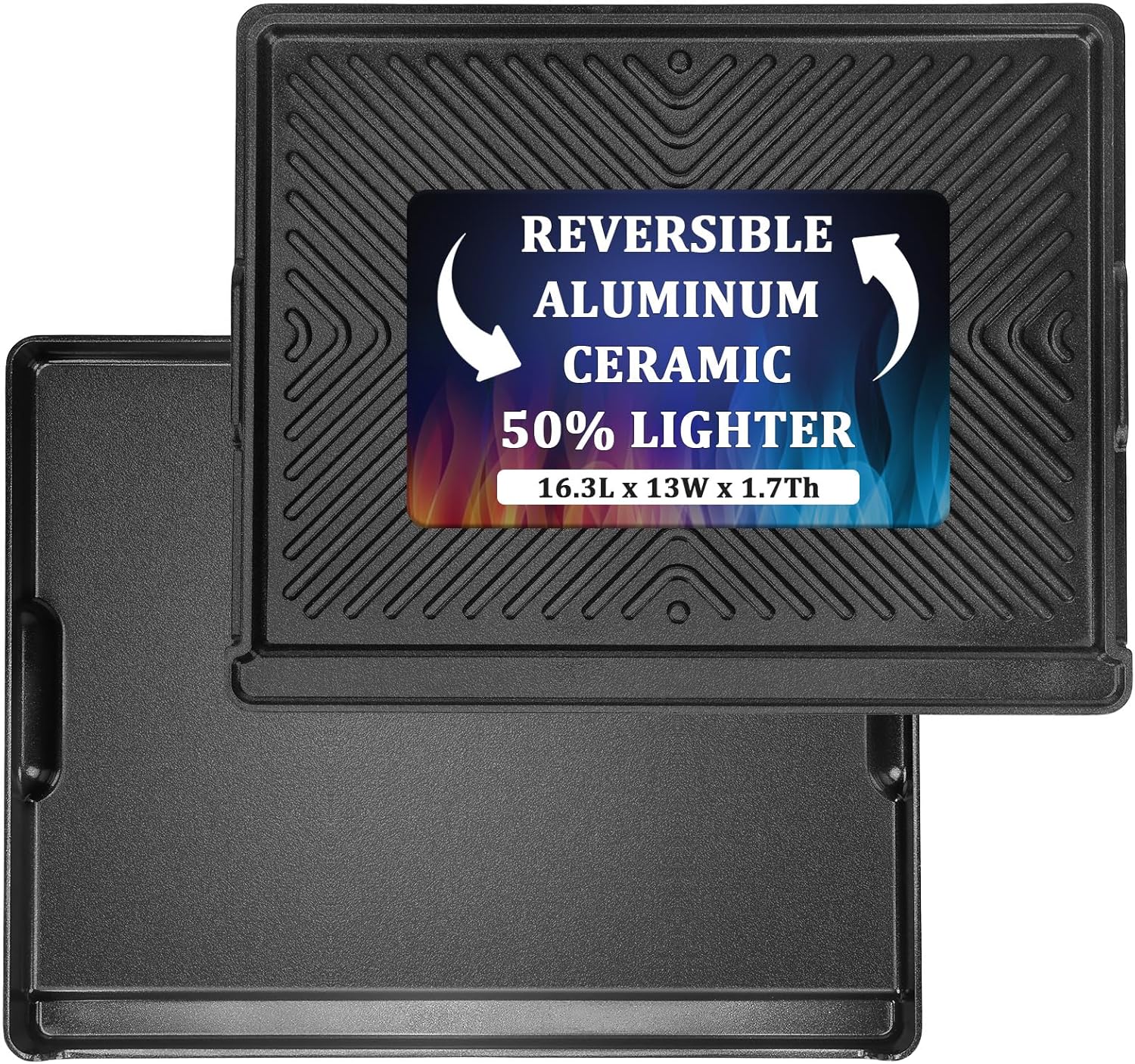 16.3" x 13" Reversible Aluminum Ceramic Griddle Pan, 2-in-1 Flat & Ribbed Nonstick Grill Plate, Induction Compatible, for Gas, Electric & Oven