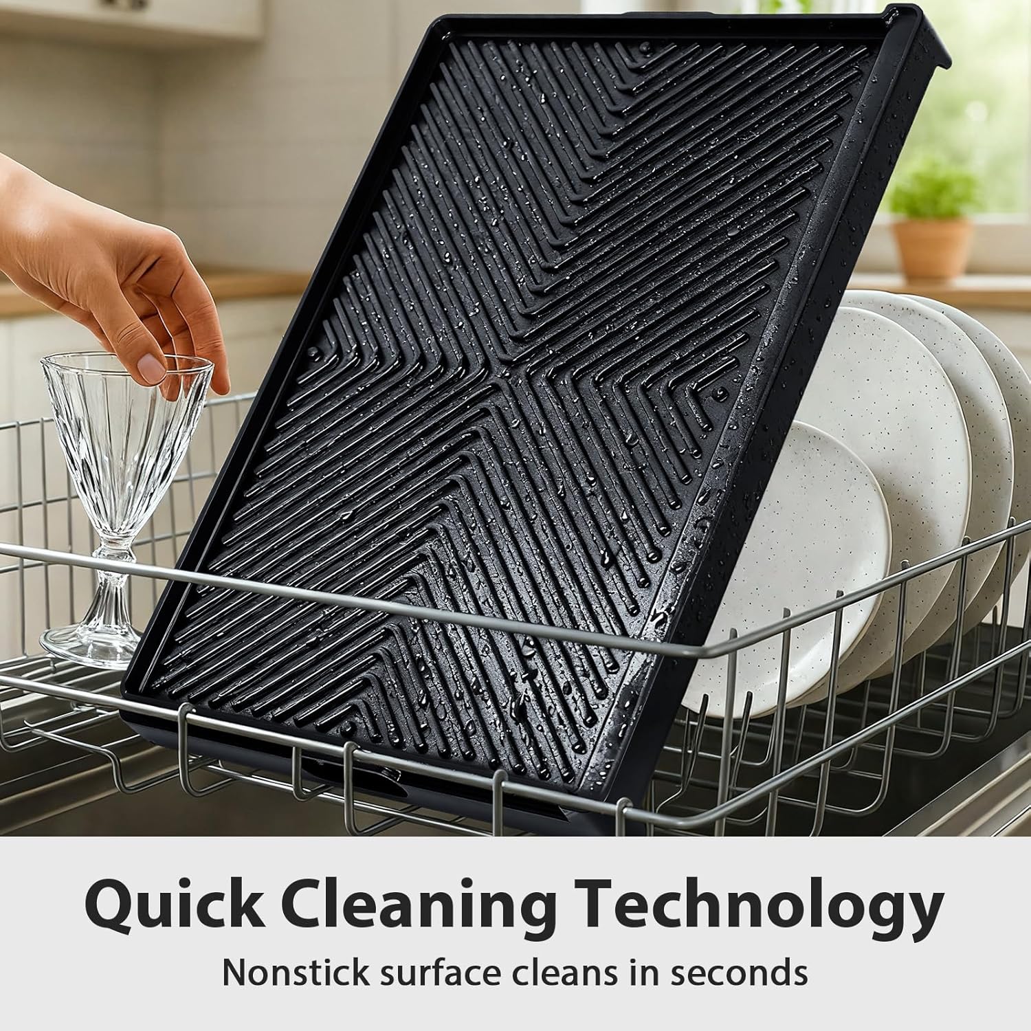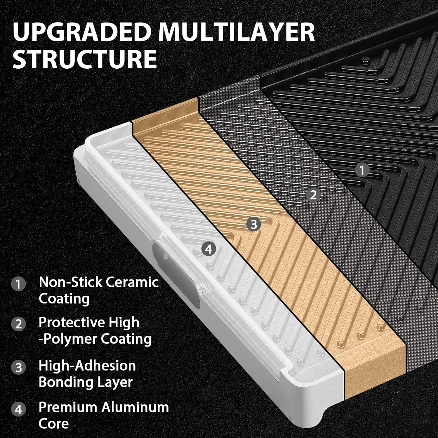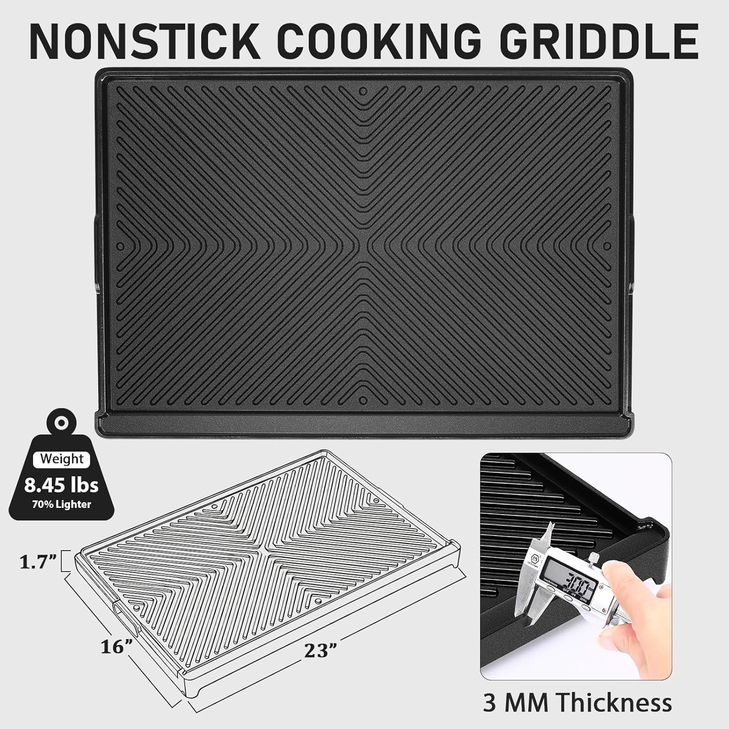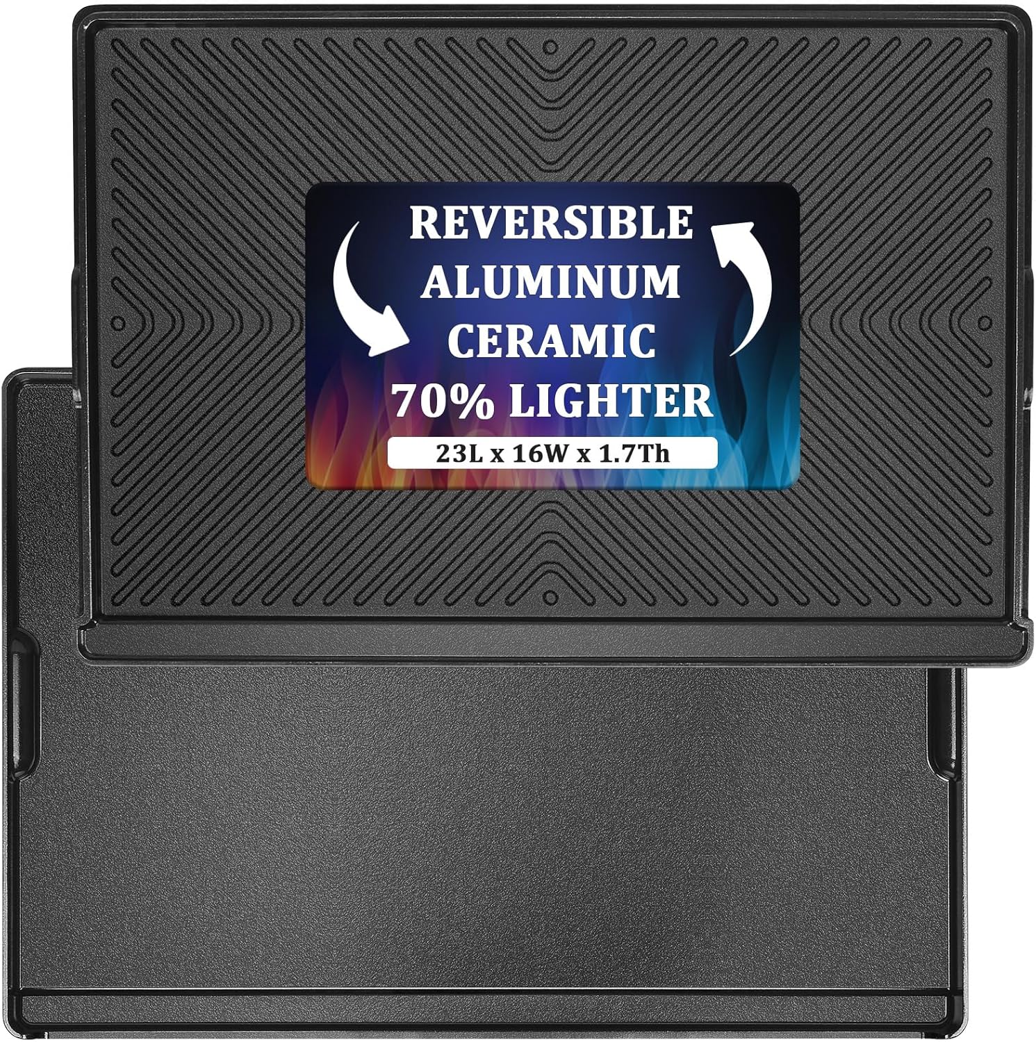23" x 16" Reversible Aluminum Ceramic Griddle Pan, 2-in-1 Flat & Ribbed Nonstick Grill Plate, Induction Compatible, for Gas, Electric & Oven