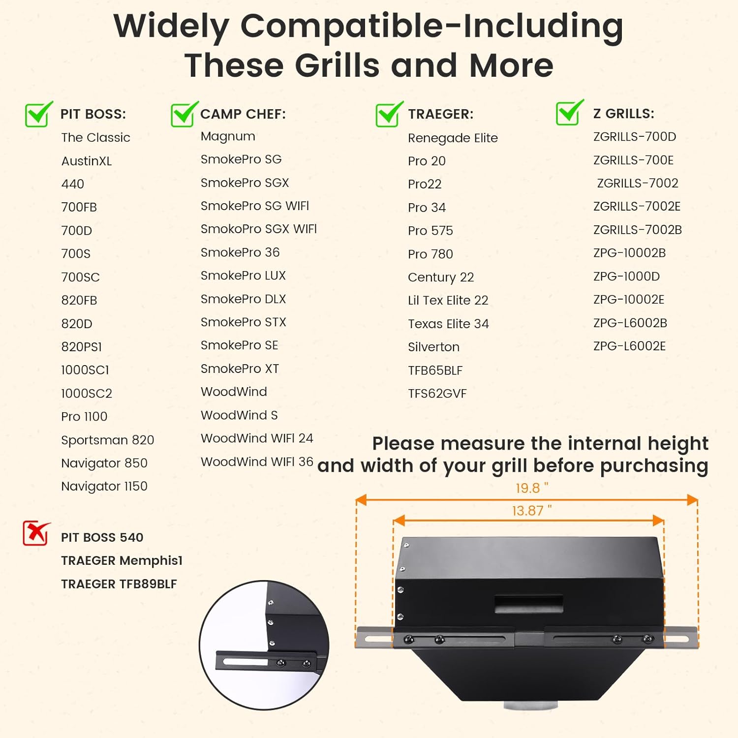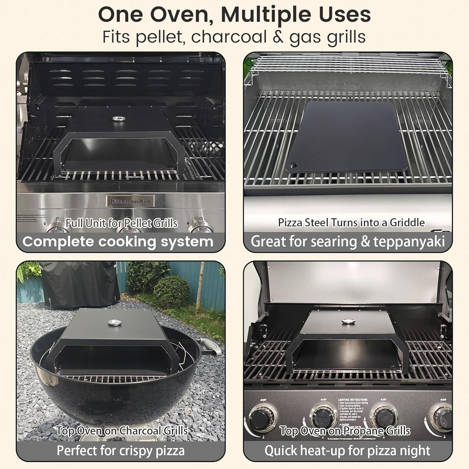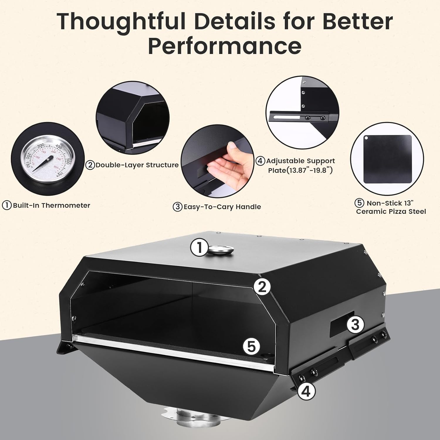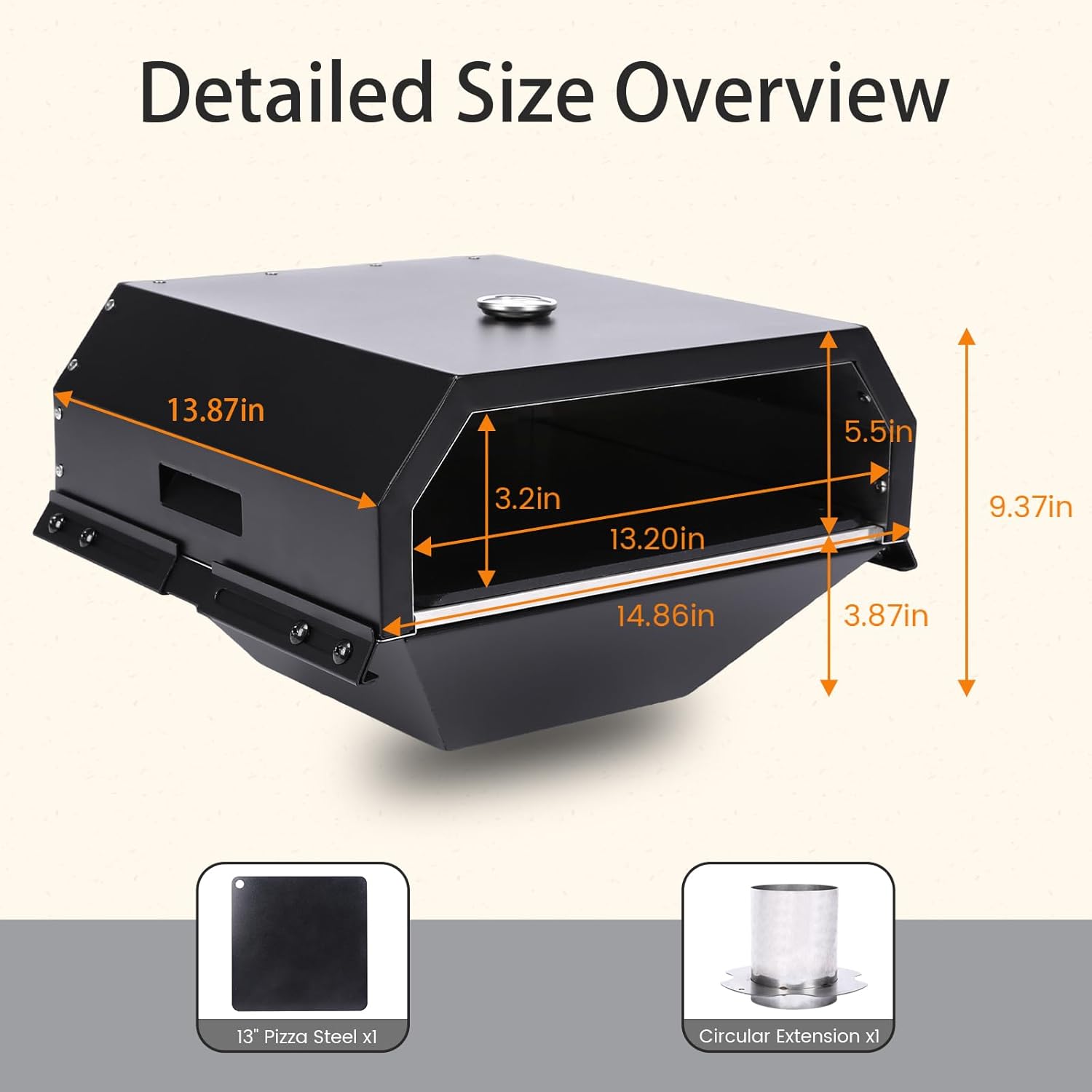 Pizza Oven Attachment for Grill, Outdoor Pizza Oven Accessories for Traeger, Pit Boss, Camp Chef, Z Grills, GMG Pellet Grill, Detachable & Adjustable
