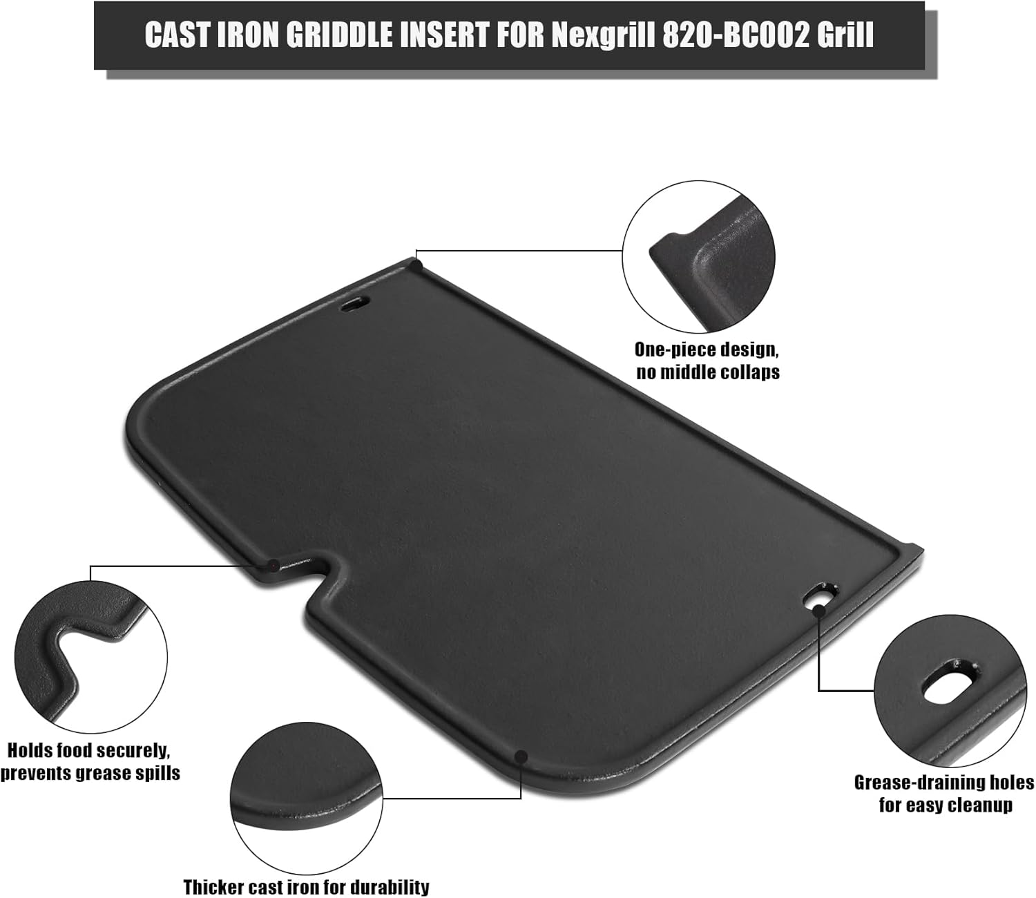 Cooking Griddle for Nexgrill 1-Burner 820-BC002 Portable Propane Gas Grill, Cast Iron Griddle Plate Perfect for Camping, Tailgating Outdoor Cooking