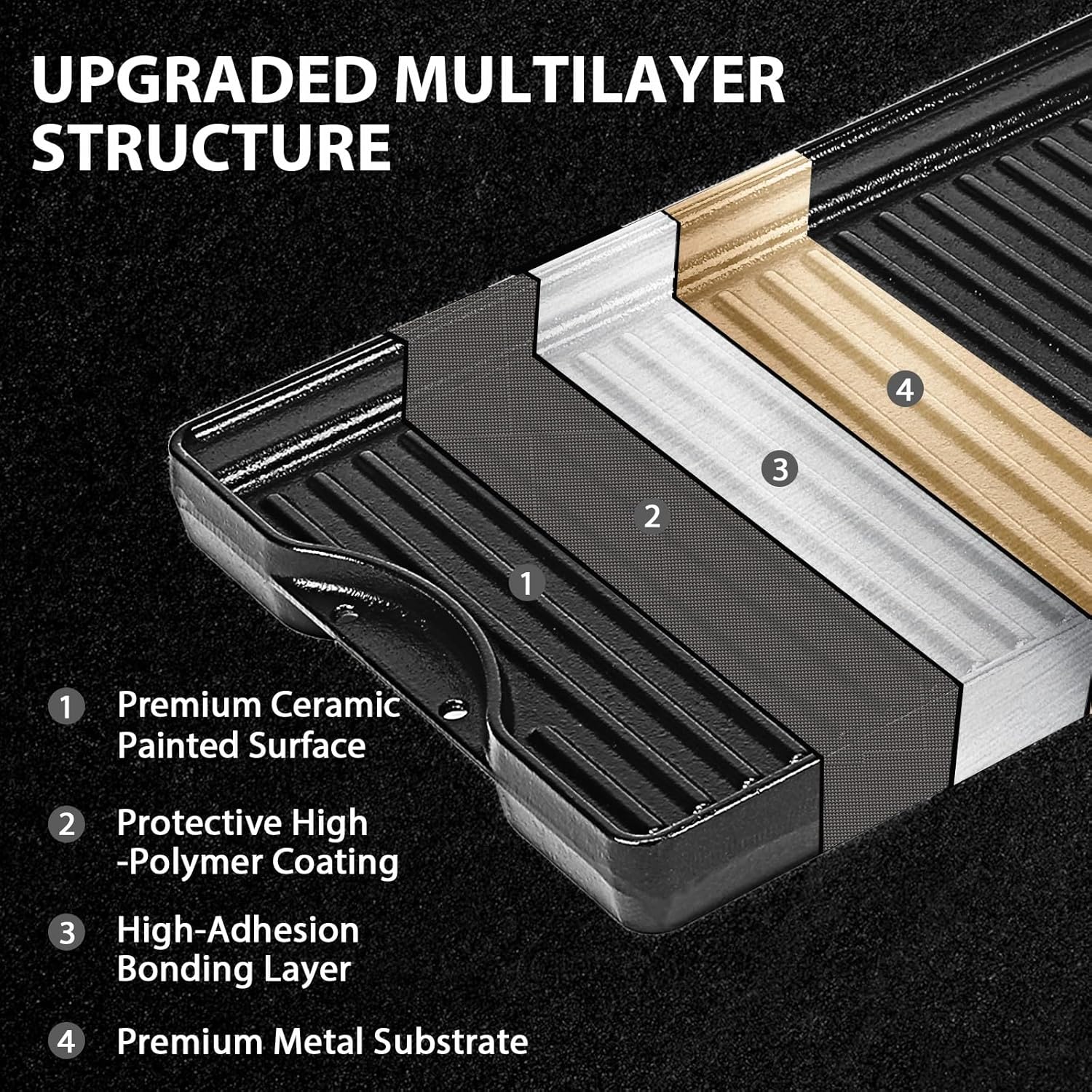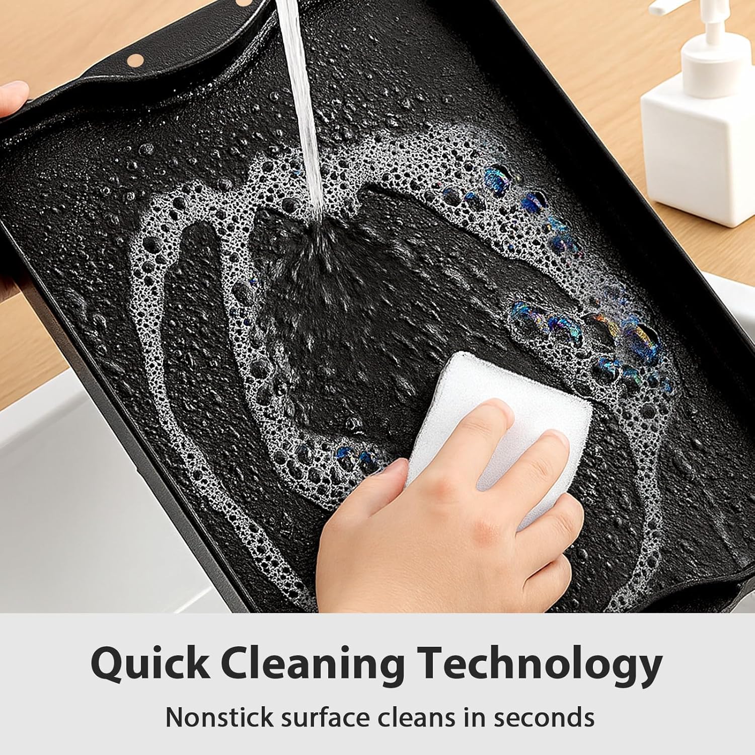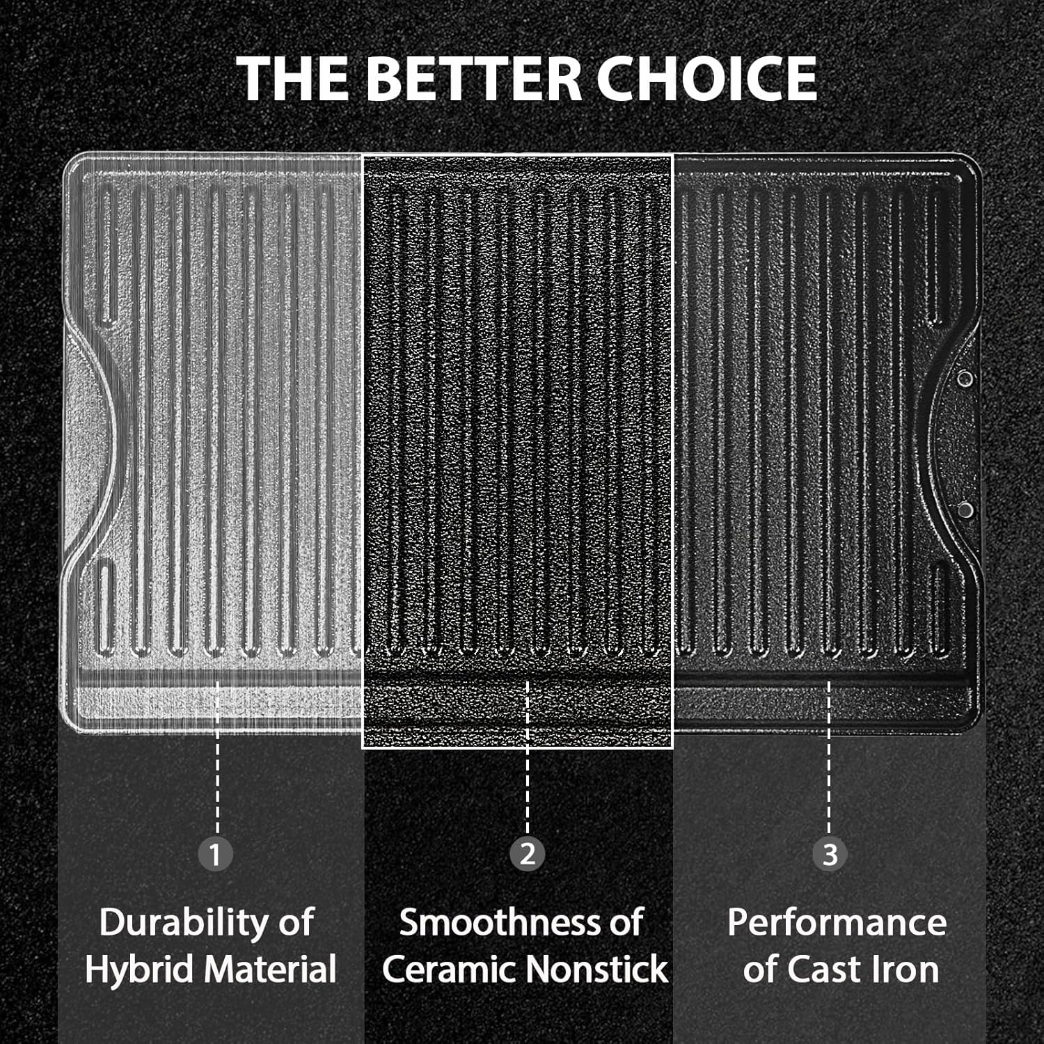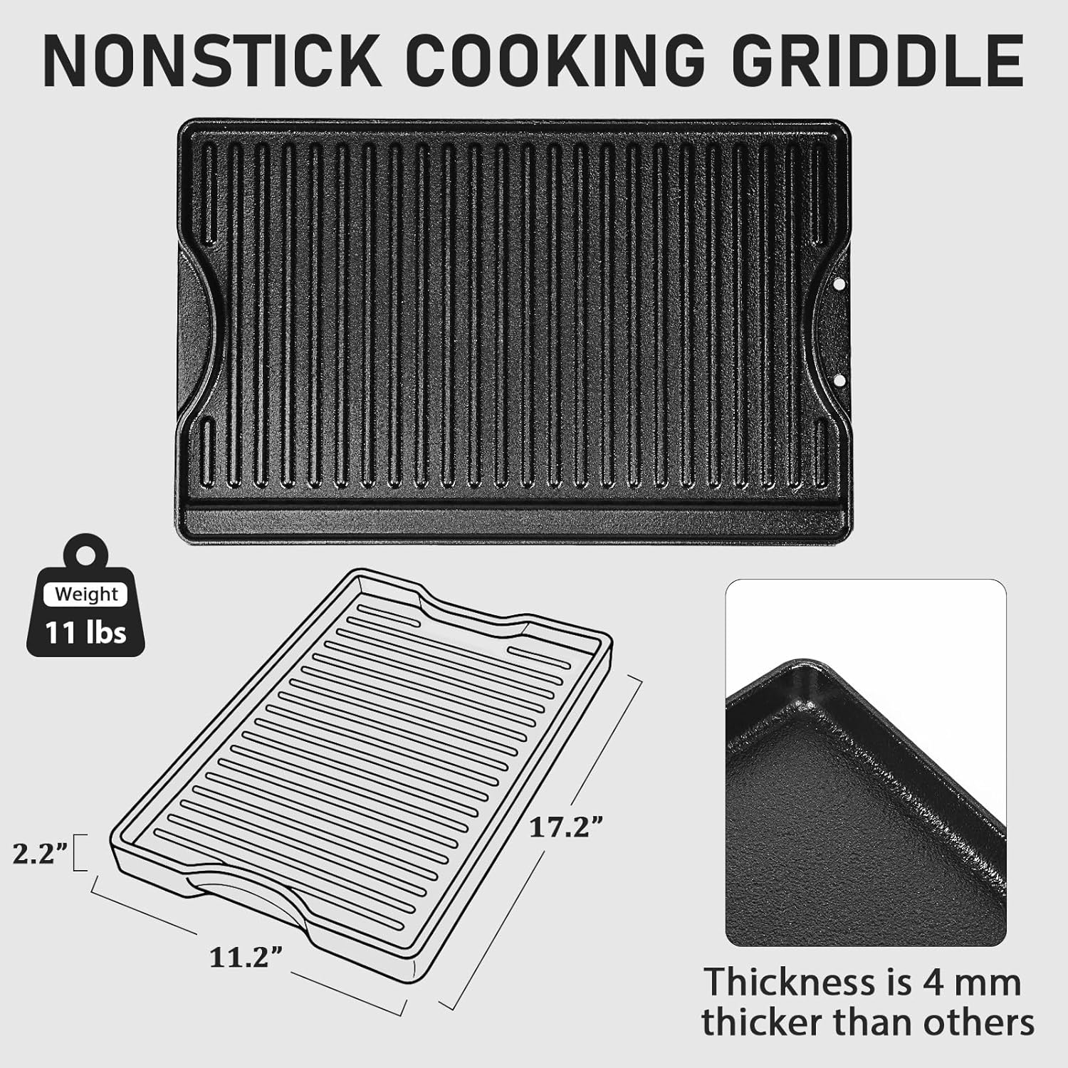 Nonstick Reversible Cast Iron Griddle 17.2" x 11.2" Ceramic Cooking Surface with High Sides & Grease Trap, for Gas Grill, Electric, Oven & Outdoor BBQ