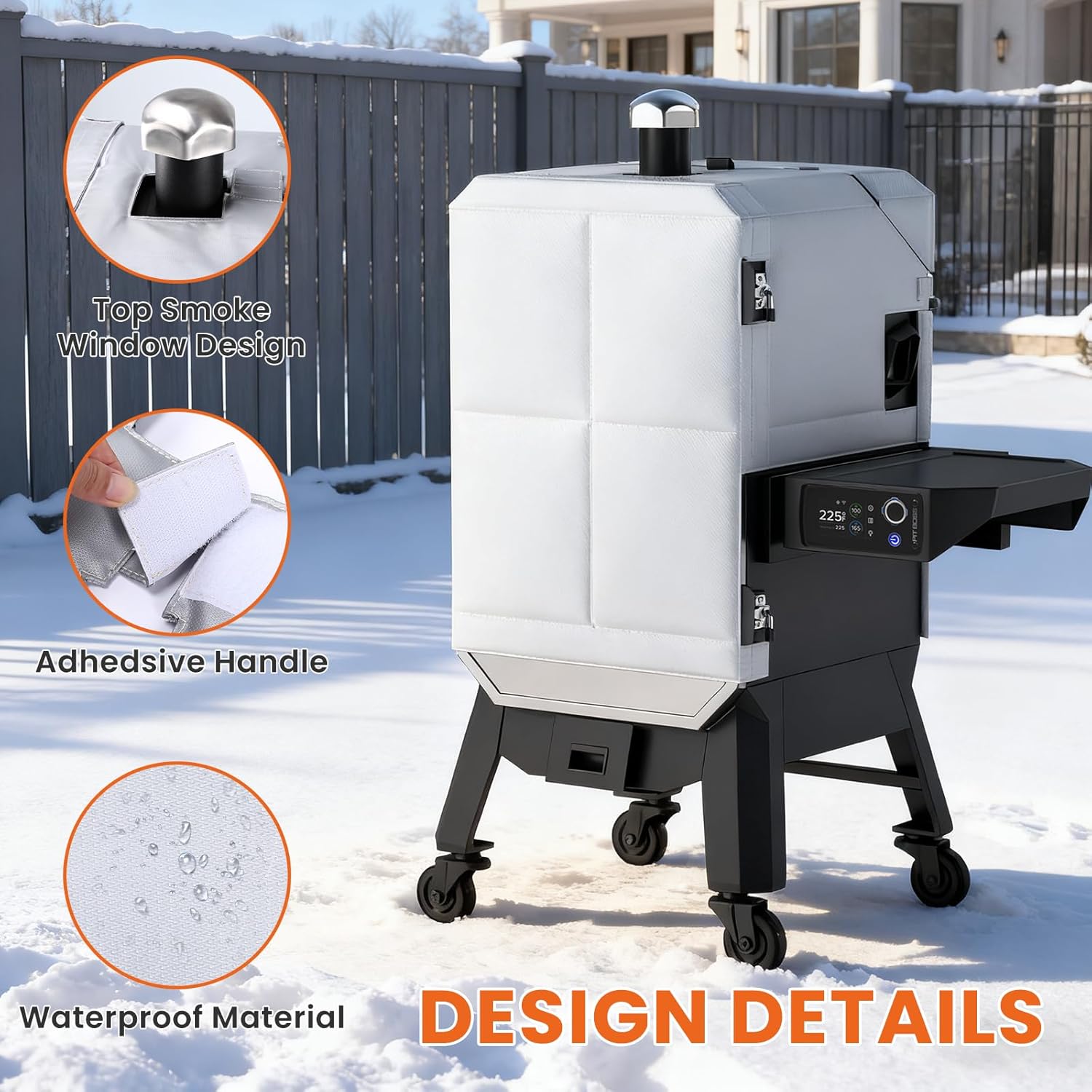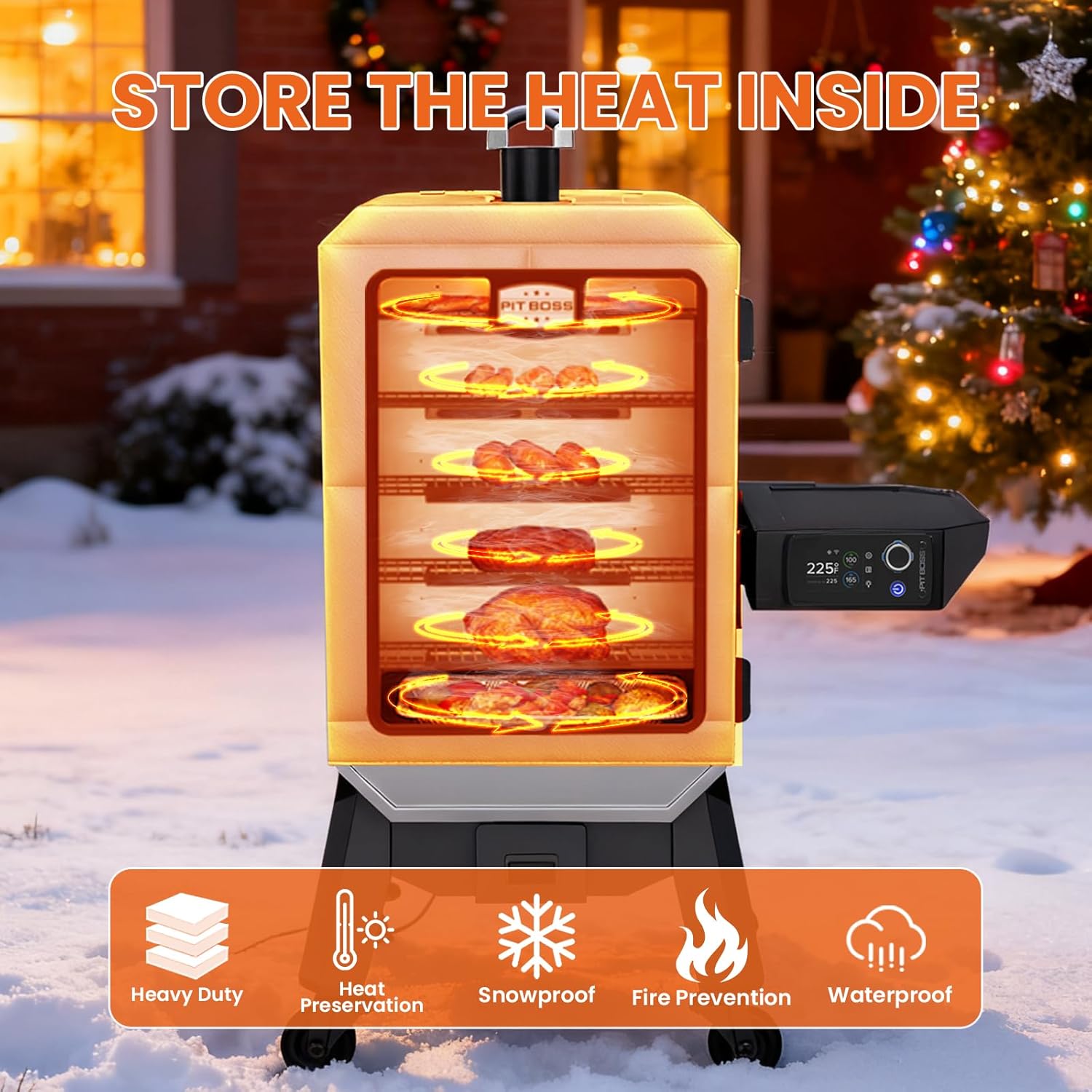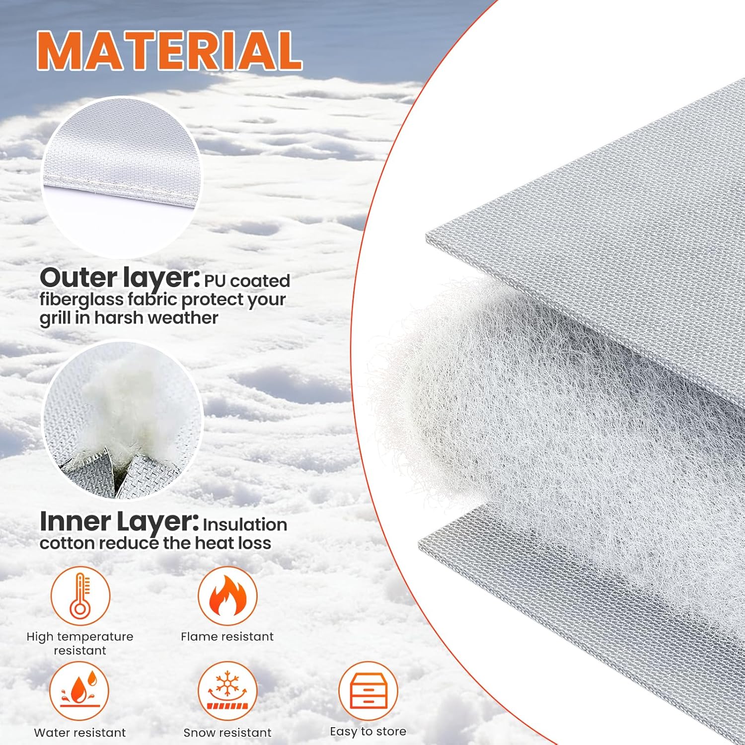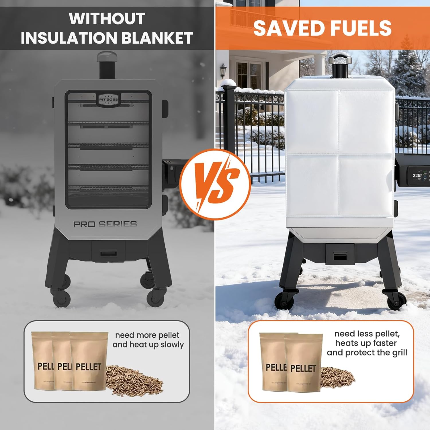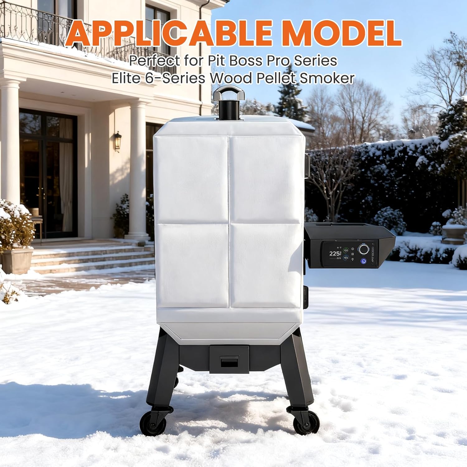 Grill Insulation Blanket for Pit Boss 11007 6-Series Elite Vertical Wood Pellet Smoker PBV6PSE, Magnet Design Silver PU Coated Fiberglass Heat Blanket