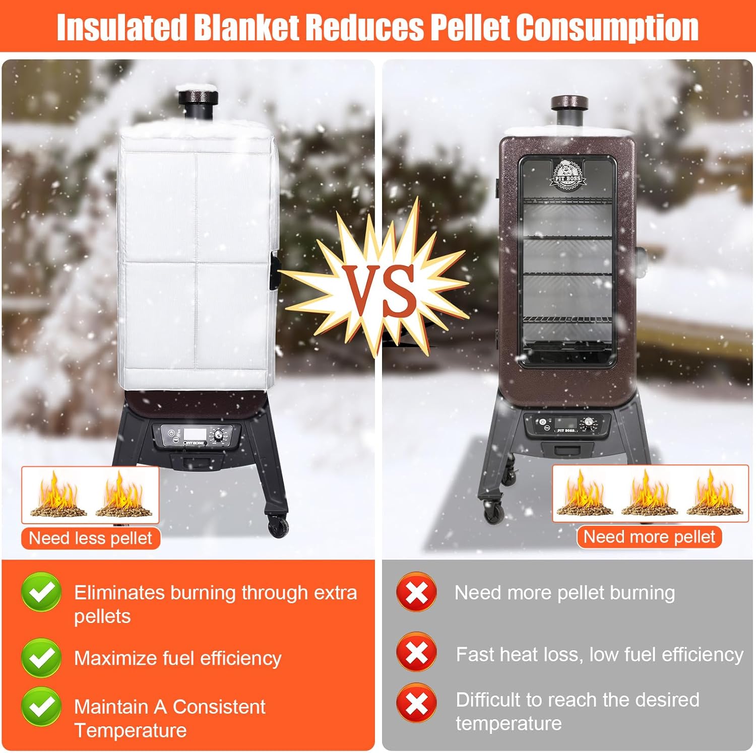Grill Insulation Blanket for Pit Boss 77350 PBV3P1 Copperhead 3-Series Wood Pellet Vertical Smoker, Winter BBQ Heat Retention Cover