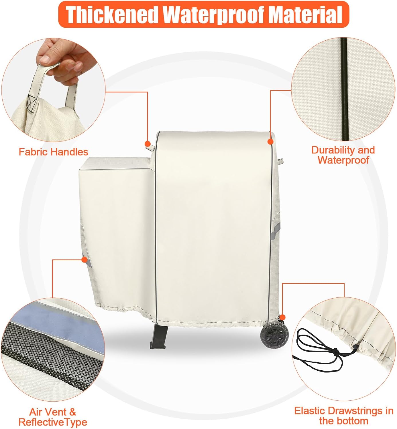 đ„ăElastic Drawstringsă- Elastic drawstrings in the bottom help to fasten the grill cover to stop the cover up and down from wind, which can be adjusted for a proper fit to your grill. đ„ăEasy To Cleană- Wipes with a damp cloth or hose with water and the dirt will disappear soon, and then let it dry in the sun for next use