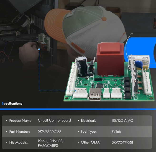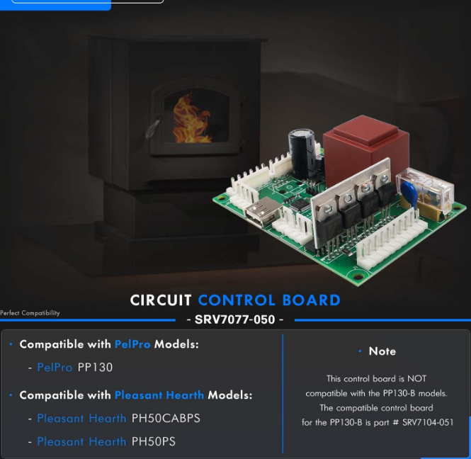 Circuit Control Board Replacement for PelPro PP130, Pleasant Hearth PH50PS and PH50CABPS Pellet Stove Replace SRV7077-050