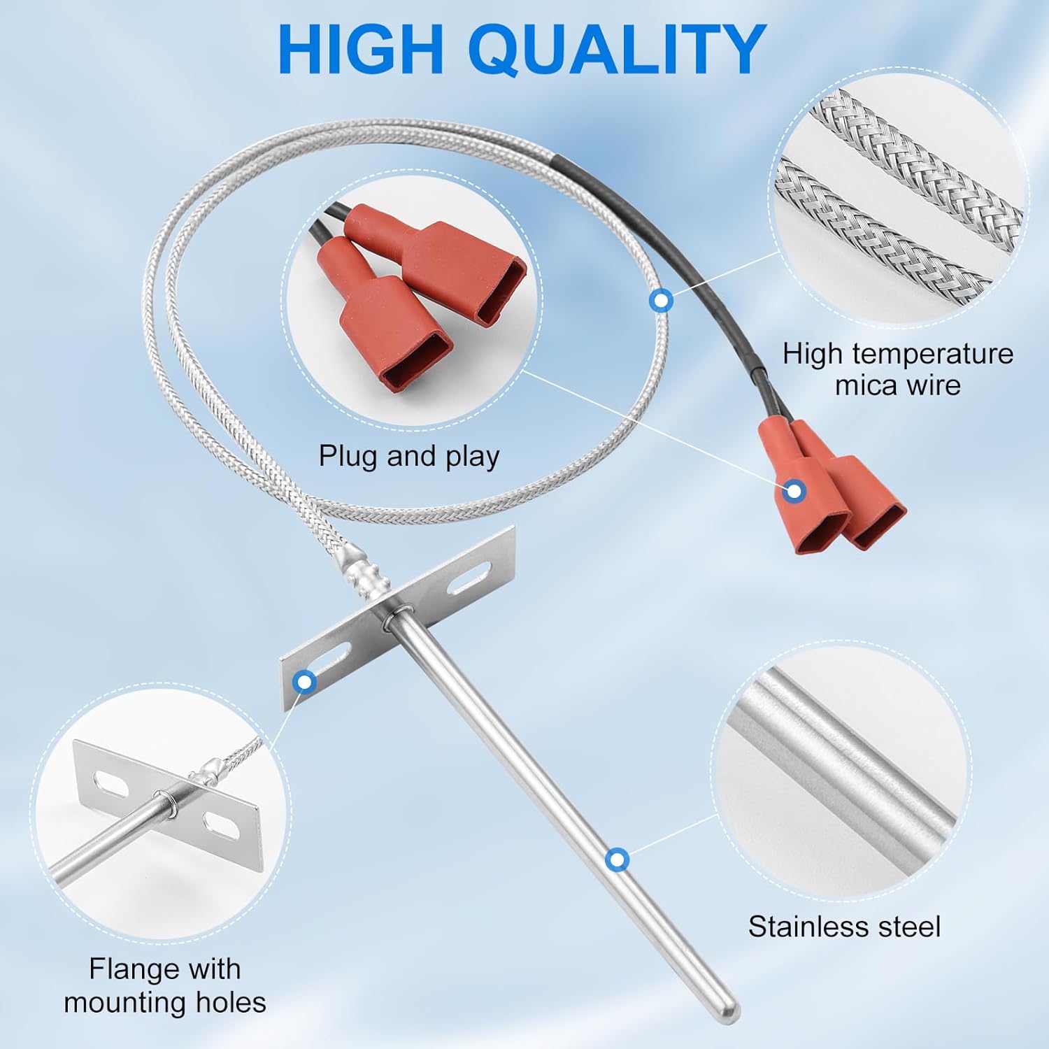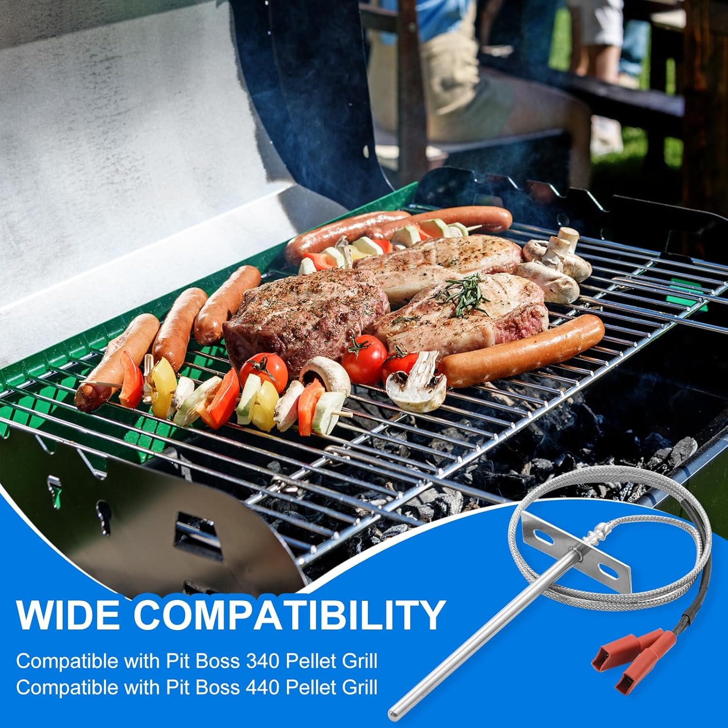 Compatible Models: RTD temperature probe sensor fit for Pit Boss 340 440, replace 70224, can be installed inside the grill cavity, monitor the temperature inside the furnace in real time, and transmit the signal to the control panel