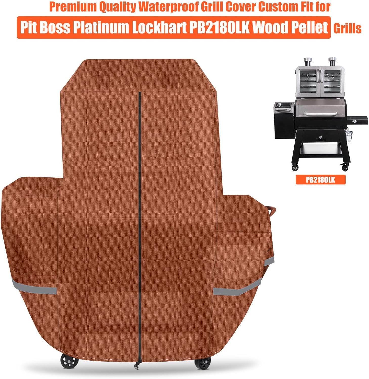 Premium Grill Cover for Pit Boss Lockhart Platinum Wood Pellet Smoker Combo Series 10500, PB2180LK Grills, Brown