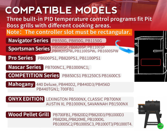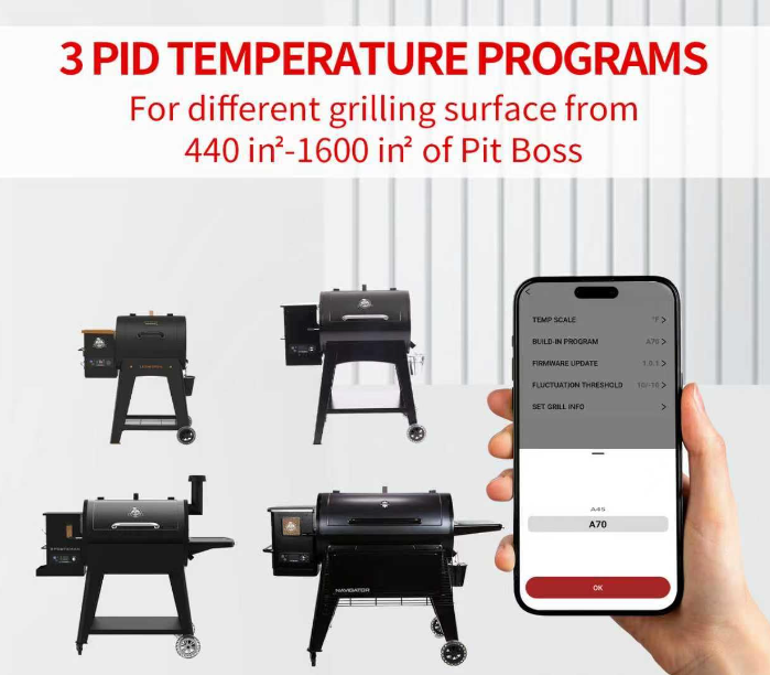 PID WiFi Controller for Pit Boss 440-1600 Navigator, Sportsman, NASCAR, Mahogany, Competitiion, Onyx, Pro Series, App-Enabled Thermostat Control Panel