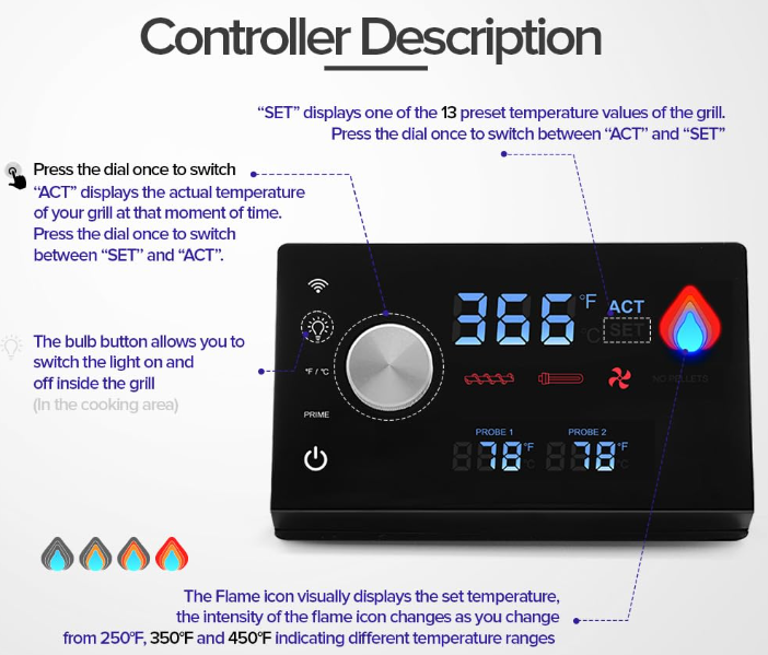 PID Digital Screen Display Control Board for Pit Boss Lockhart Platinum Pellet/Smoker Combo Grill PID Controller for PB2180LK Part 80042