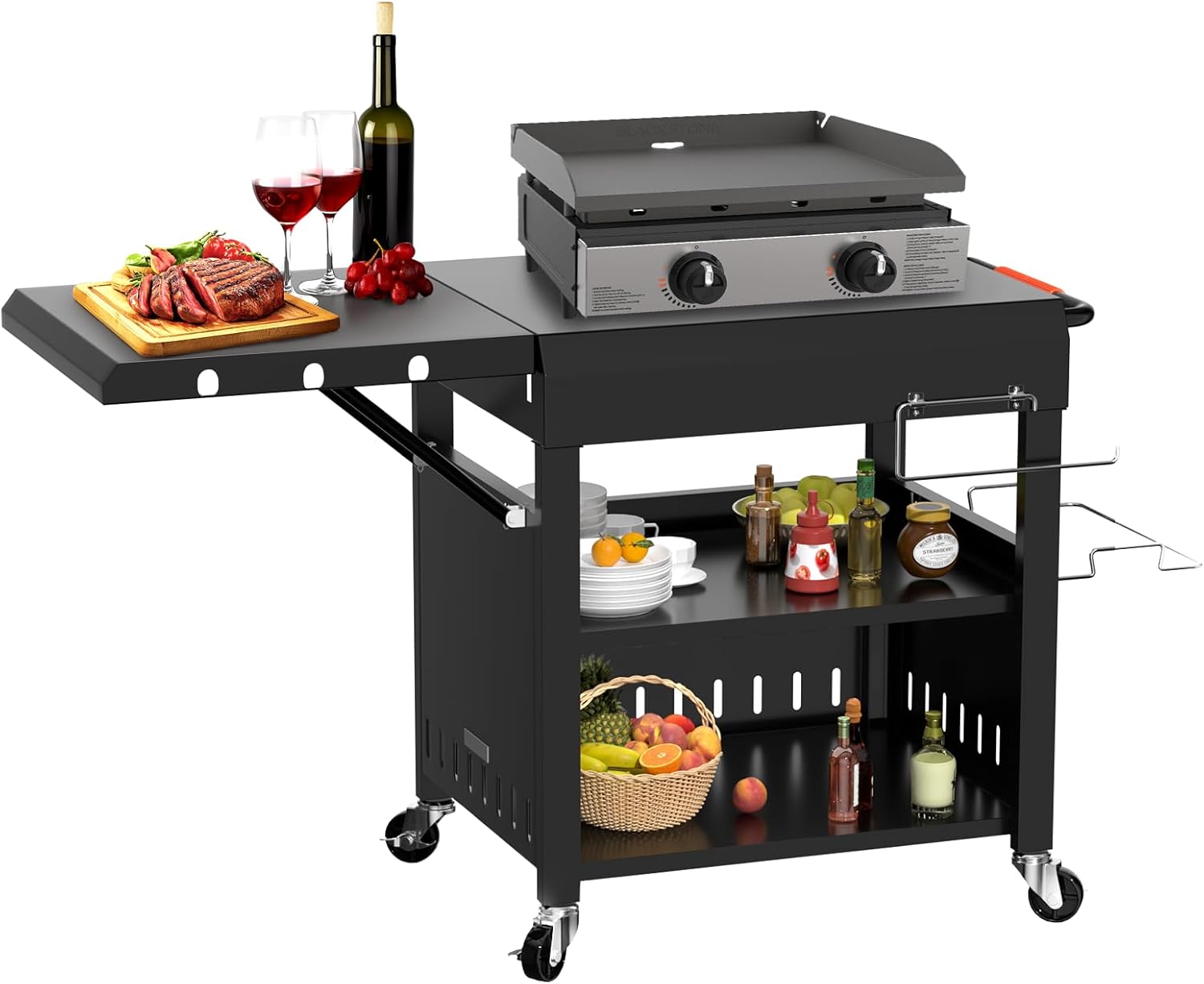 Outdoor Table Cart for Blackstone 28"/36" Omnivore Griddle, 50" x 22“ Large Prep Station Grill Stand with Side Table for Blackstone 17”/22” Griddle