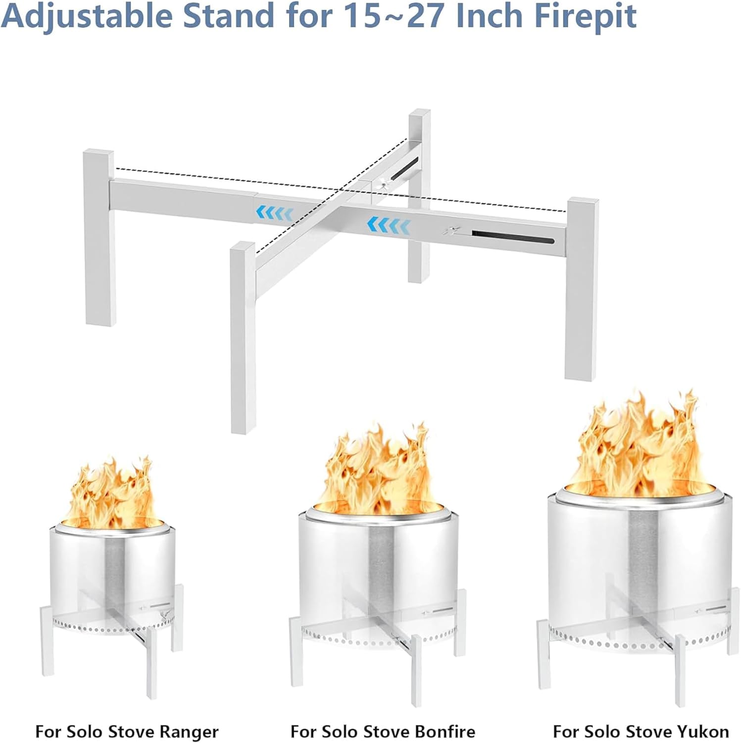 Outside Stand for Solo Stove Accessories: This adjustable fire pit stand is perfect designed for Solo Stove Ranger 15 inch firpit, Bonfire 19.5 inch fire pit, Yukon 27 inch fire pit, and other 15~27" fire pit. NOTE: FIRE PIT IS NOT INCLUDED, JUST ONE STAND.