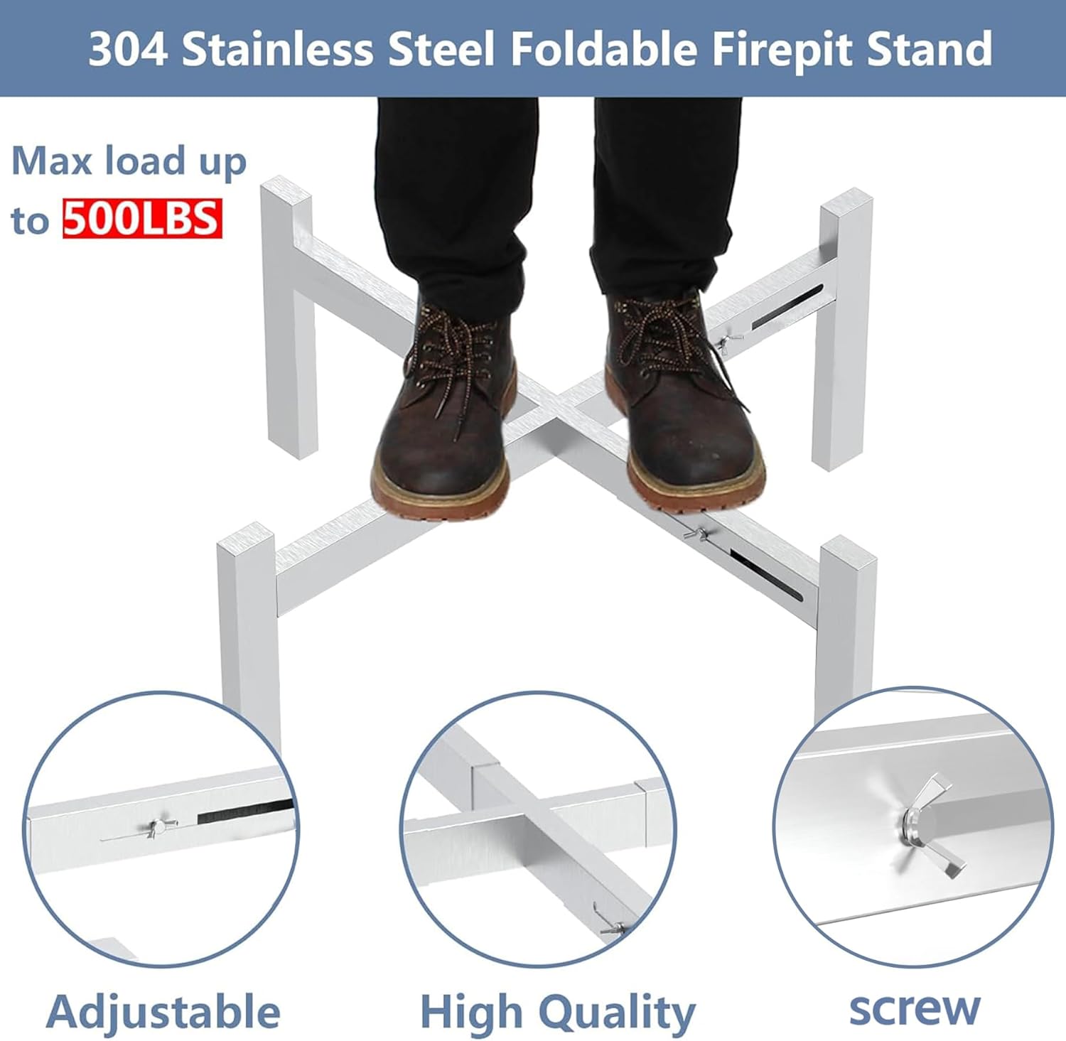 304 Solid Stainless Steel Firepit Stand: Compared with other fire pit tripod made of iron or aluminum, our yukon fire pit stand use premium quality 304 stainless steel material, wear-resistant, corrosion-resistant and high-temperature resistant to harsh environments. Even if it rains and snows, it will not rust, not easy to deformation, can be used for a long time.
