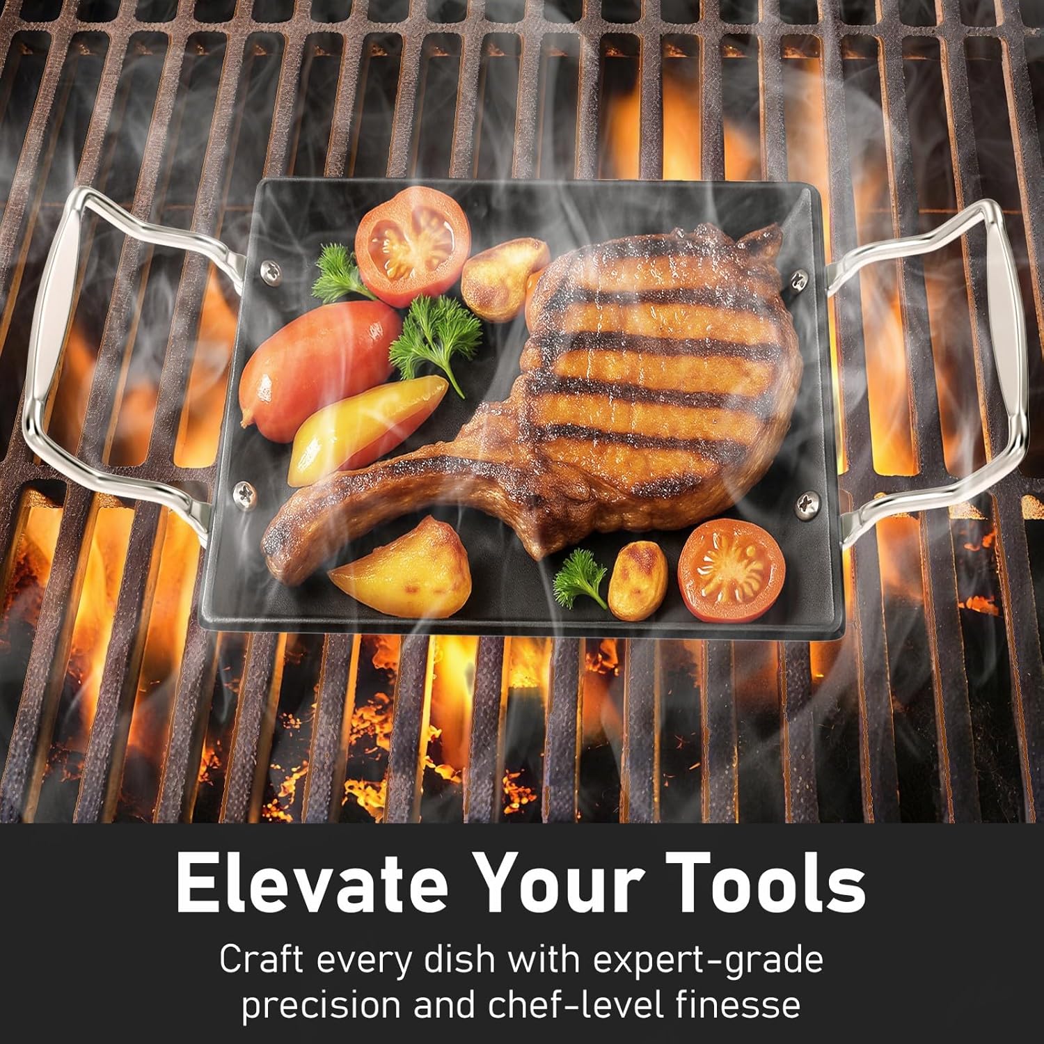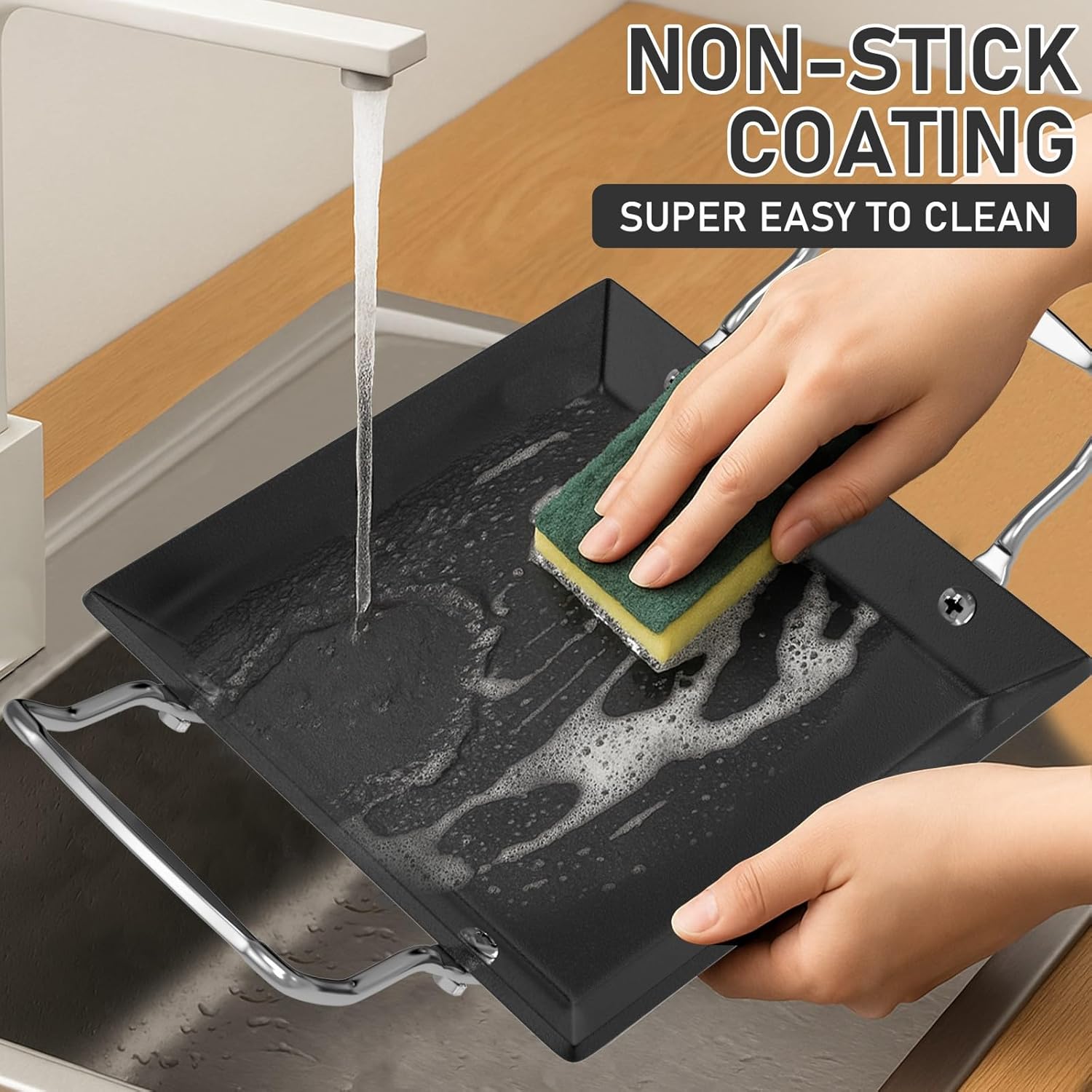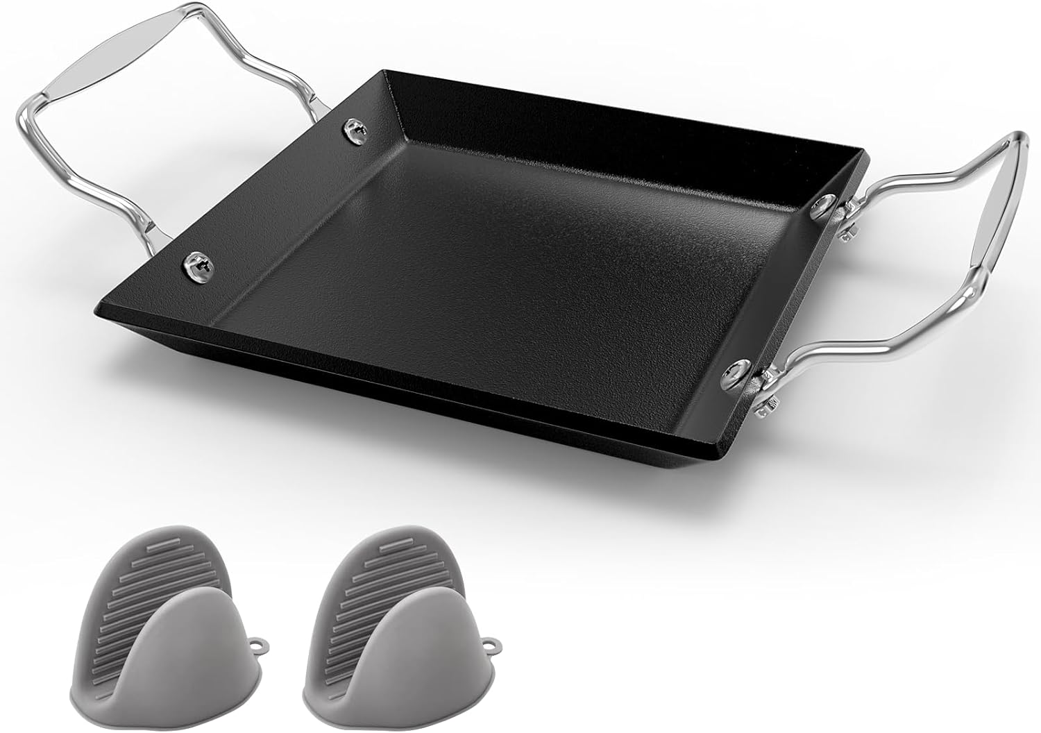 15.8" x 8.6" Cast Iron Griddle Pan, Upgraded Portable Nonstick Flat Top Grill Plate for Gas/Electric/Charcoal, for Stovetop, Camping, Outdoor BBQ