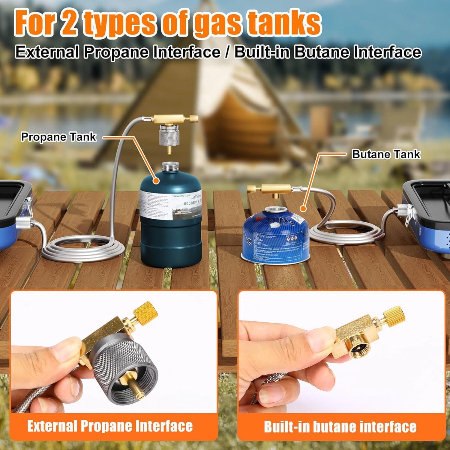 Portable 2 Burner Camping Stove Set, 20,000 BTU/h, with Folding Gas Stove, Frying Pan, Griddle, Kettle, Pot, and Carry Bag, For Propane & Butane Navy