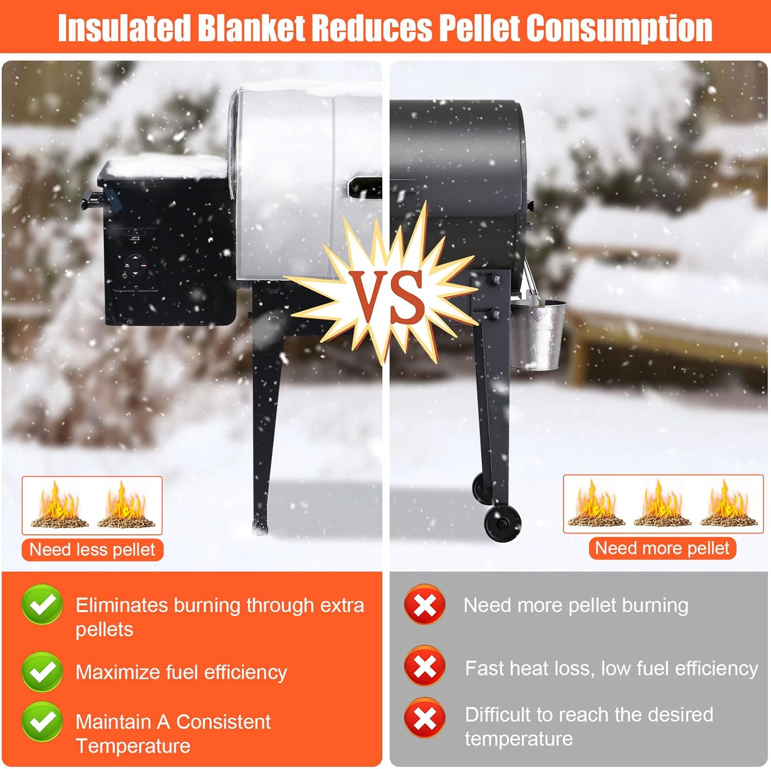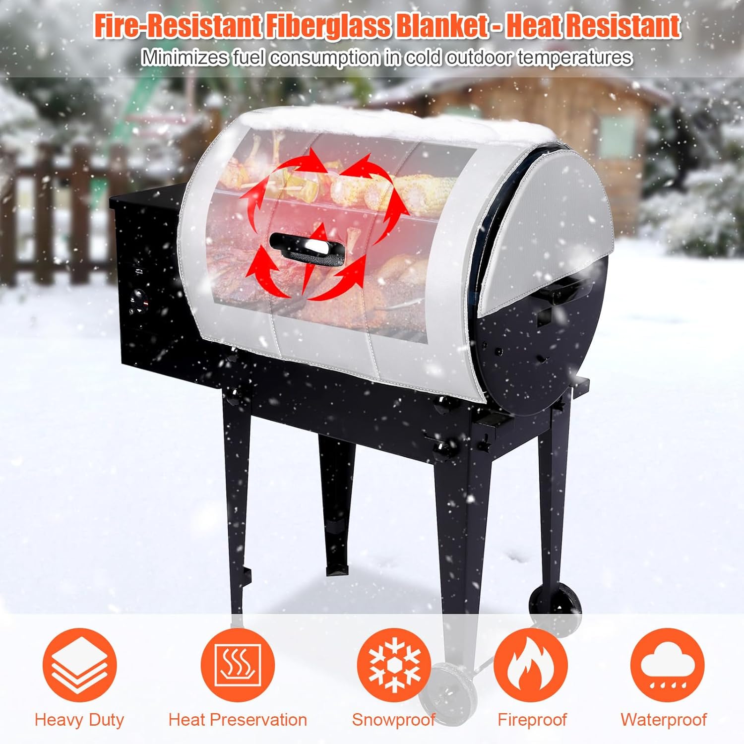 Grill Thermal Insulated Blanket for Traeger 20 Series, Junior & Tailgater 20 Wood Pellet Grills, Thermal Smoker Cover for Cold Winter BBQ, Fuel-Saving