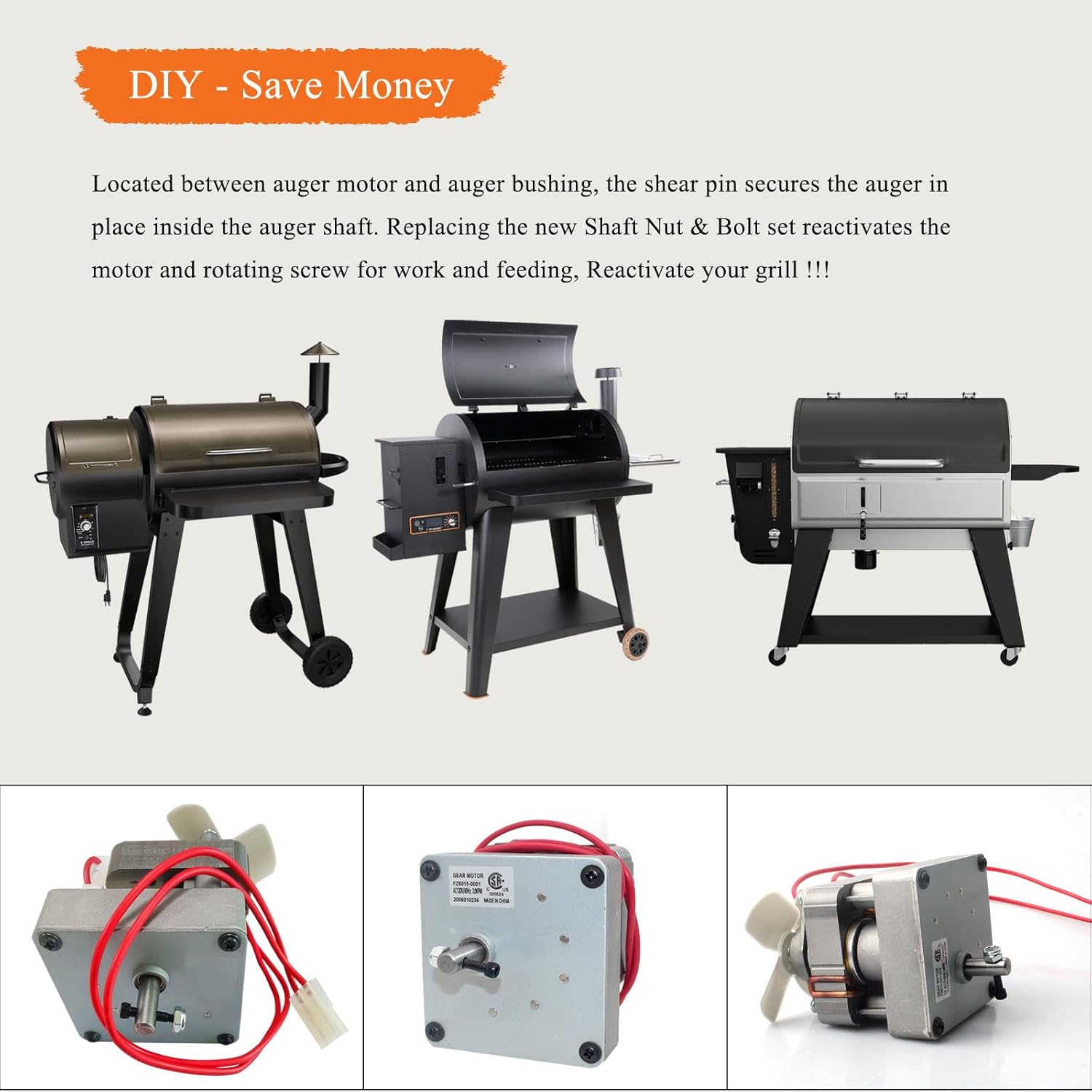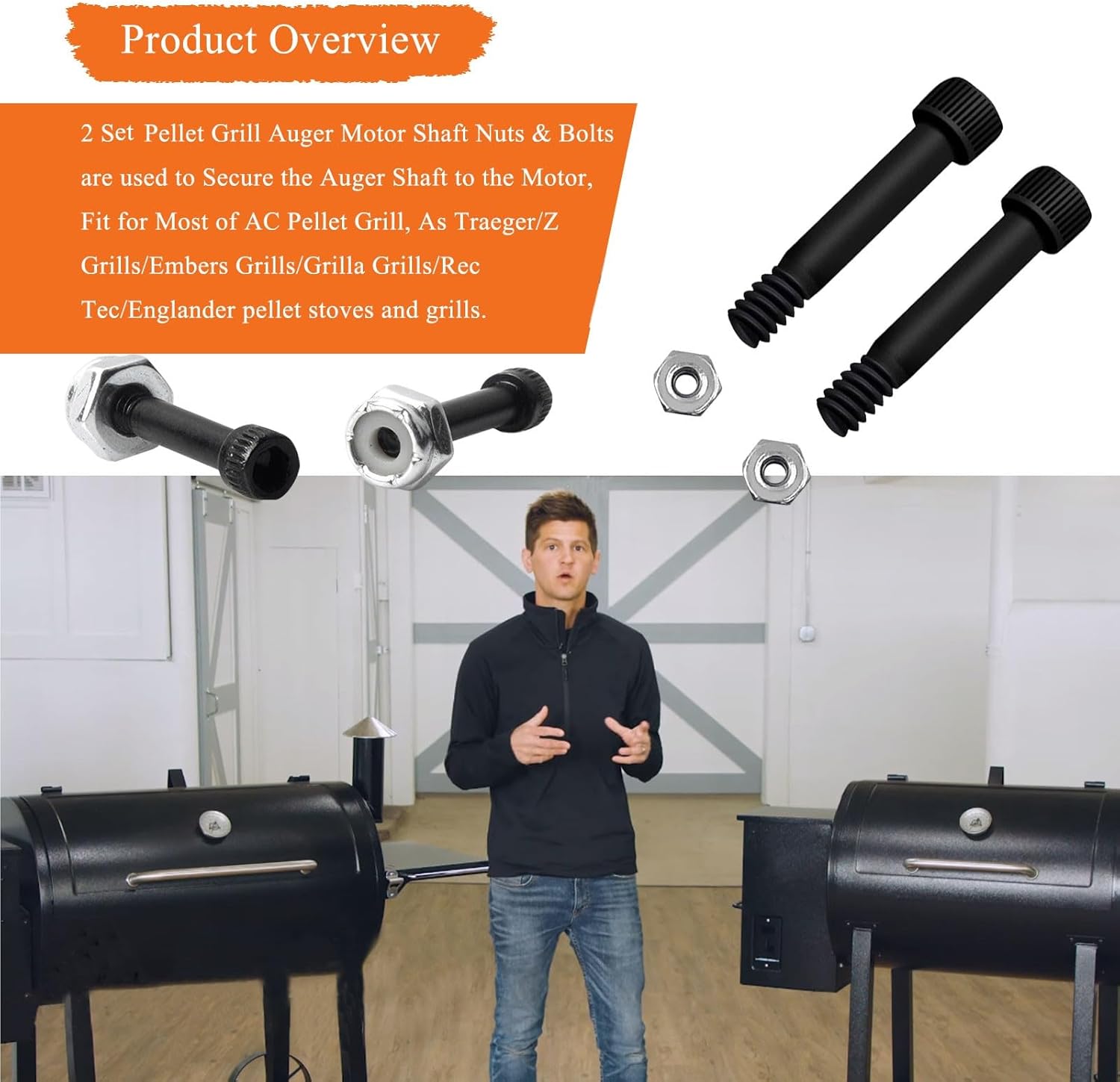 2 Set Replacement 74072 Auger Motor Shaft Nut & Bolt, Fit for Traeger, Pit Boss, Z-Grills, Rec Tec and Most Wood Pellet Grills & AC Pellet Grill