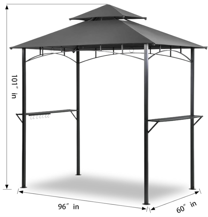 【Maximum Comfort and Space】 The spacious L78 x W59 x H99 inch of our Grill Gazebo provides ample coverage for most outdoor grills and plenty of space for you and your guests to bbq and relax