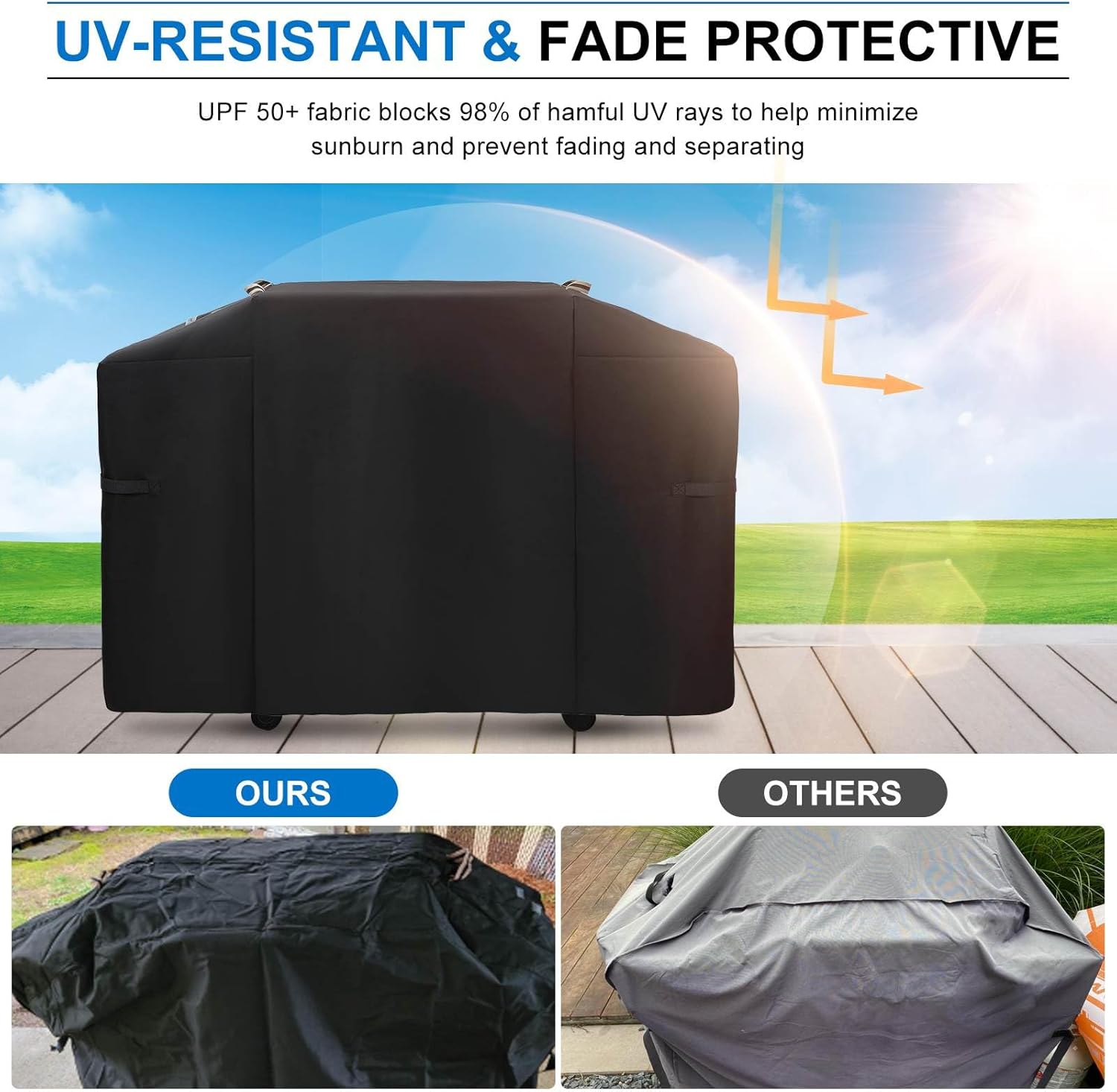 【Rip Resistant】Constructed with high tenacity fade & UV resistant upgraded material, offers superior strength to resist tearing, ripping, cracking, fading, and scratching. Our grill cover can protect your grill from heavy wind, rain, storms, intense sunshine, dusty, snow etc.