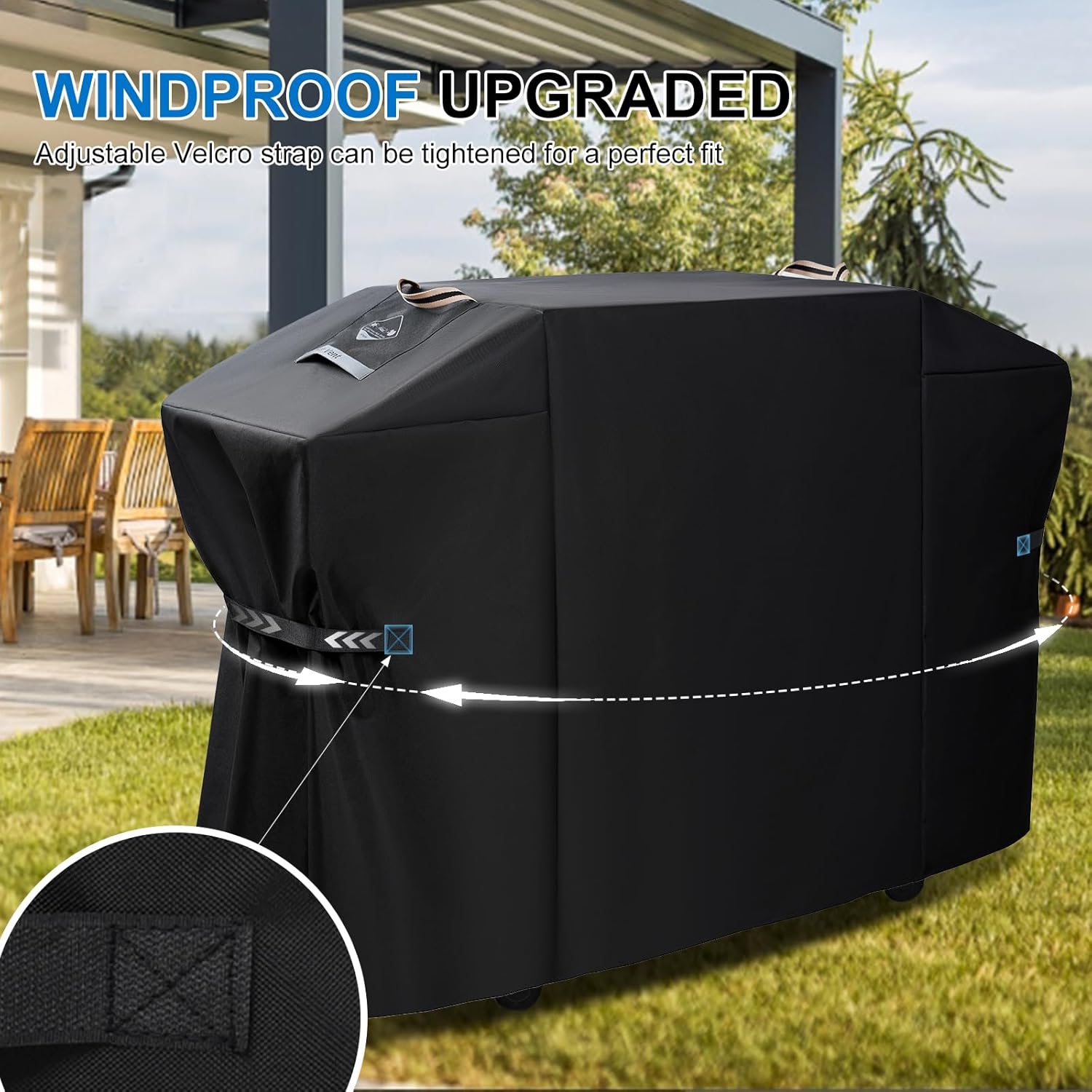 【Snug Fit & Upgraded Windproof】Reinforced adjustable velcro straps on both sides make the outdoor griddle cover secure to the gas griddle super tightly and prevent the grill covers from blowing off or slipping. Never worry about the windy days!