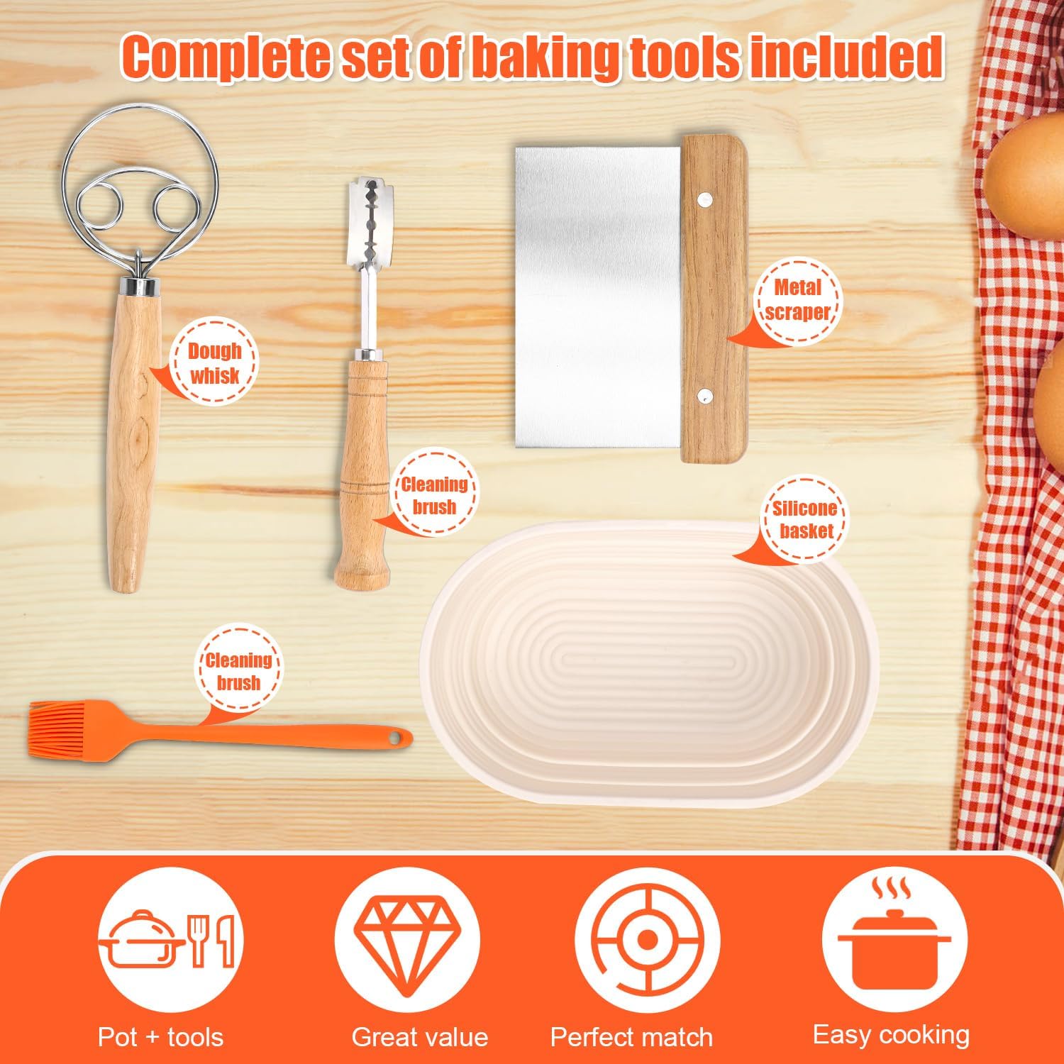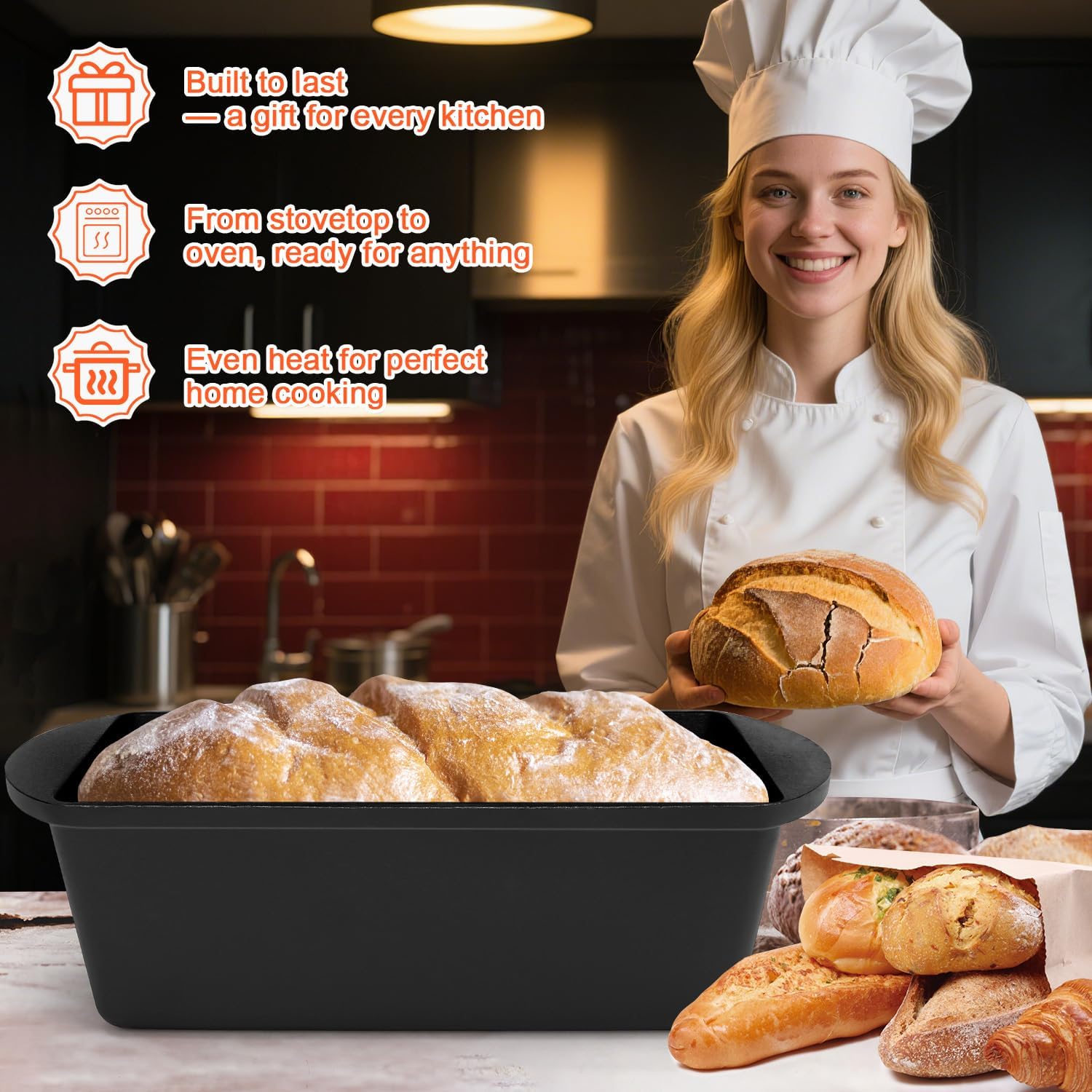 Bread Loaf Pan, Oval Cast Iron Bread Pan With Lid, 3.2QT Pre-Seasoned Sourdough Artisan Bread Baking Pan, With Sourdough Starter Kit