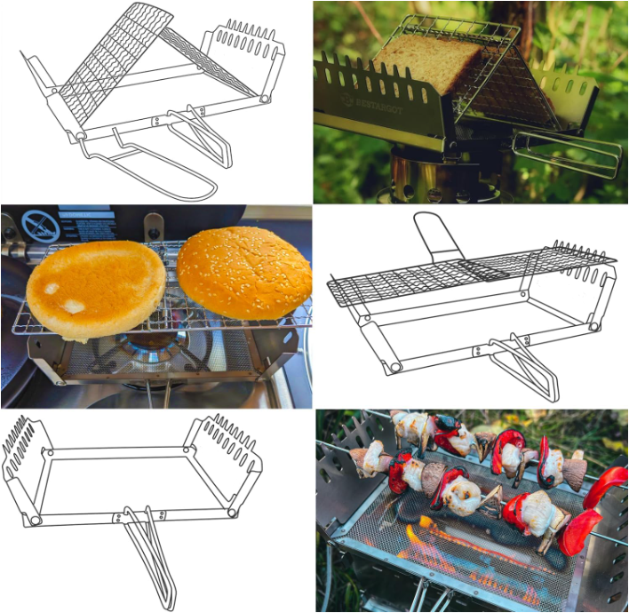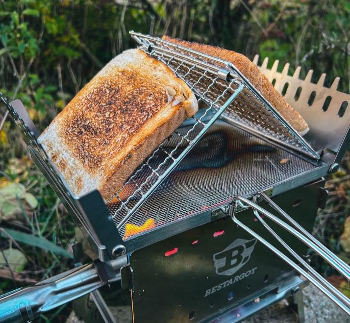 Campfire Grill & Camping Toaster, Over Fire Pit for Gas Wood Stoves - Stainless Steel, Foldable, Compact, Ideal for Solo Picnics, Fishing