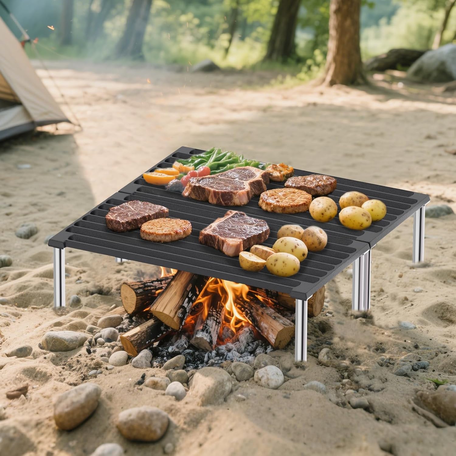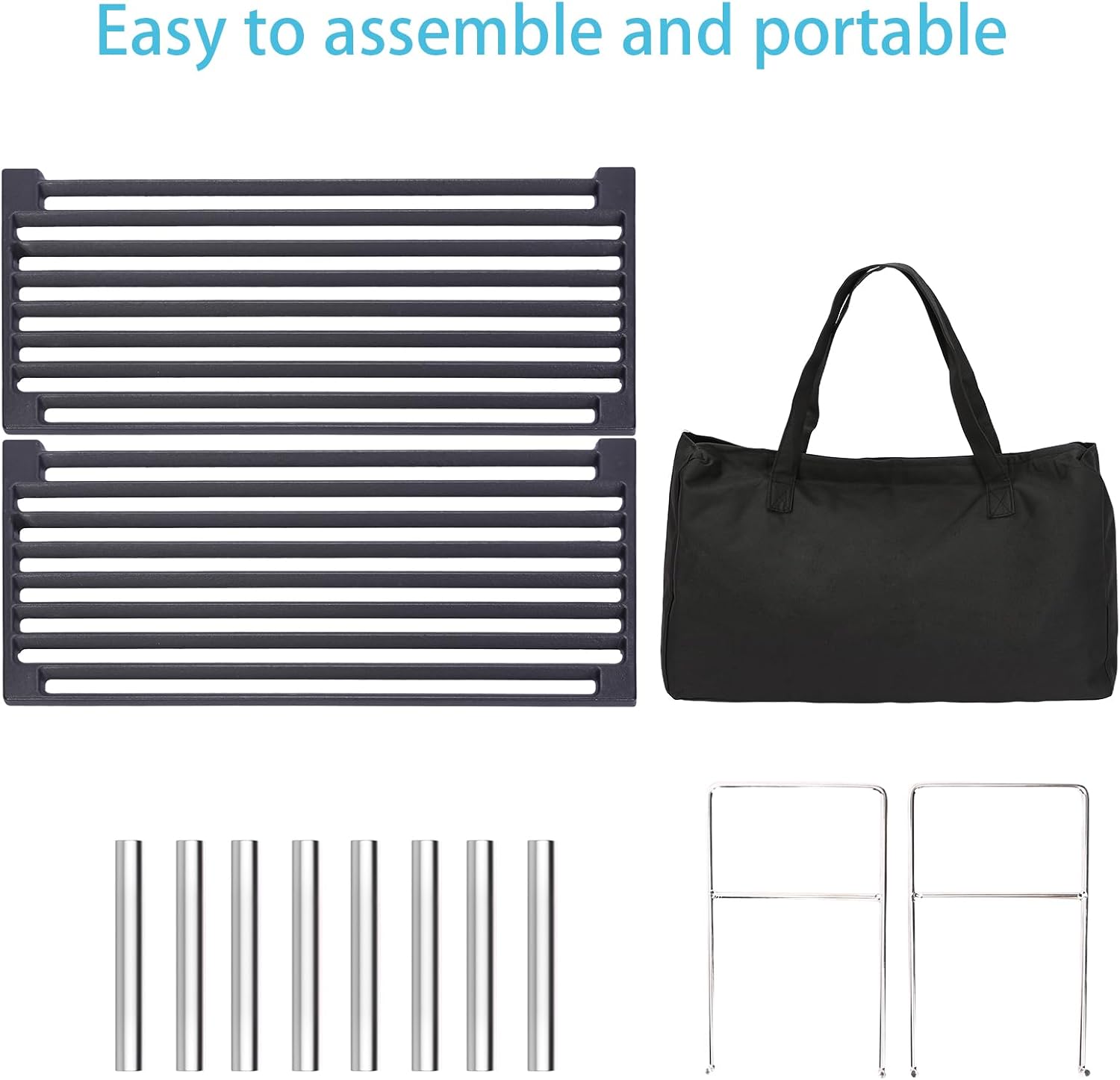 Cast Iron Tuscan Grill, 16"x 16" Heavy-Duty Open Flame Grill for Authentic Italian Cooking, Portable with Screw-On Legs, Sear Marks, 2 Handles & Bag