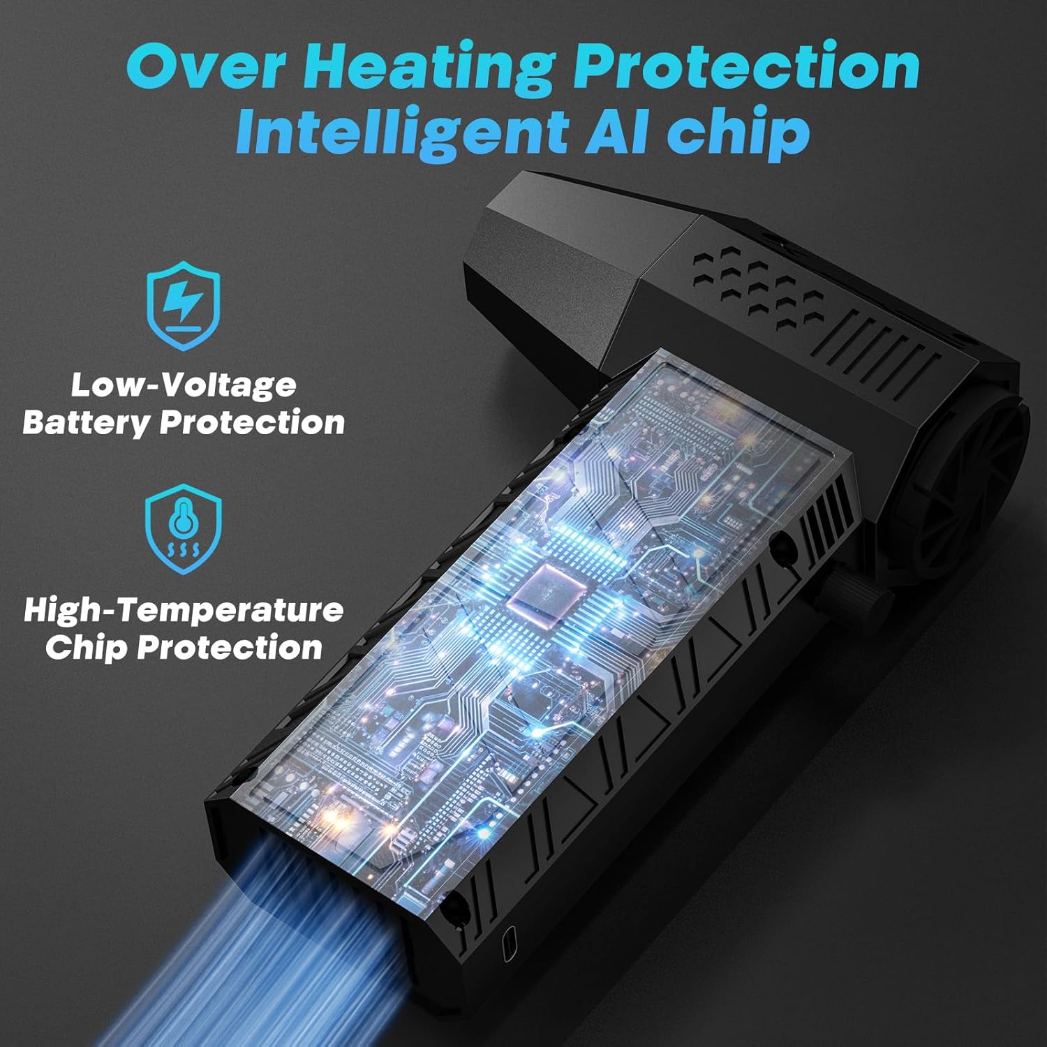 【1%-100% Stepless Speed Adjustable Technology】This ecordless air duster adopts original stepless speed regulation technology, which can achieve accurate selection of air conditioning wind speed from 1% to 100%, breaking through the traditional fixed wind speed mode, without wind speed restrictions, and giving full play to the comfort of air supply to complete delicate and heavy cleaning tasks. Whether you need soft airflow for precise cleaning or powerful gusts for tough work, this multi-functional tool can meet your specific needs