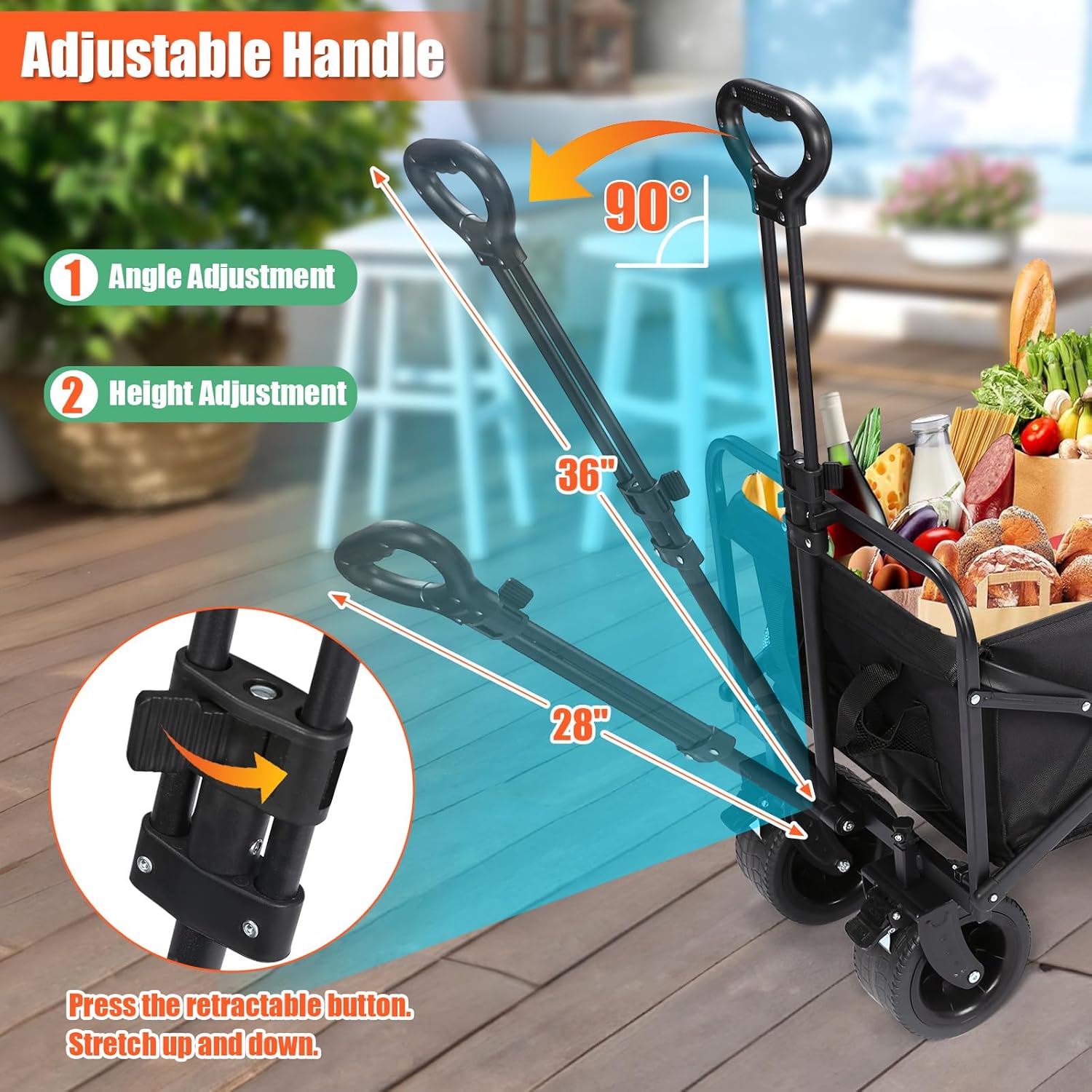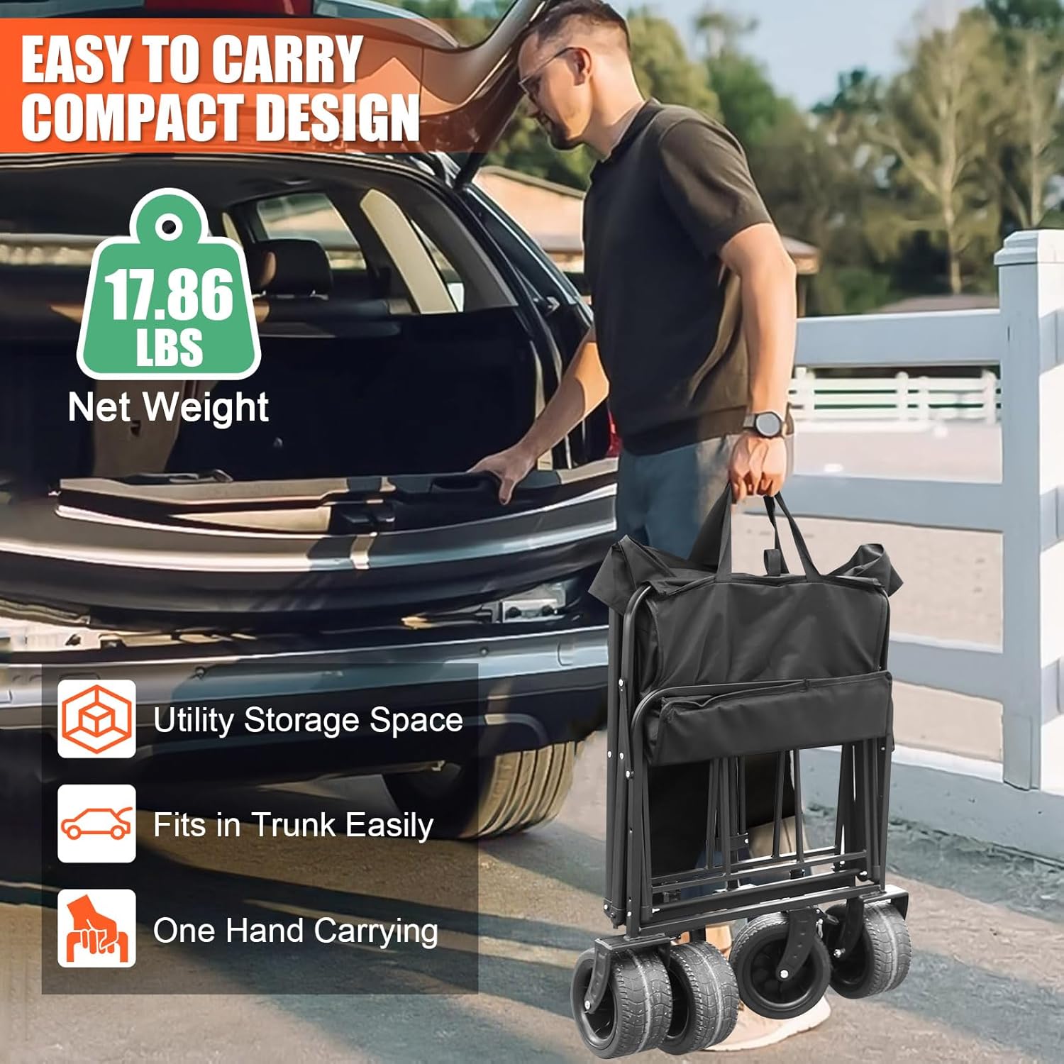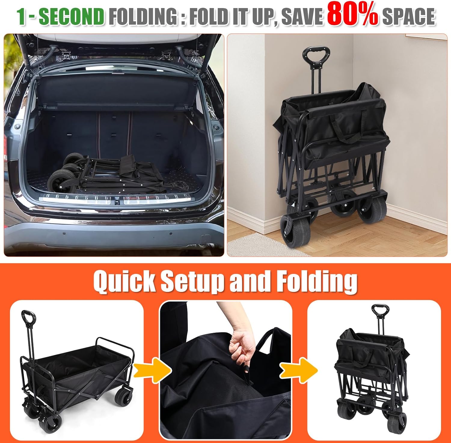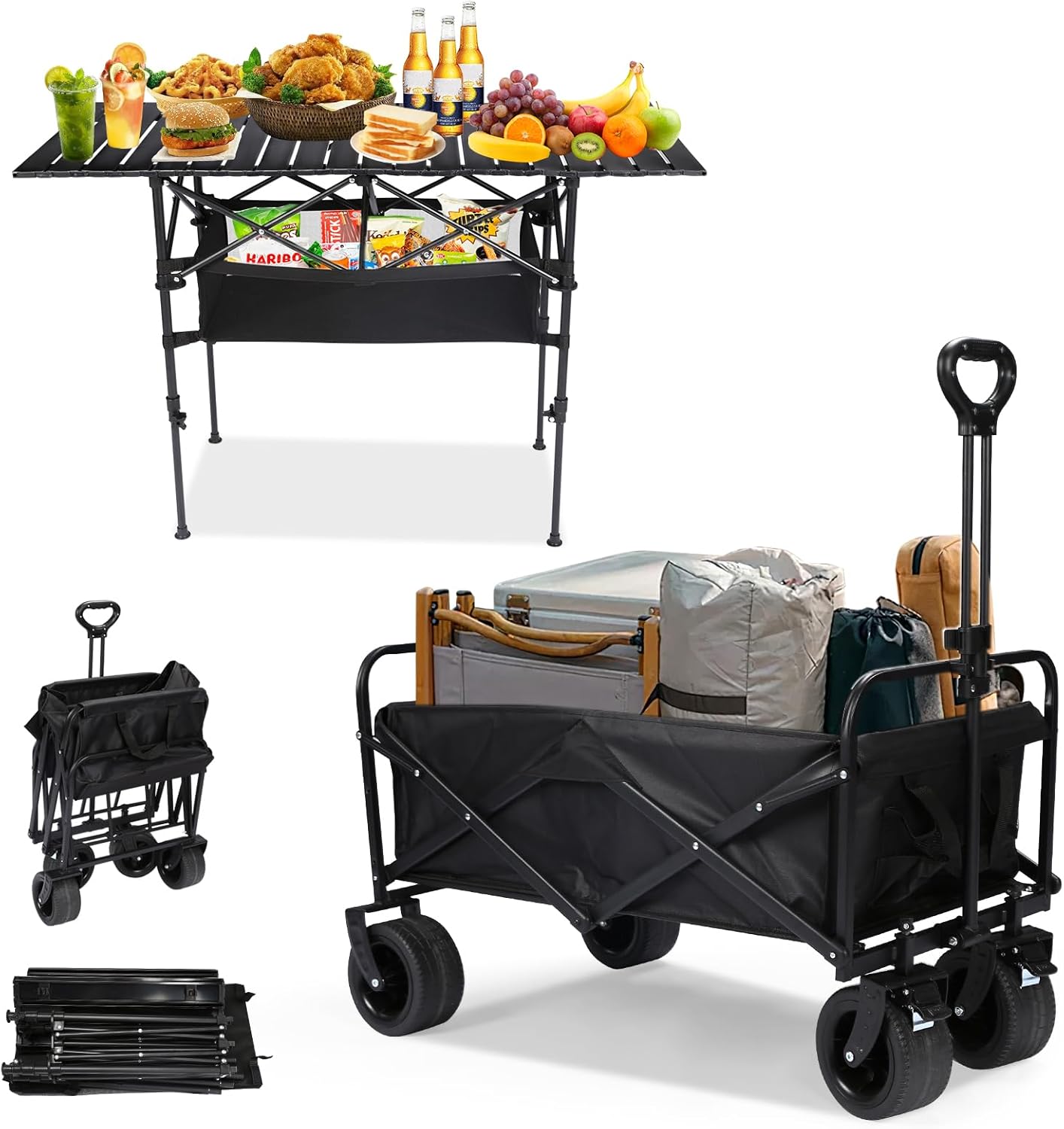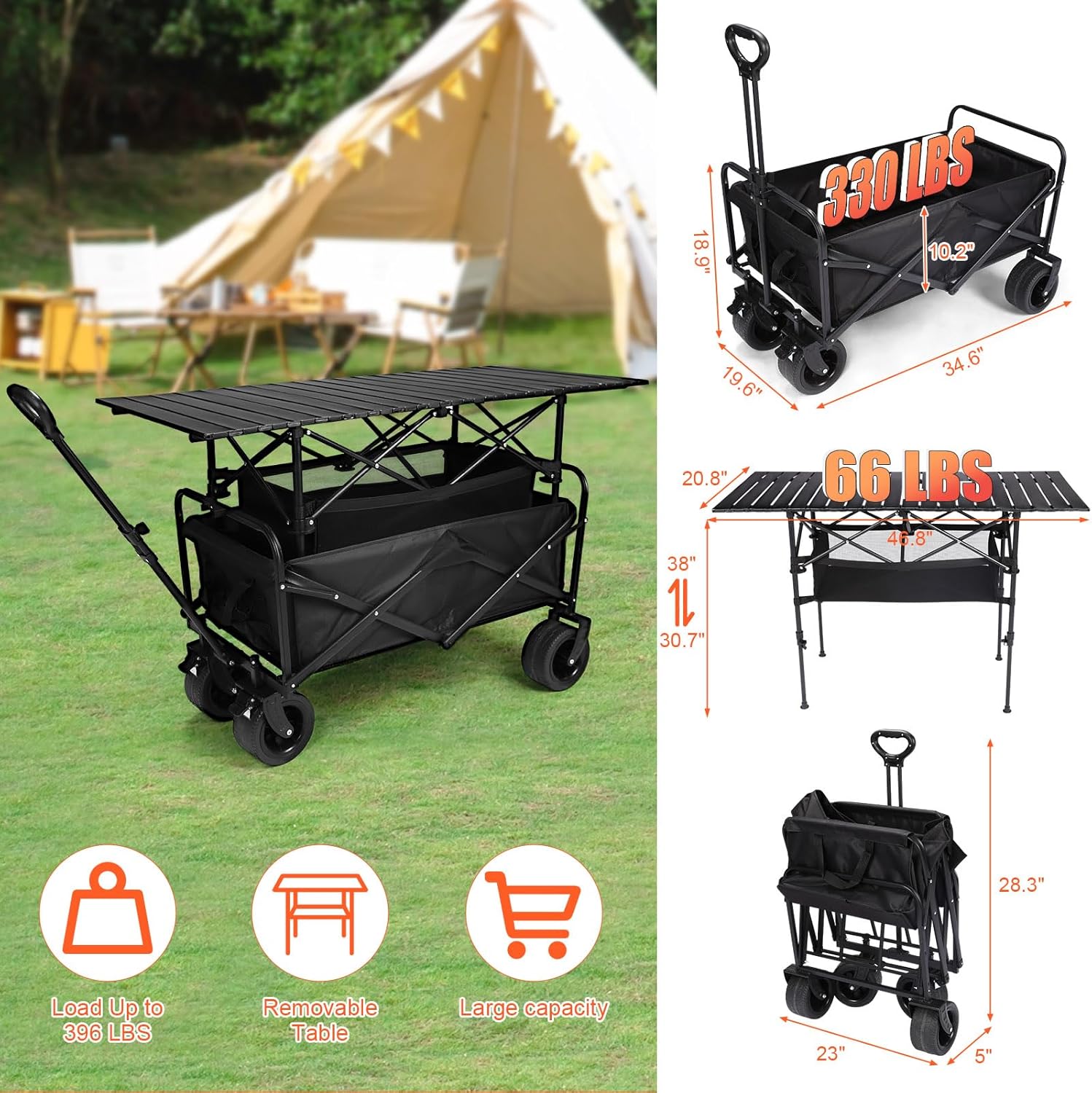 Foldable Wagon Cart with Wheels and Table, Collapsible Folding Beach Wagon Large Capacity for Sand Grocery Camping Gardening Fishing Tailgating Picnic
