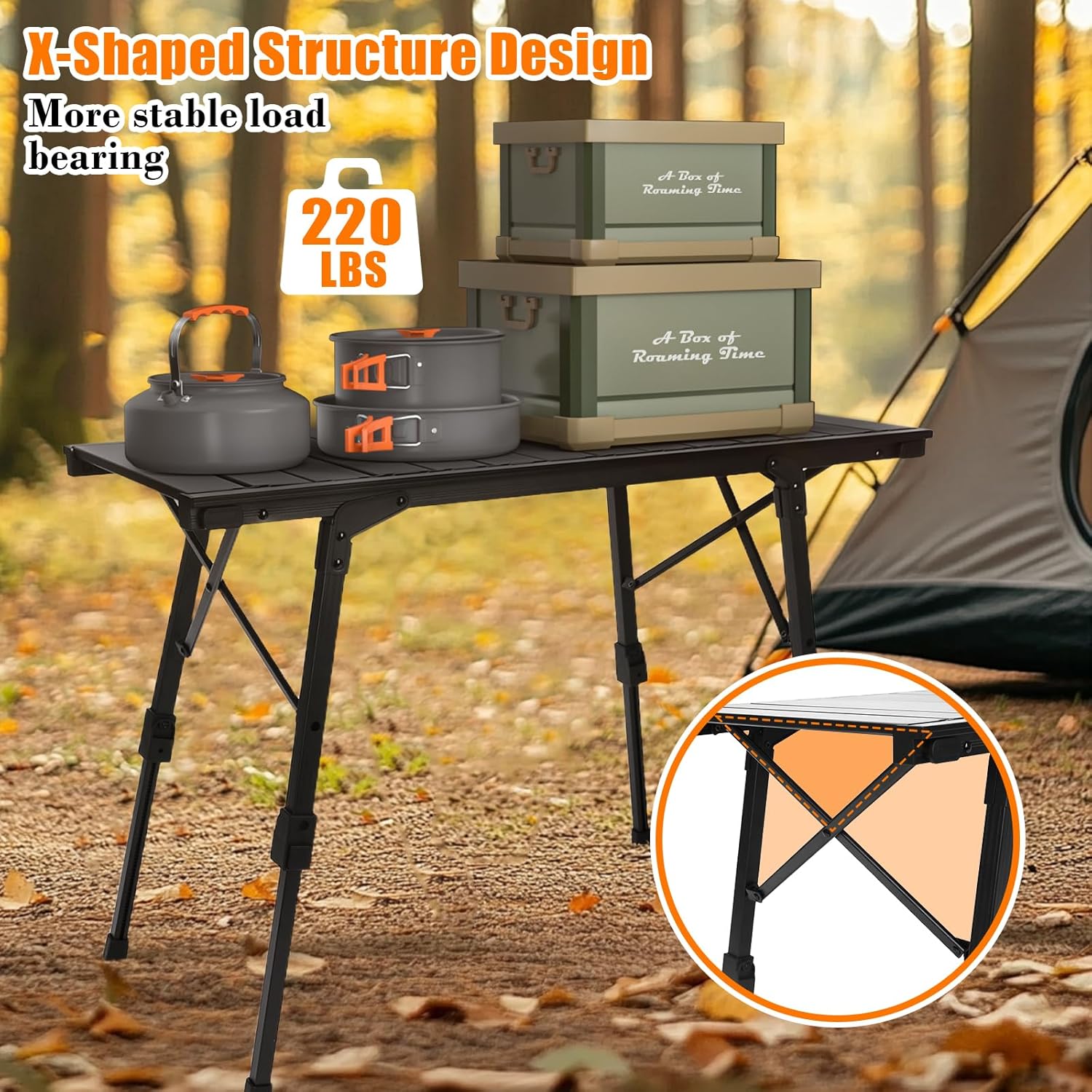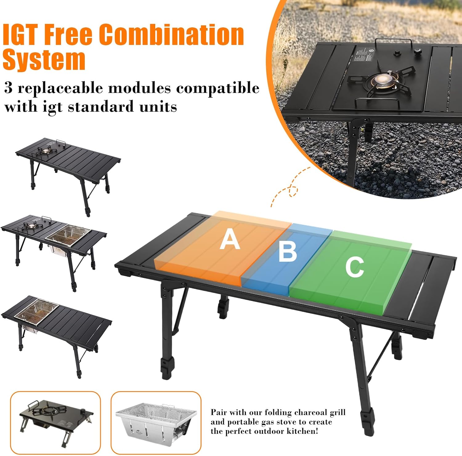Folding Camping Table, Portable Outdoor IGT Camp Table, Outdoor IGT Cook System with Carry Bag, Foldable Picnic Table for Beach, Backyard, BBQ