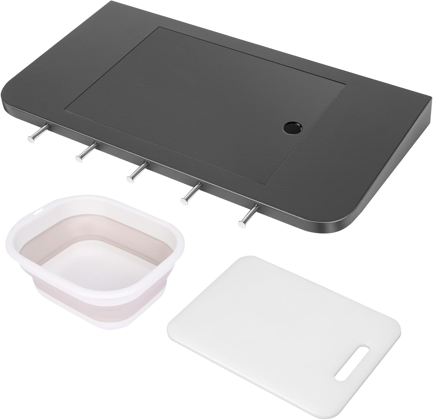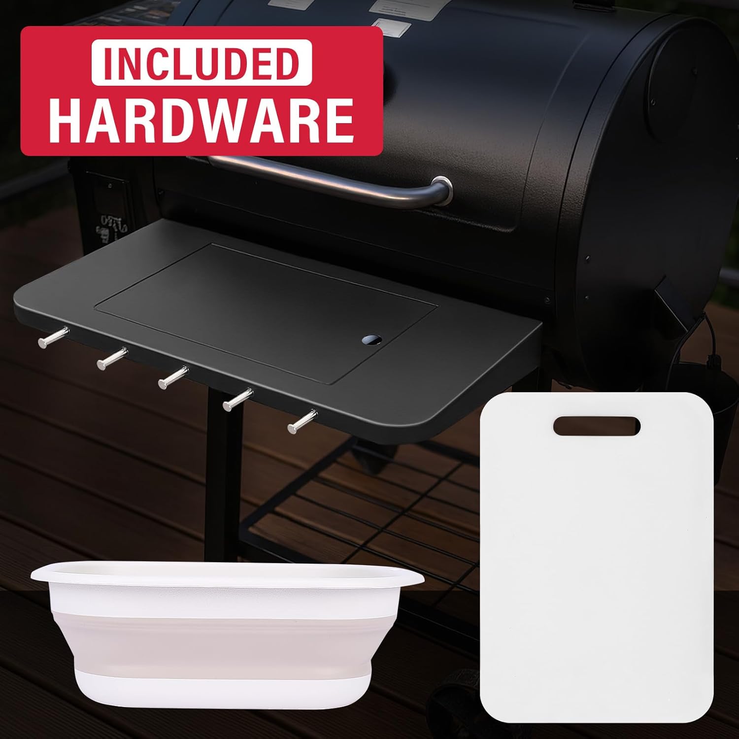 Front Folding Shelf for Pit Boss 700DX, 700FB, 700FB2, 800FB2, 23.6×12.2 Prep Station with Foldable Basin 4-Layer Steel Build, Cutting Board & 5 Hooks