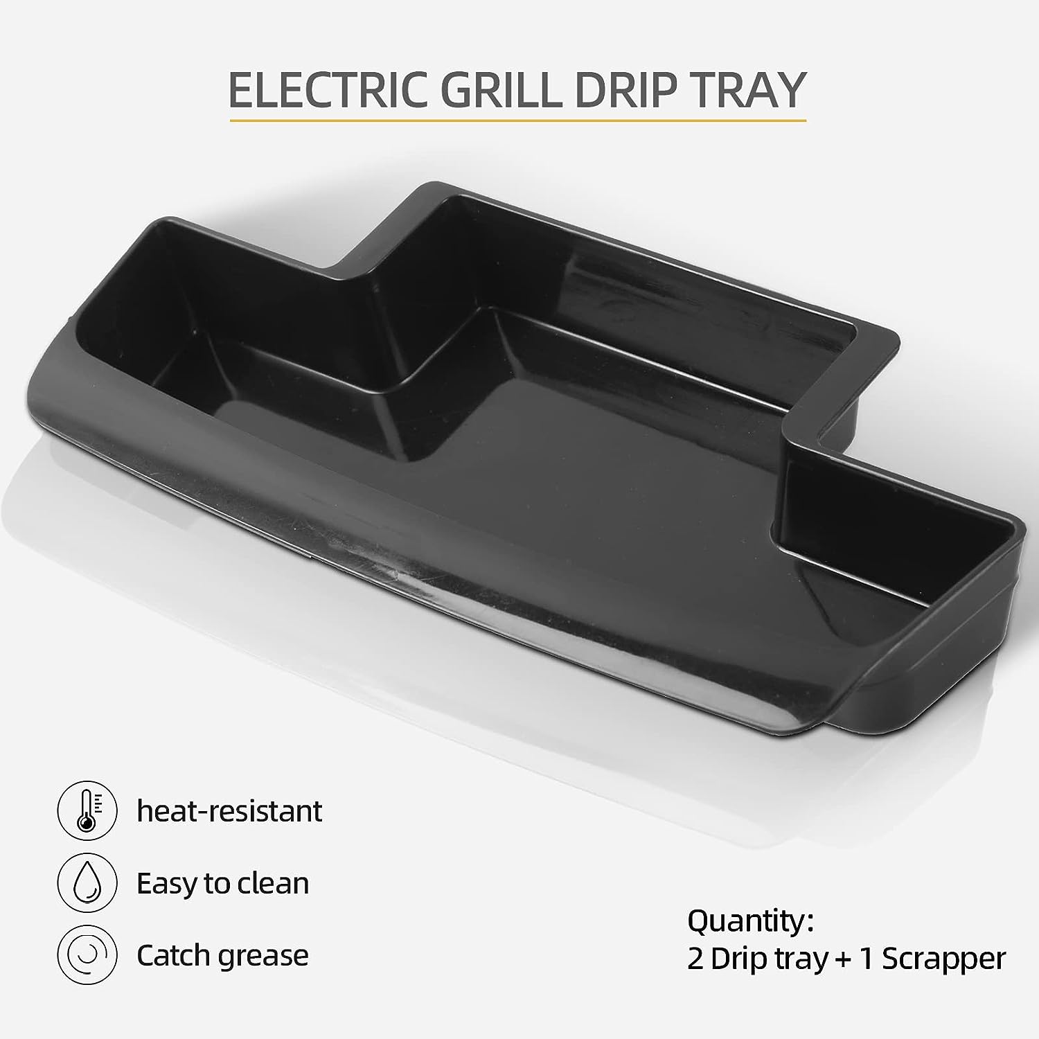 GR340 Drip Tray Pans for George Foreman 4-Serving Classic Plate Grill and Panini Press, Kit with Grill Scraper