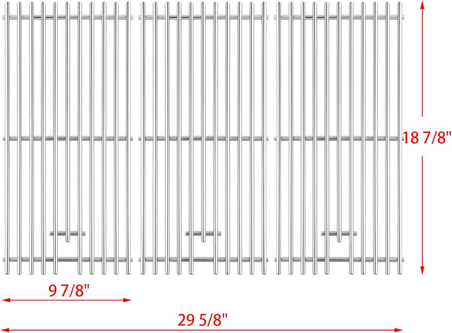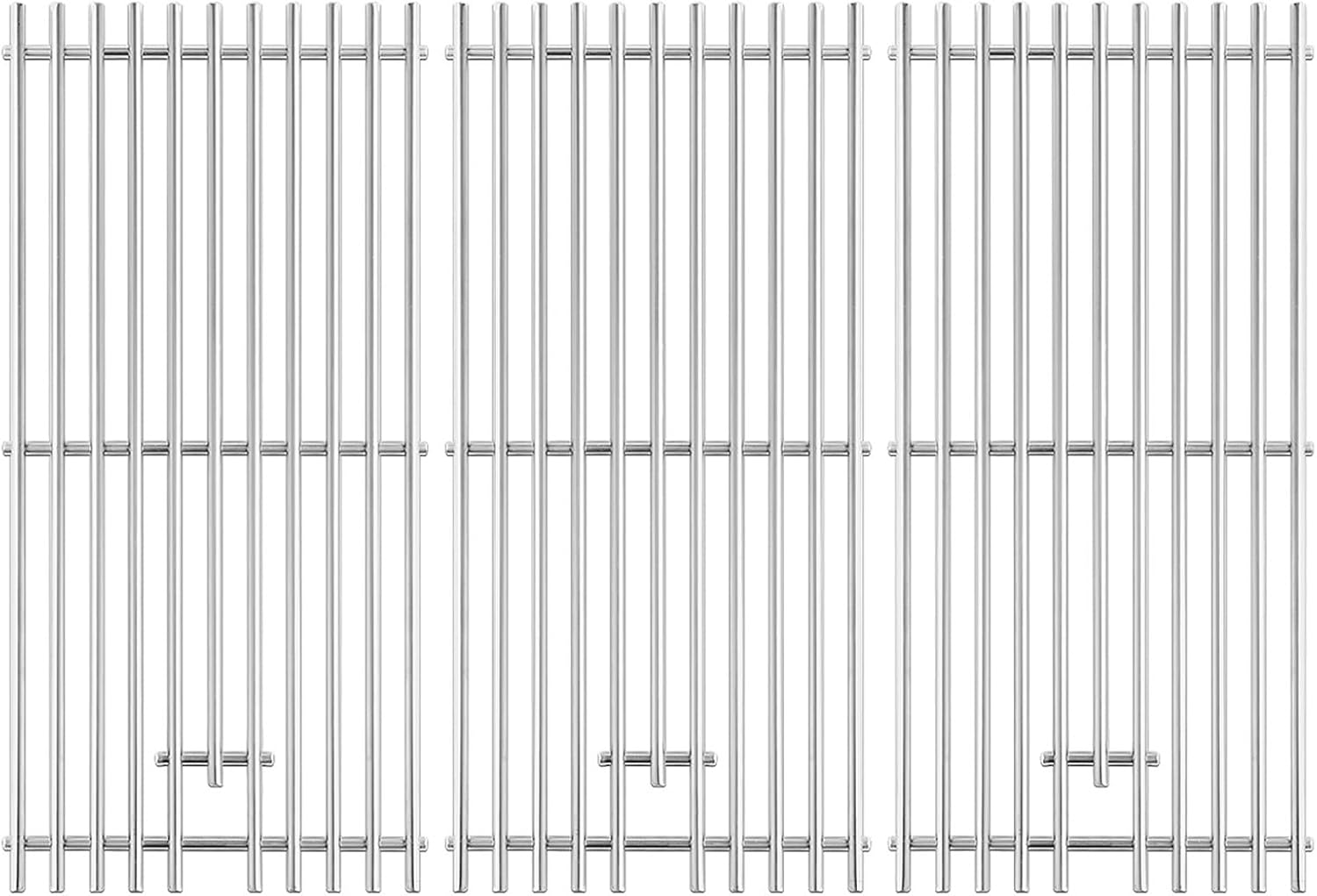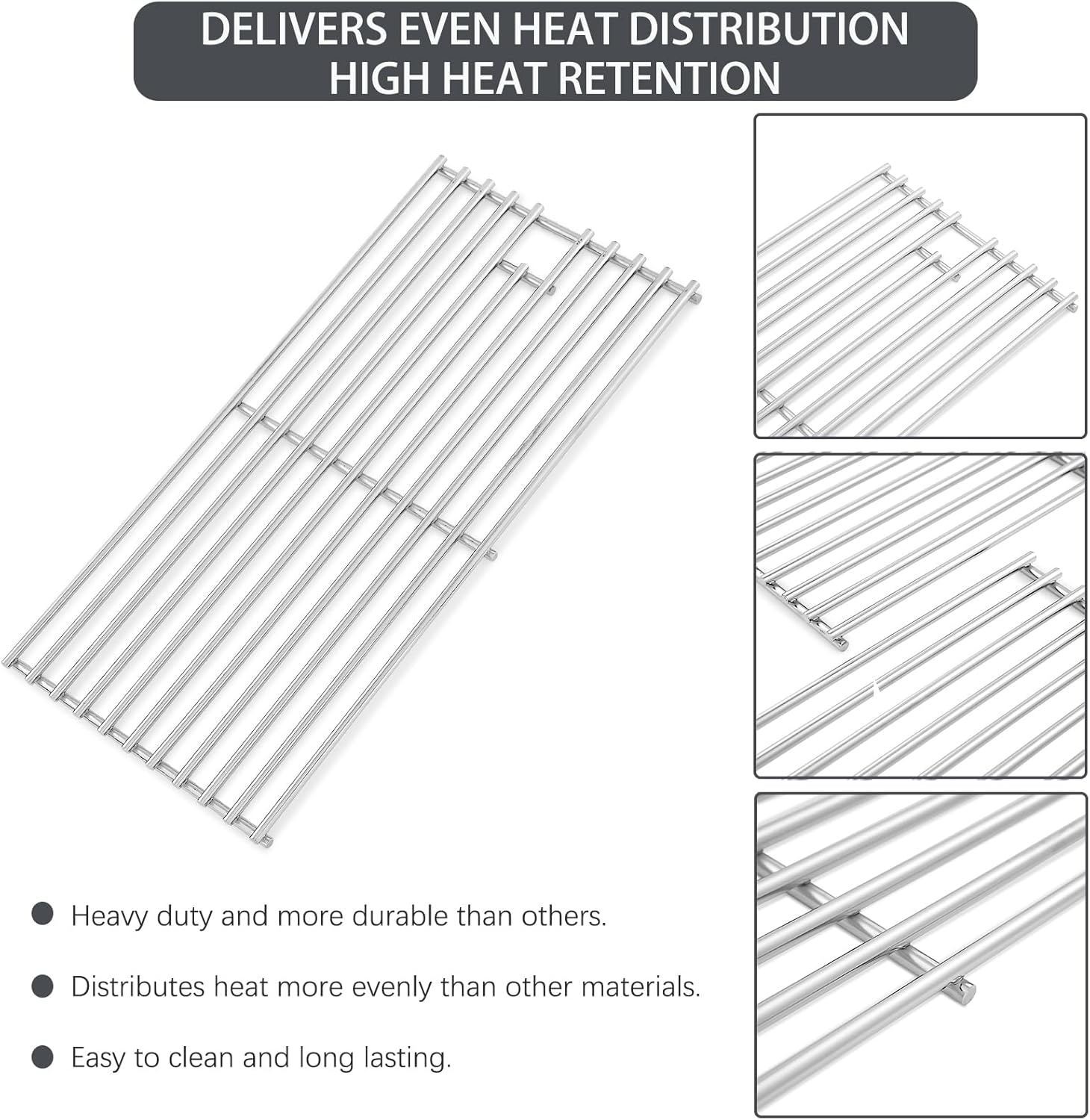 【UPGRADED HEAVIER, LARGER DIAMETER SOLID RODS】 You will get the grill grates that are made of solid stainless steel. will last for many years if it's taken care of.【HIGH HEAT RETENTION AND COOK FOOD FAST, DELIVERS EVEN HEAT DISTRIBUTION】 Heavy duty and more durable than others.