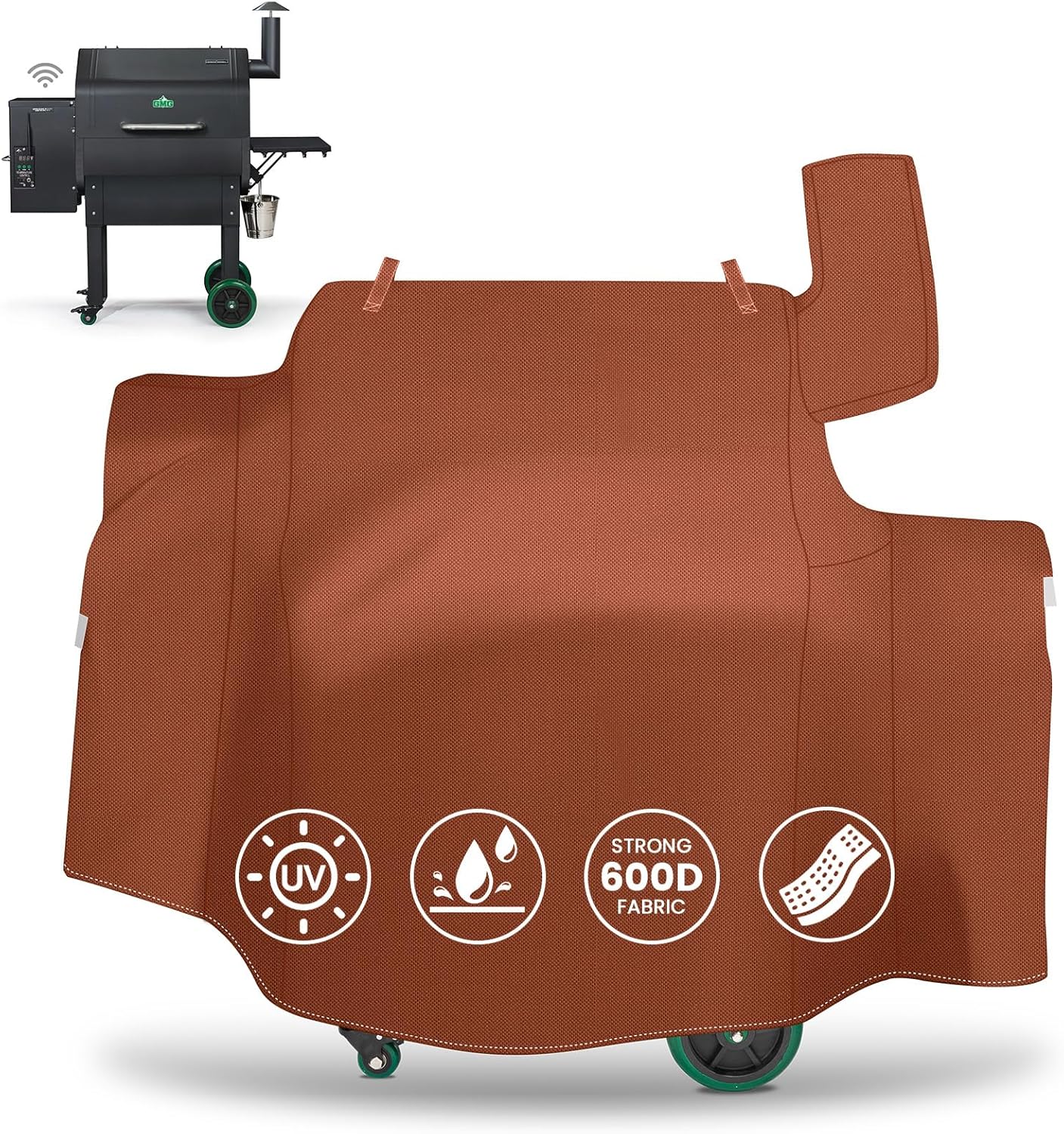 đ„ăTear-Resistant Fabric & Solid StitchingăUpgraded green mountain grill cover is made of heavy duty 600D polyester and waterproof PVC coating inside, the Solid Stitching process makes the seams of the oven cover stronger and less likely to crack. It has excellent waterproof, weather-resistant, anti-UV and wear-resistant ,fade resistant performance. Designed to give your grill all year round protection
