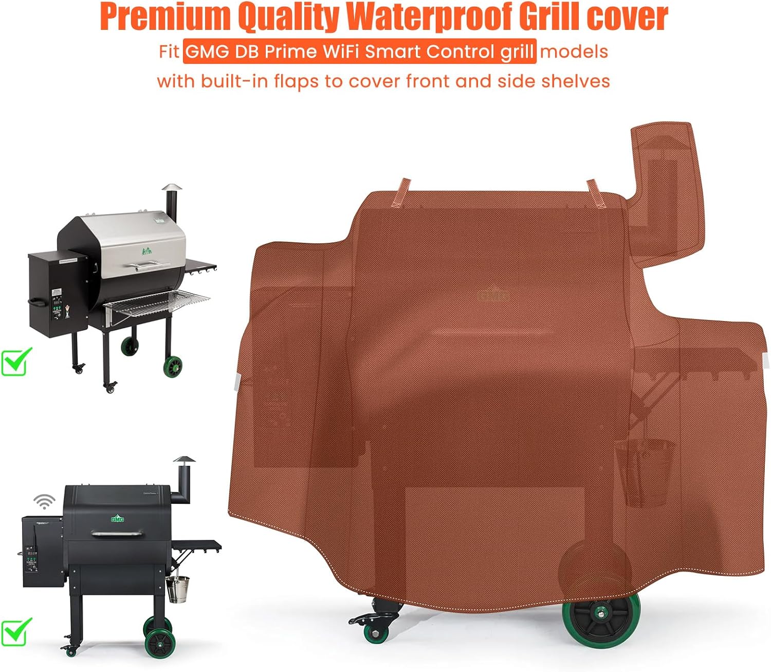 đ„ăPerfect FităDesigned to fit GMG DB Prime WiFi Smart Control grill models with built-in flaps to cover front and side shelves. â¶â¶Also fits Green Mountain Grill Ledge model and the new Daniel Boone Prime Wifi (with the windows) grill models