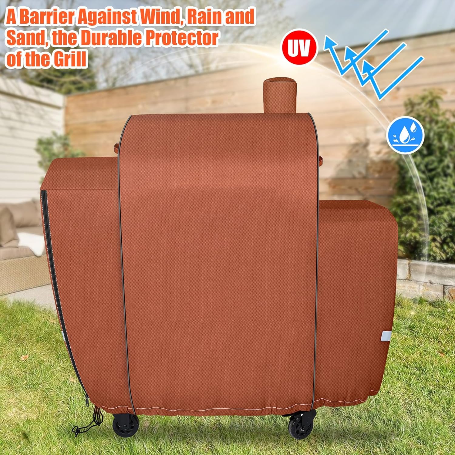 đ„ăConvenient Handles for Easy Useă Crafted for convenience, the reinforced fabric handles ensure effortless lifting, covering, and removal of your grill cover. These sturdy handles also double as hanging loops, enabling you to hang it up when not in use for space-saving storage. đ„ăZipper DesignăThe grill covers with quick zipper closures can make It quick and easy to add or remove from smoker