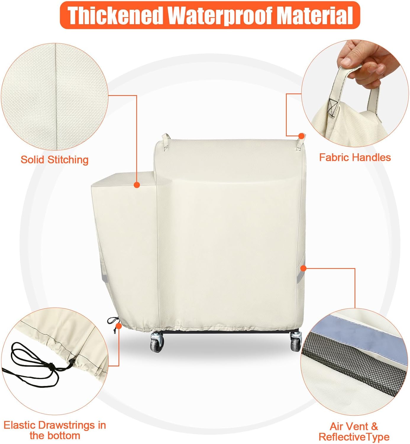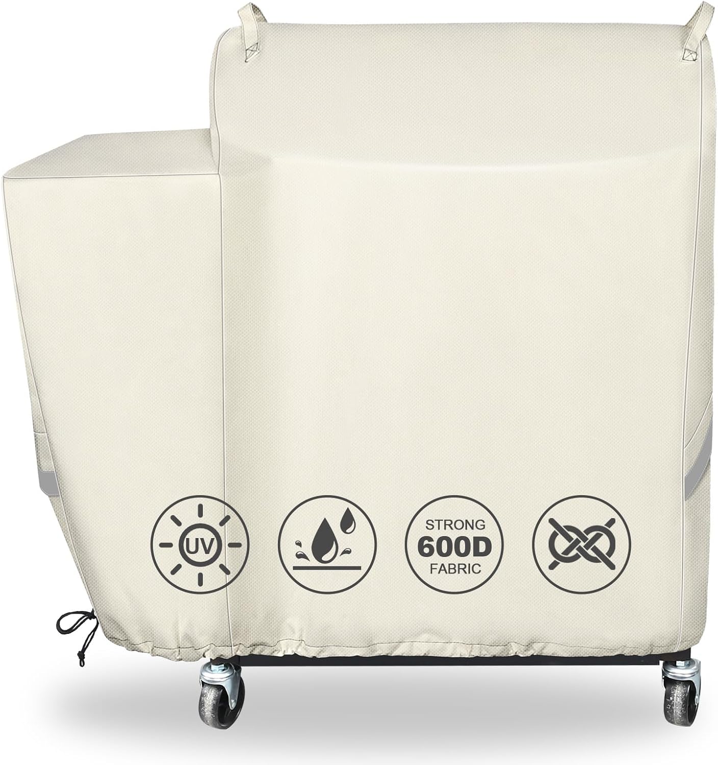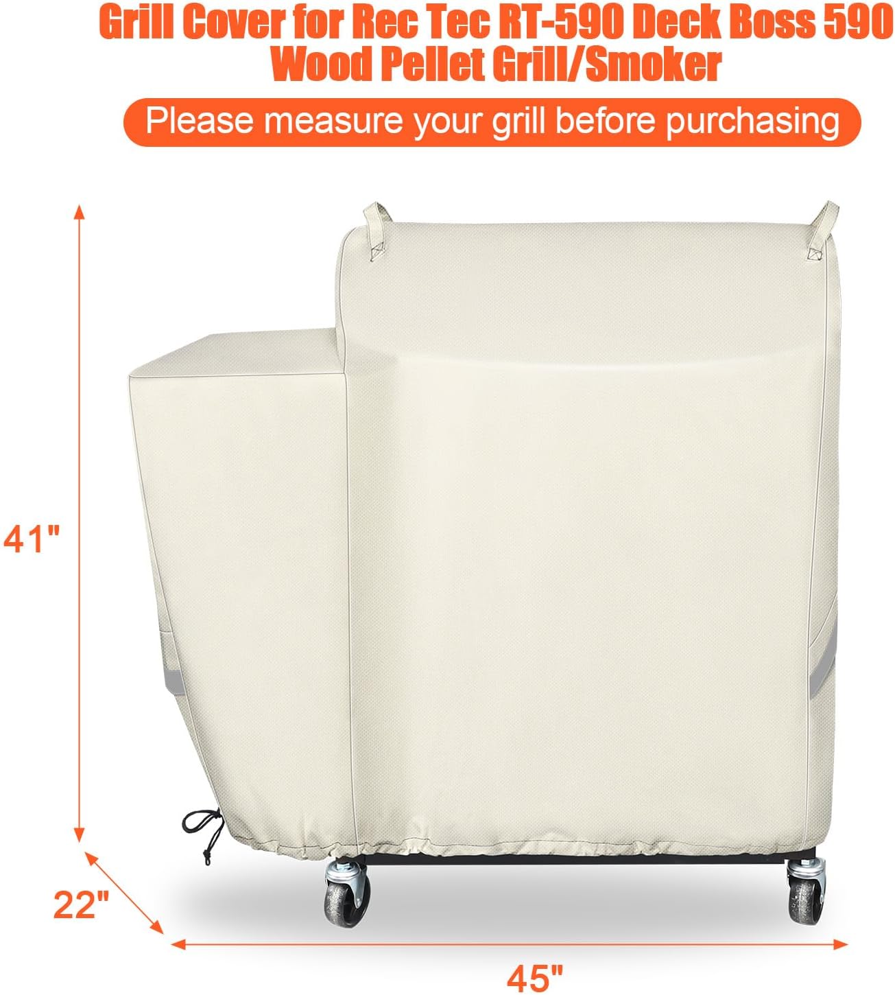 Grill Cover for Rec Tec RT-590, Recteq Deck Boss 590 Wood Pellet Smoker, Heavy Duty Waterproof Fade Resistant Outdoor Smoker Cover, Beige