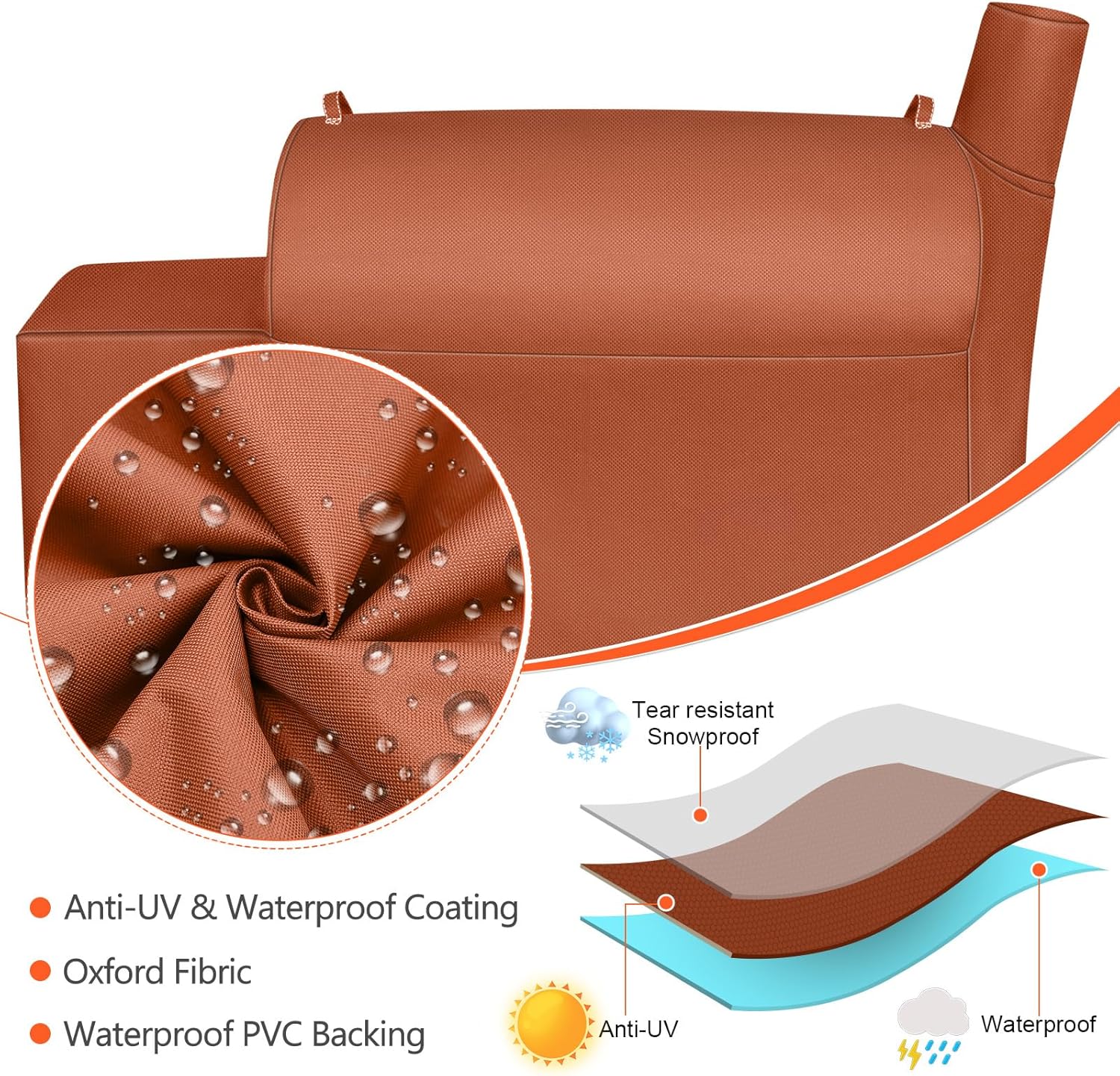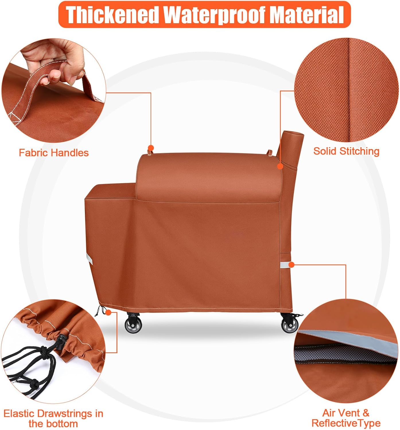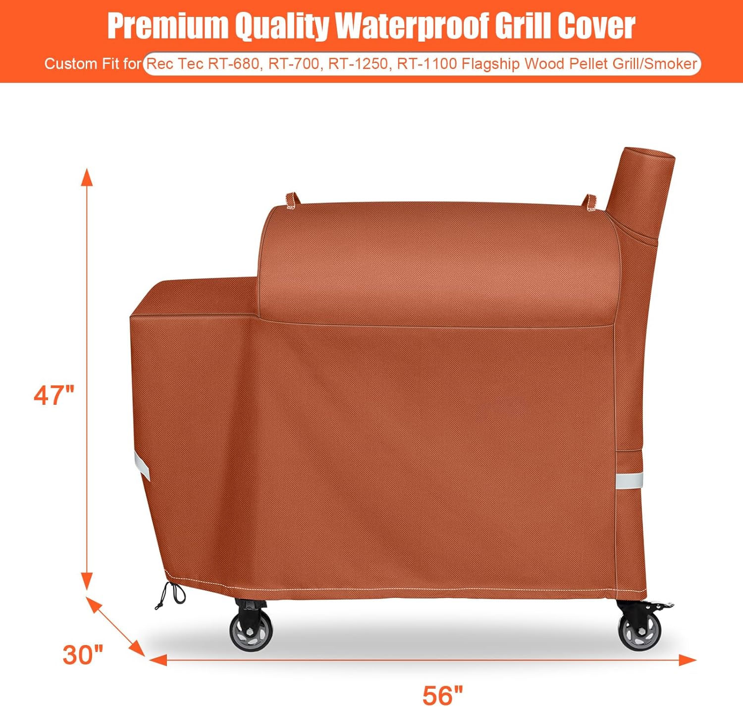Grill Cover for Recteq Flagship 1100, RT-1250, RT-700 and RT-680 Wood Pellet Grills, Heavy Duty Premium Outdoor BBQ Grill Cover, Brown
