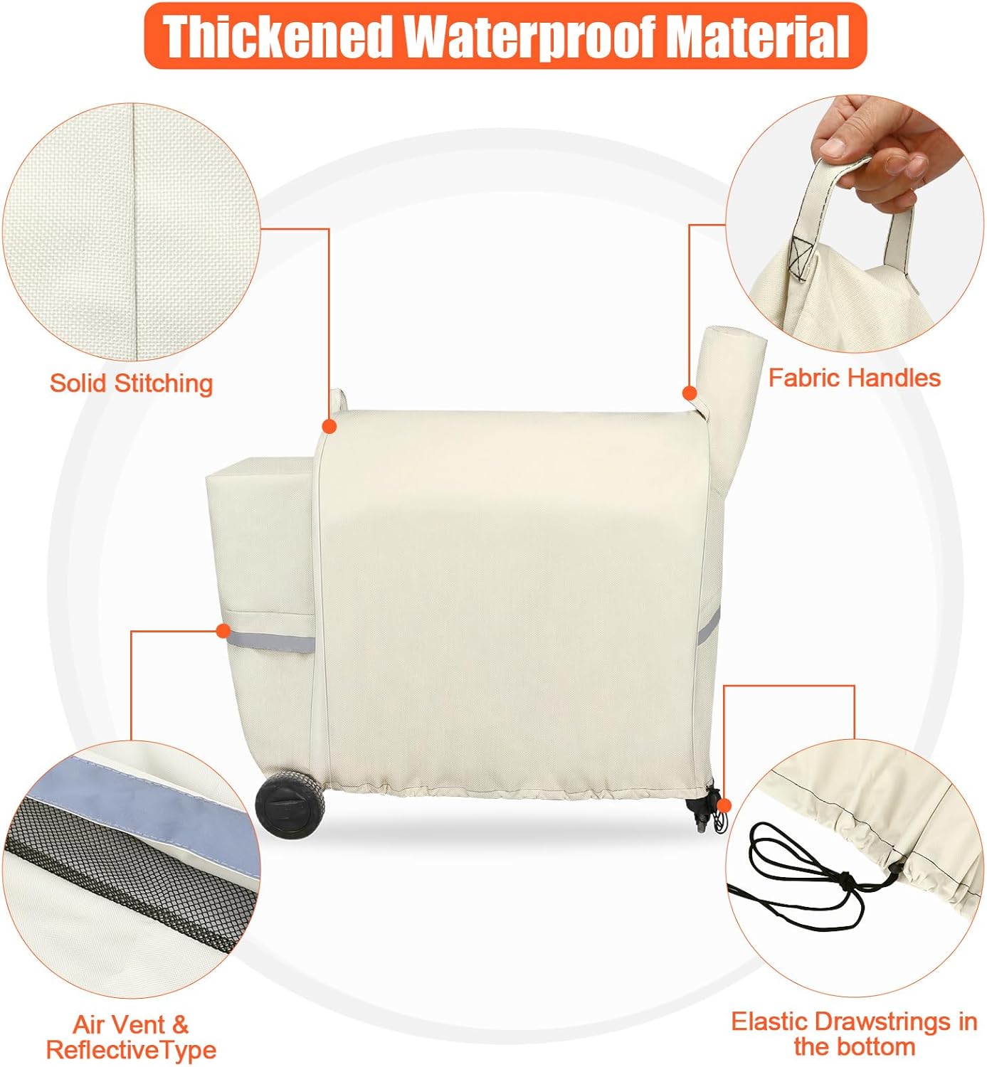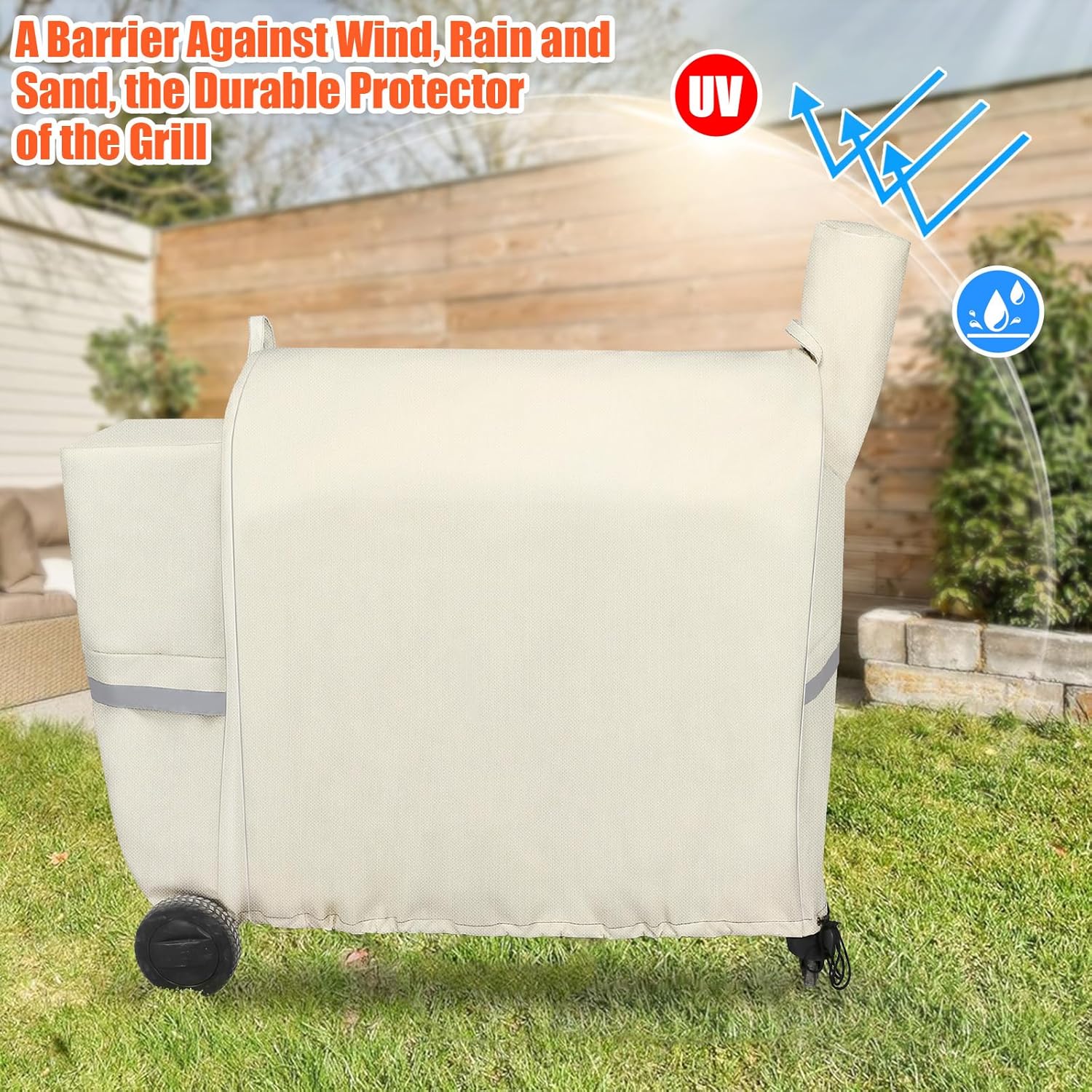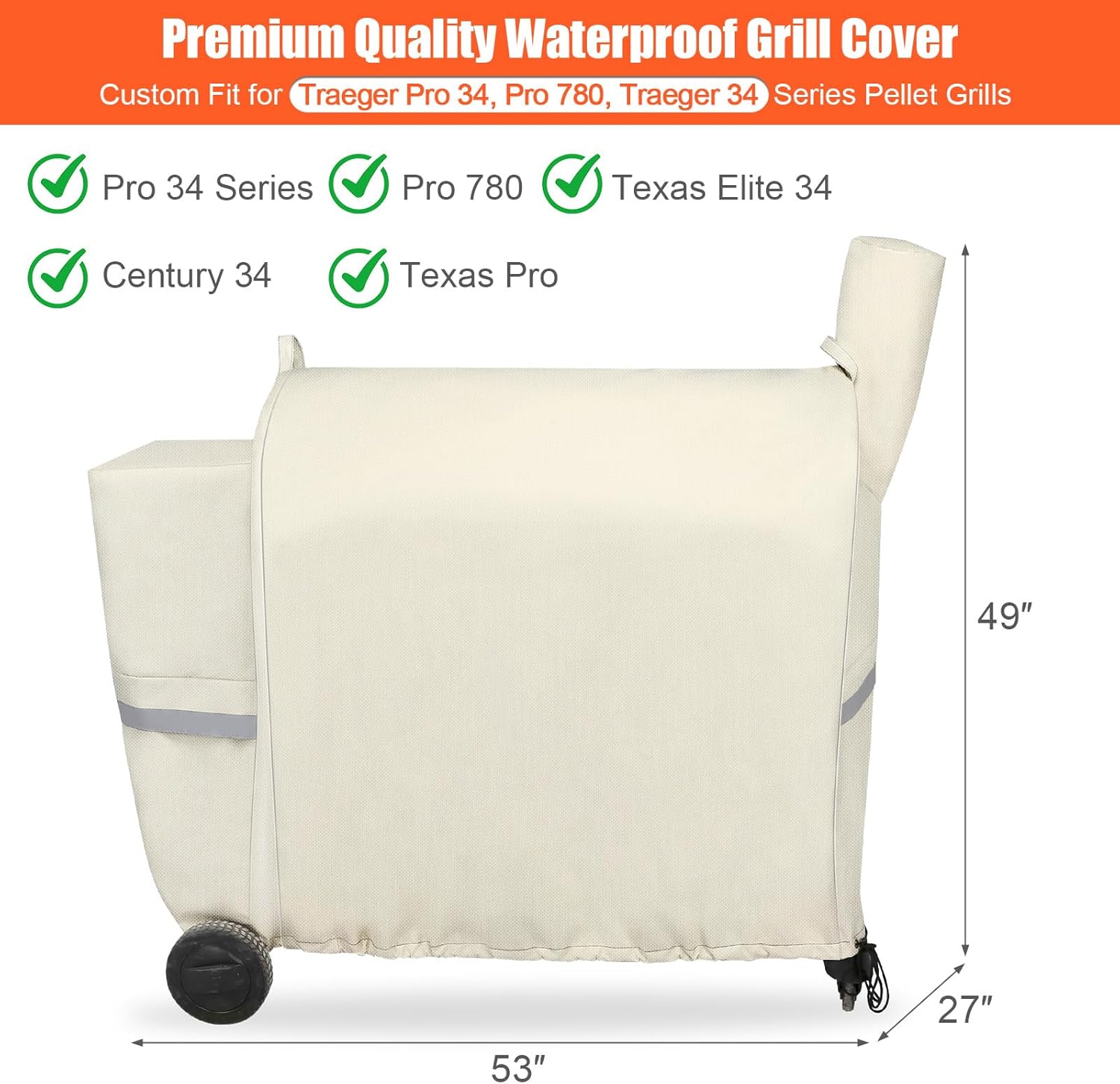 Grill Cover for Traeger Pro 34/780, Texas Elite 34, Eastwood 34 Series Pellet Grills, Z Grills 700/550/600, 600D Full Length Cover, Beige