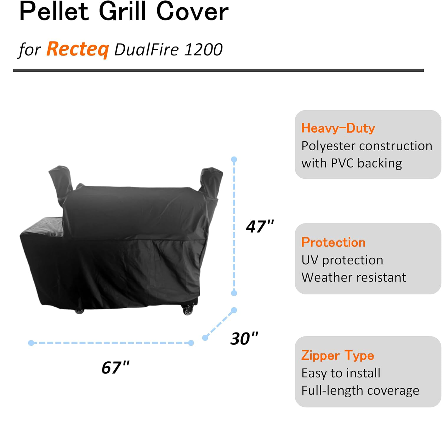 Grill Cover Replacement for Recteq DualFire 1200 Wood Pellet Grill, 600D Waterproof for Rec Tec DualFire RT-1200 Grill