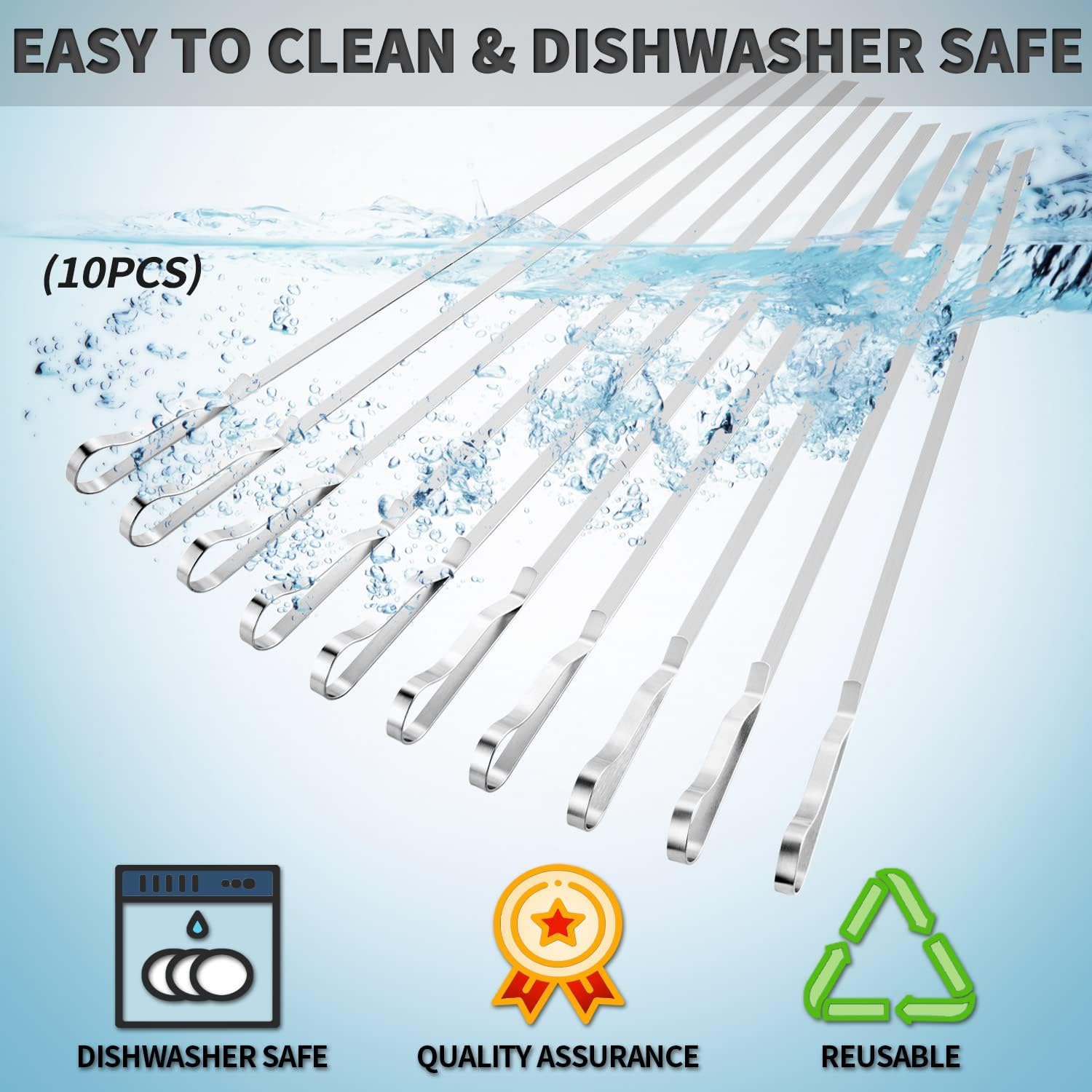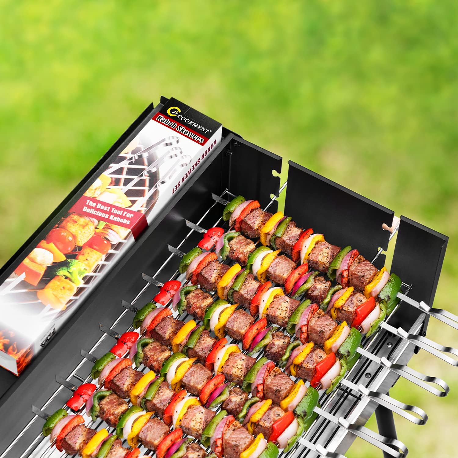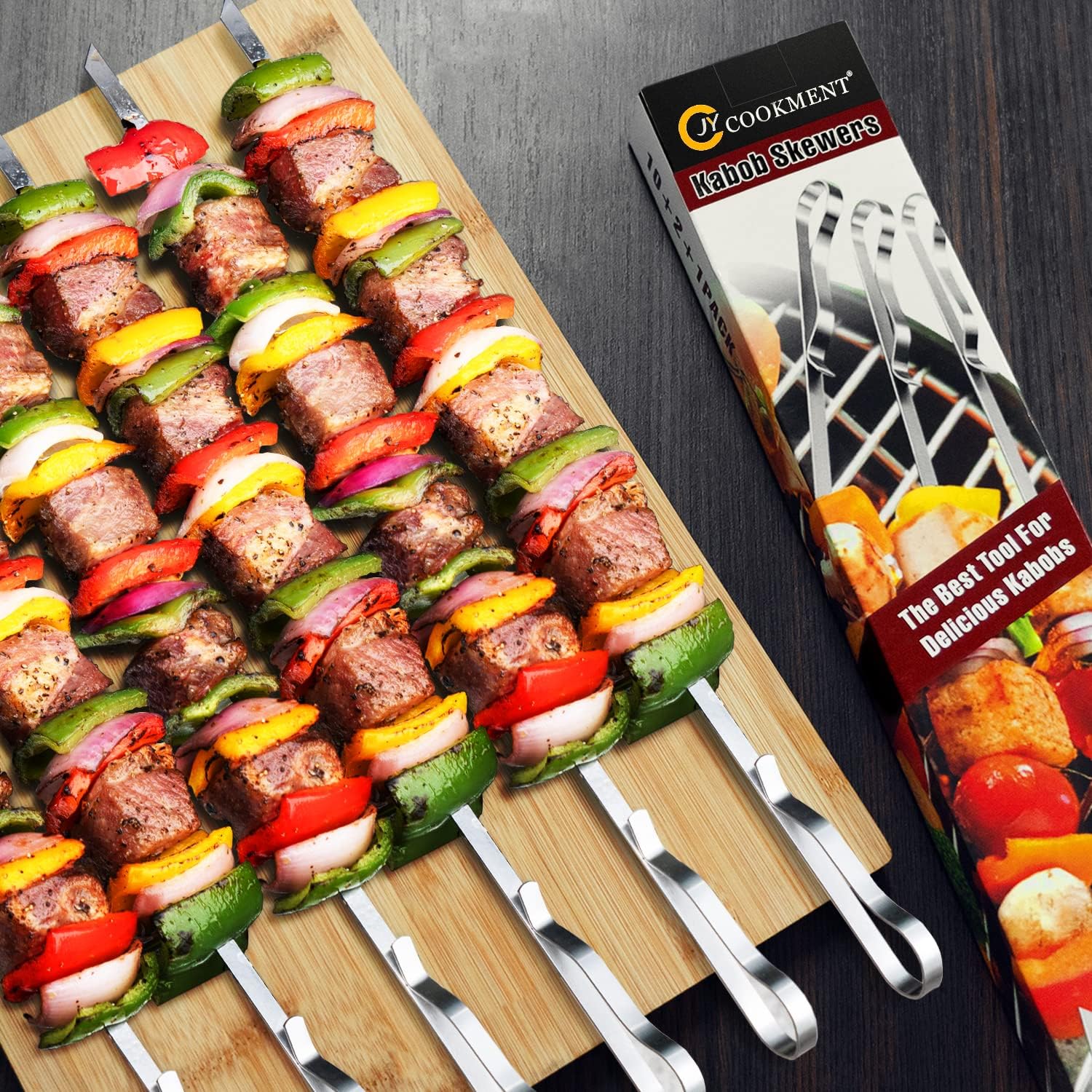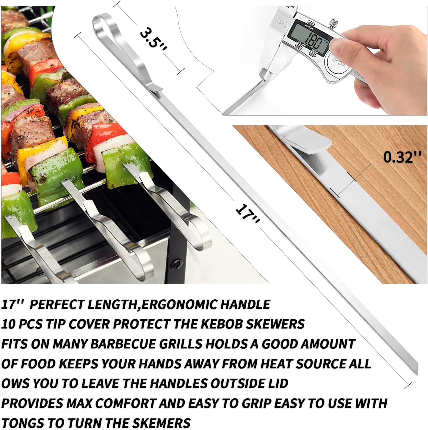 Kabob Skewers 17" Stainless Steel Long BBQ Barbecue Skewers, Flat Metal Kebob Sticks for Meat Chicken, Set of 12 with Storage Bag, 2 Silicone Brush