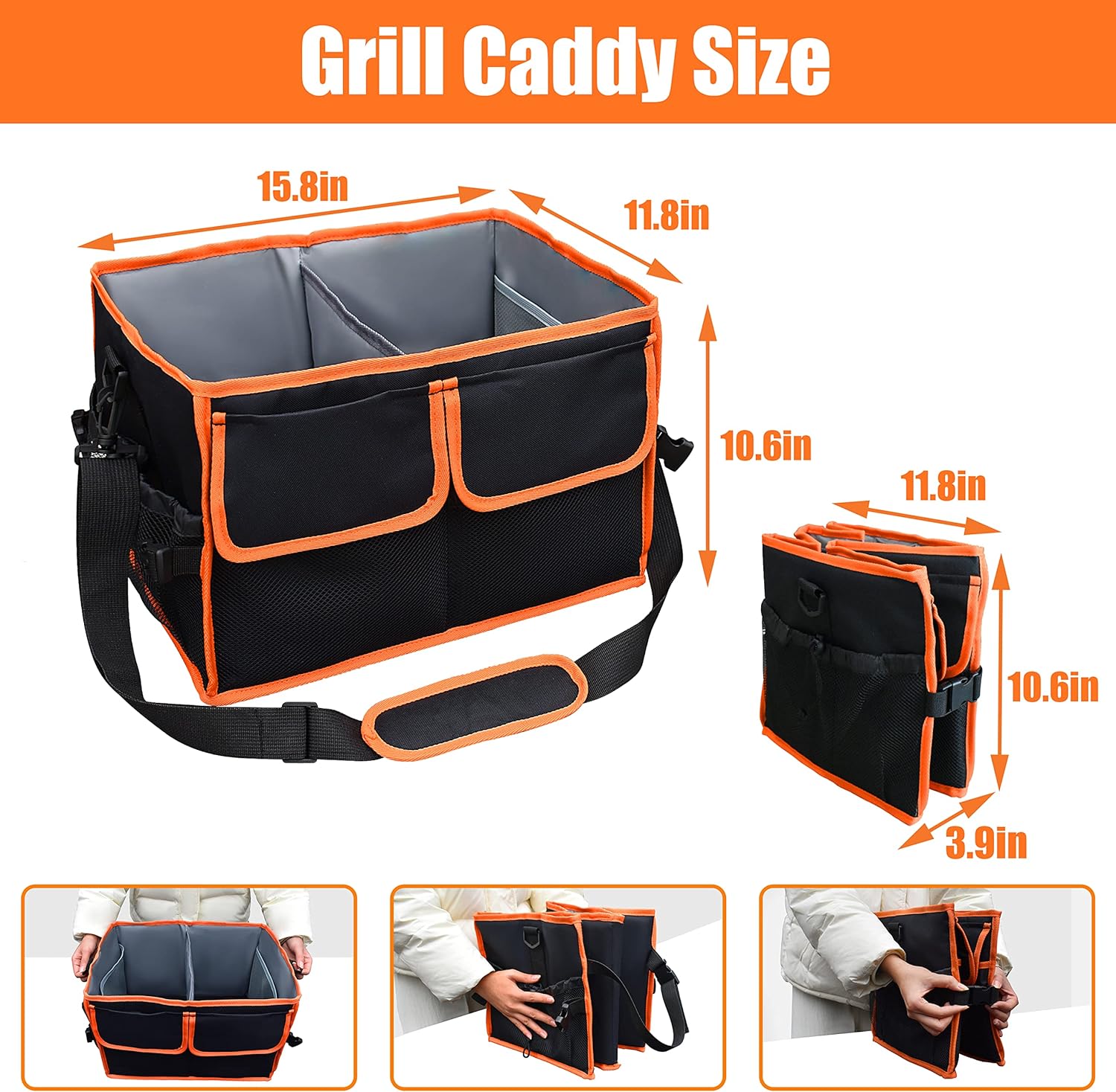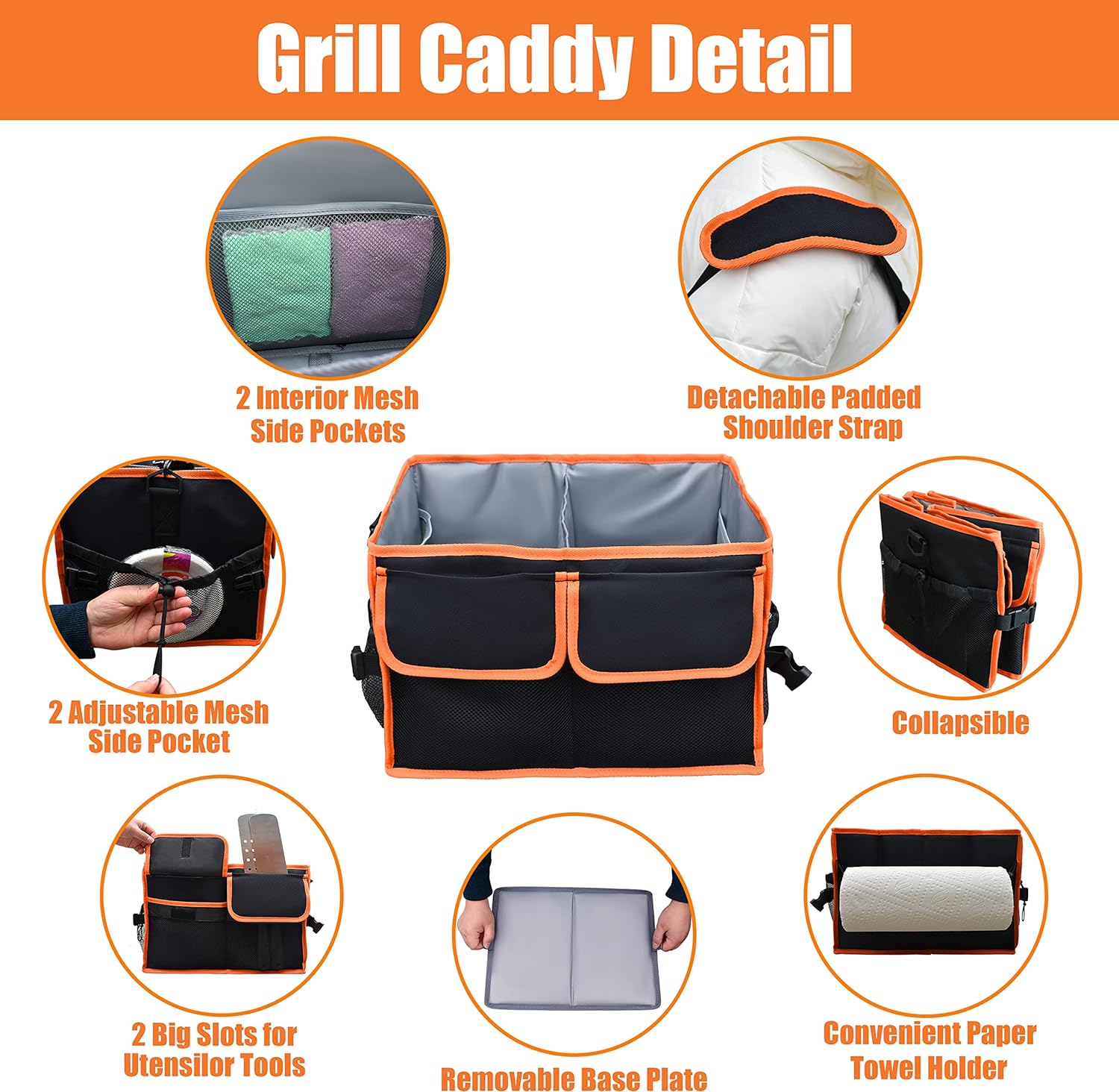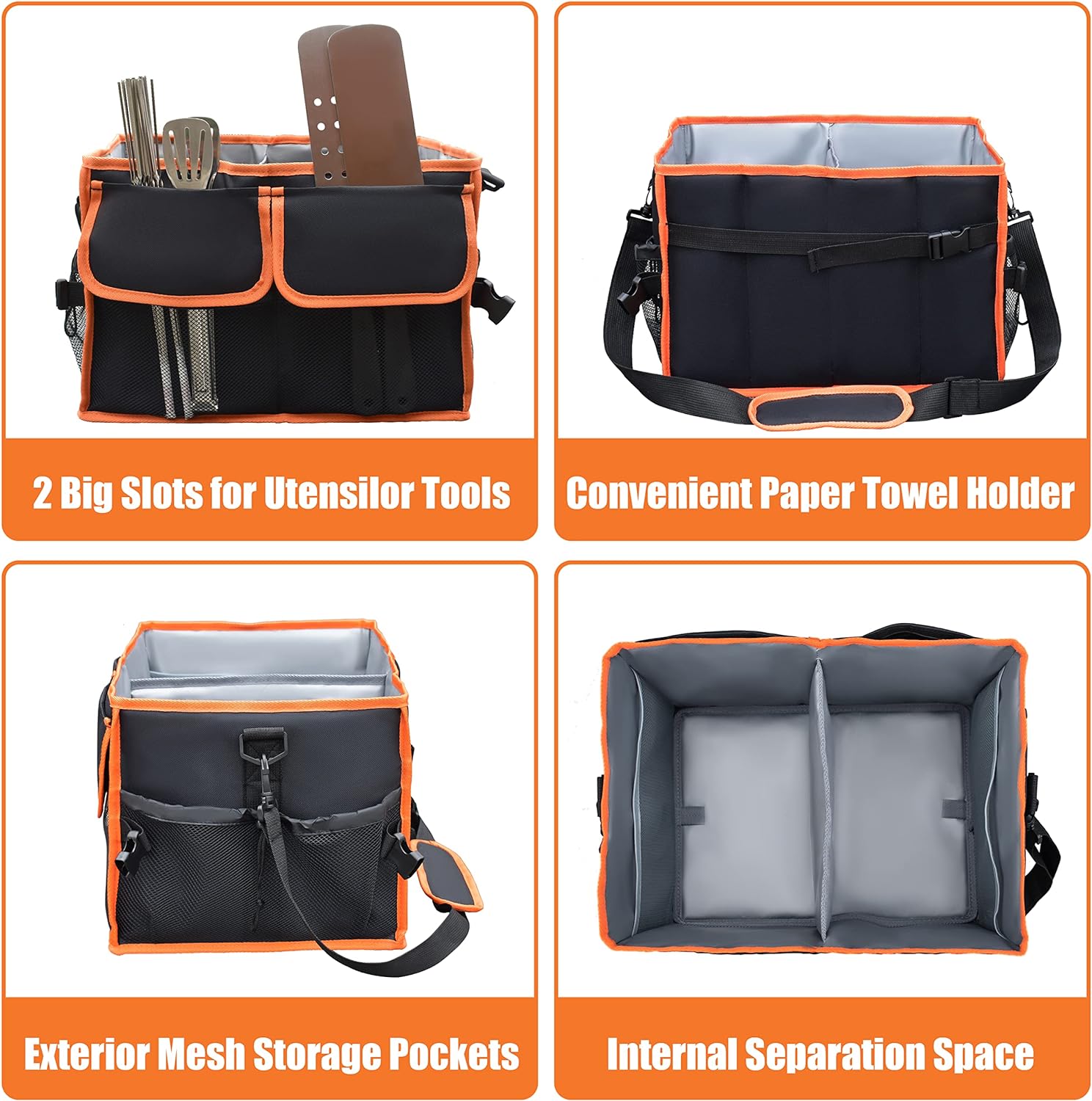 Large BBQ Grill Caddy Organizer with Paper Towel Holder for Utensil, Condiment; Easy Carry Picnic Griddle Caddy for Camping, Travel, RV, Outdoor