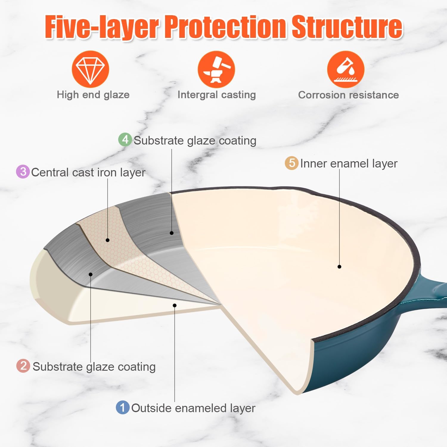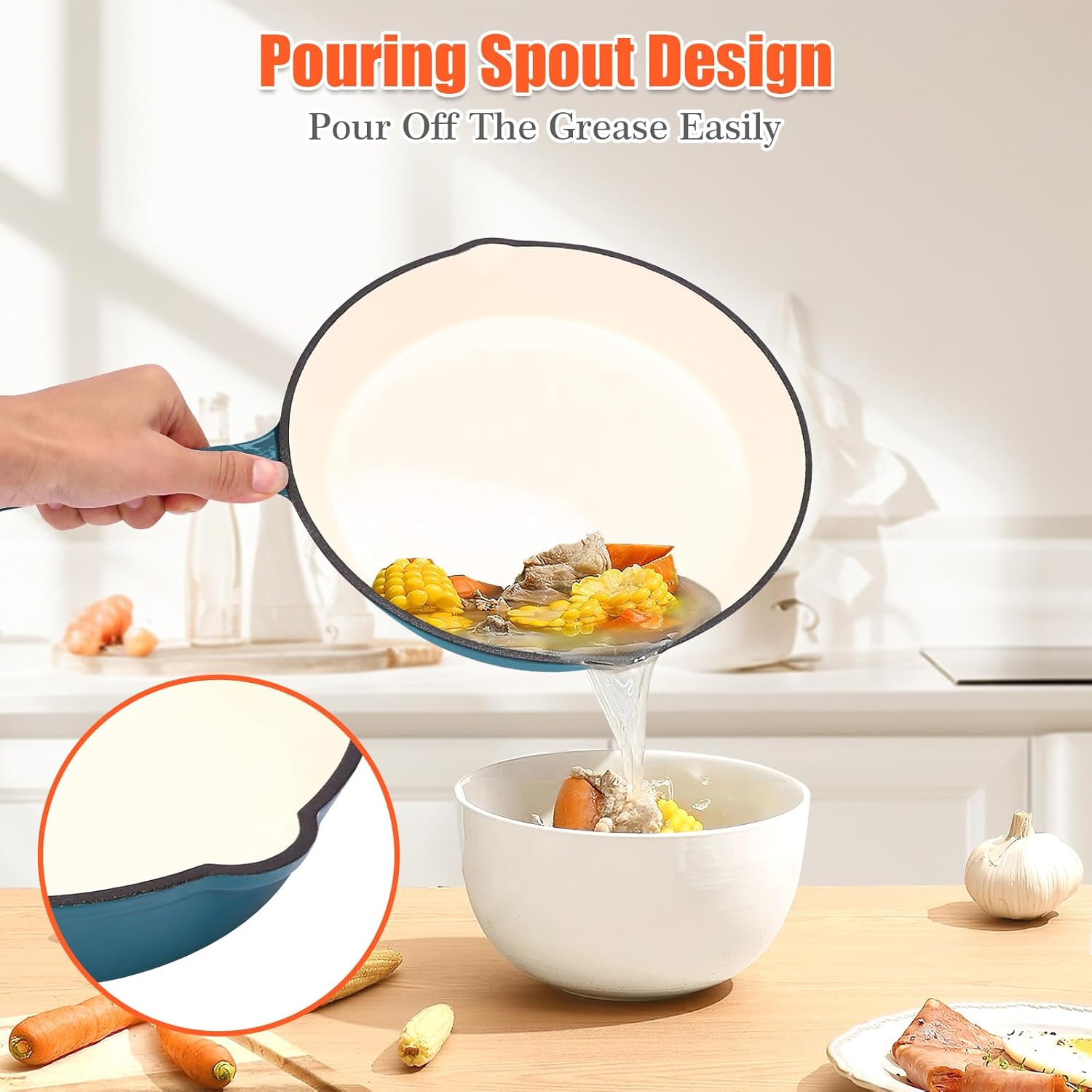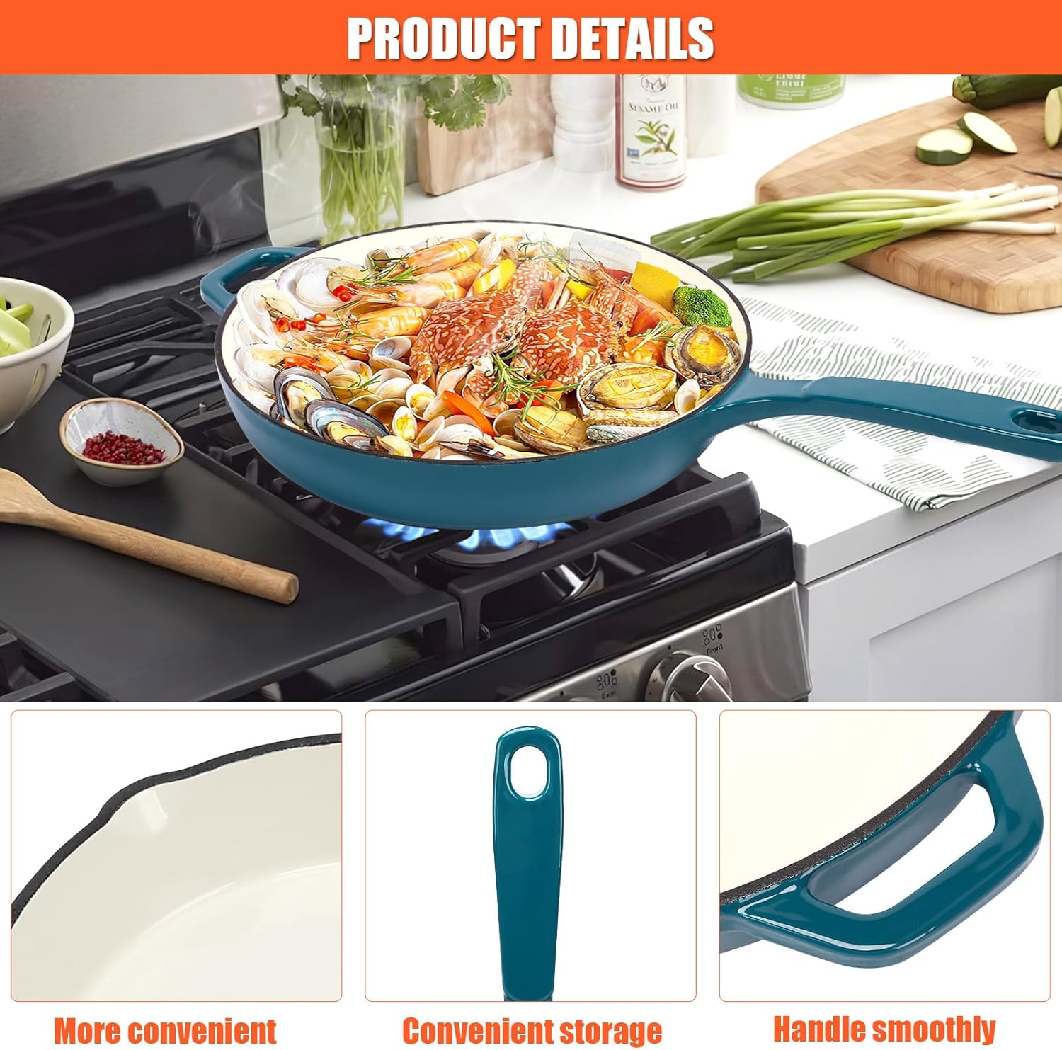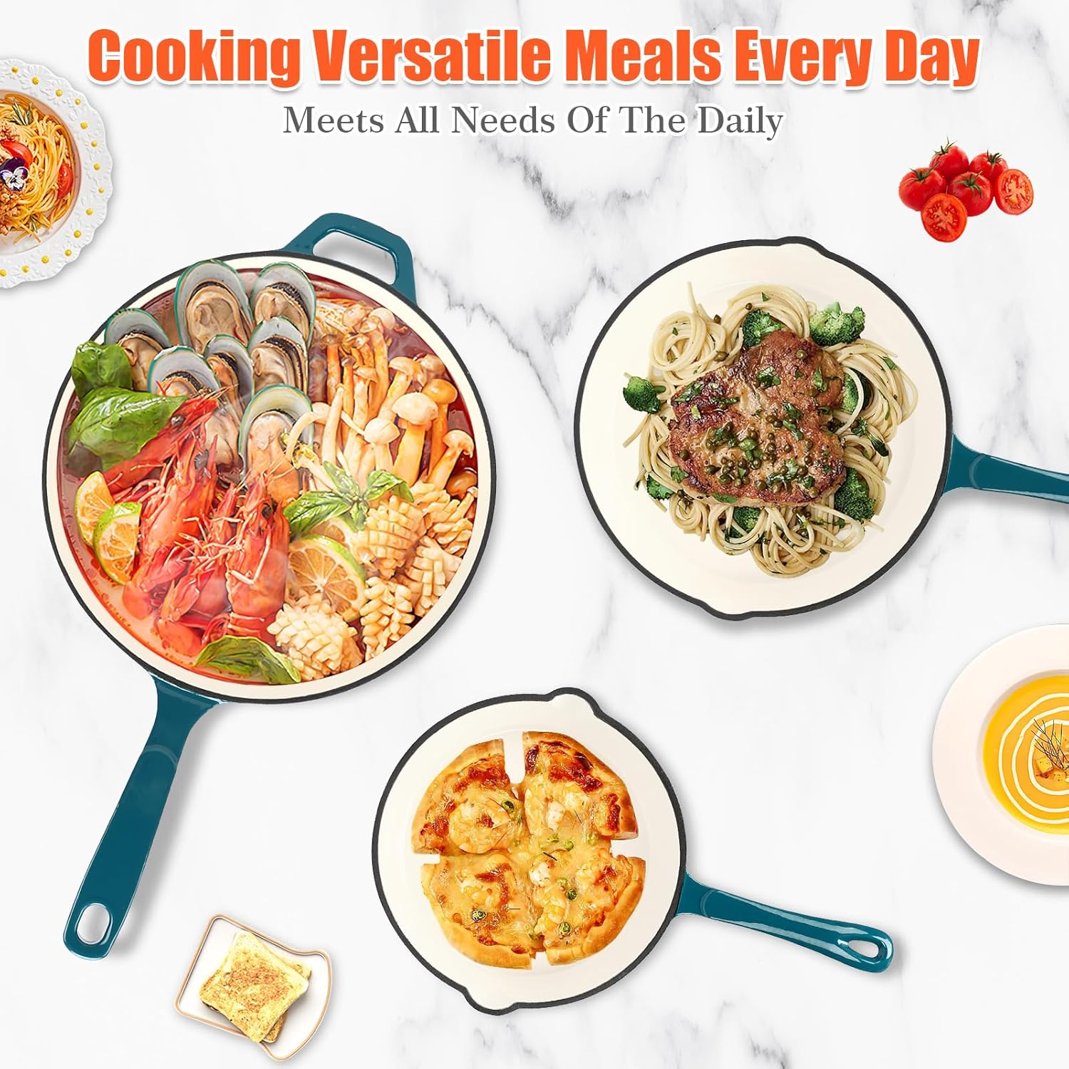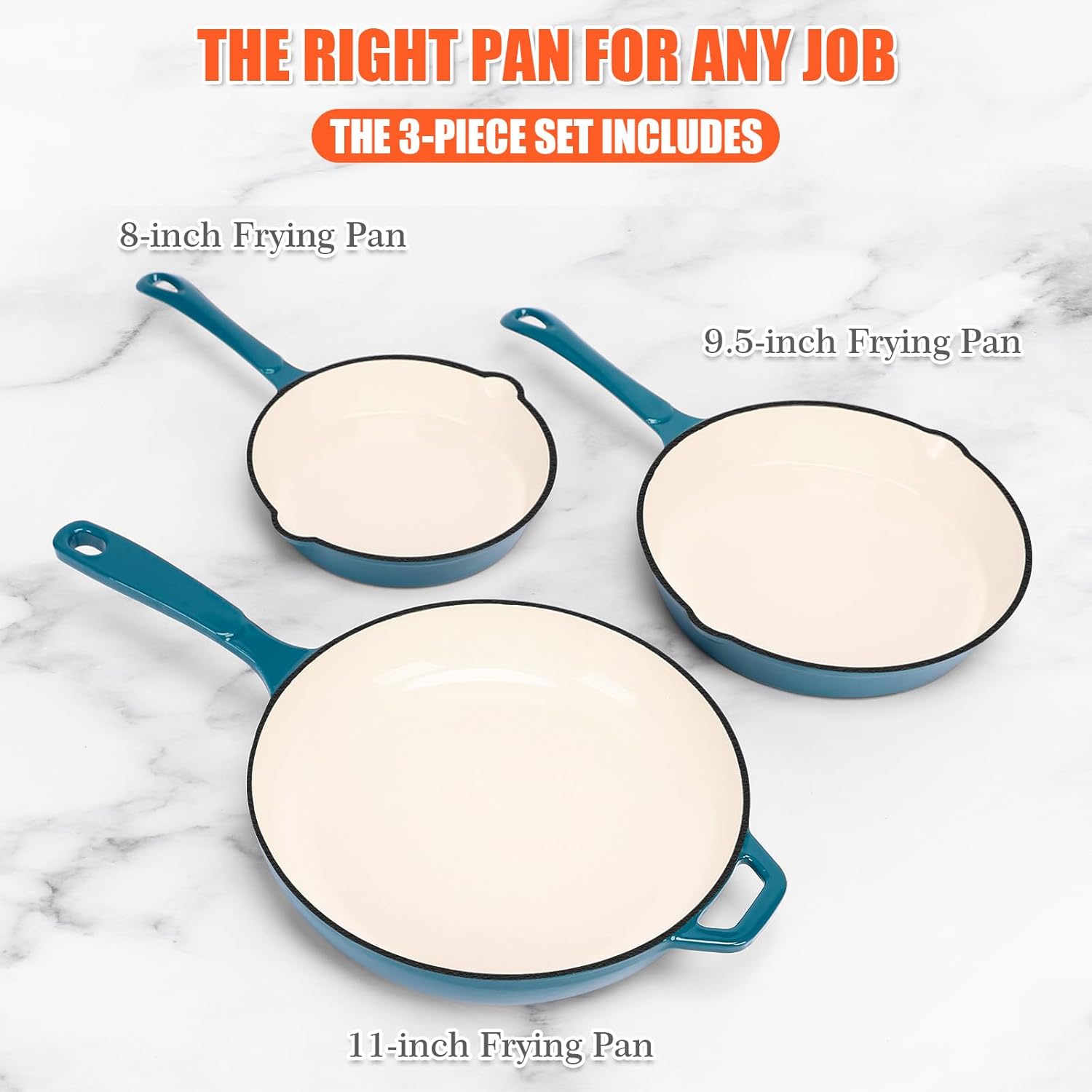 Nonstick Enameled Cast Iron Cookware, 3 Frying Pan Set 8-Inch, 9.5-Inch Frying Pan & 11-Inch Frying Pan, Compatible with All Stovetops, Light Cyan